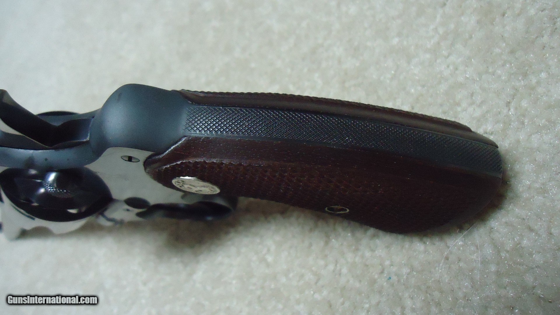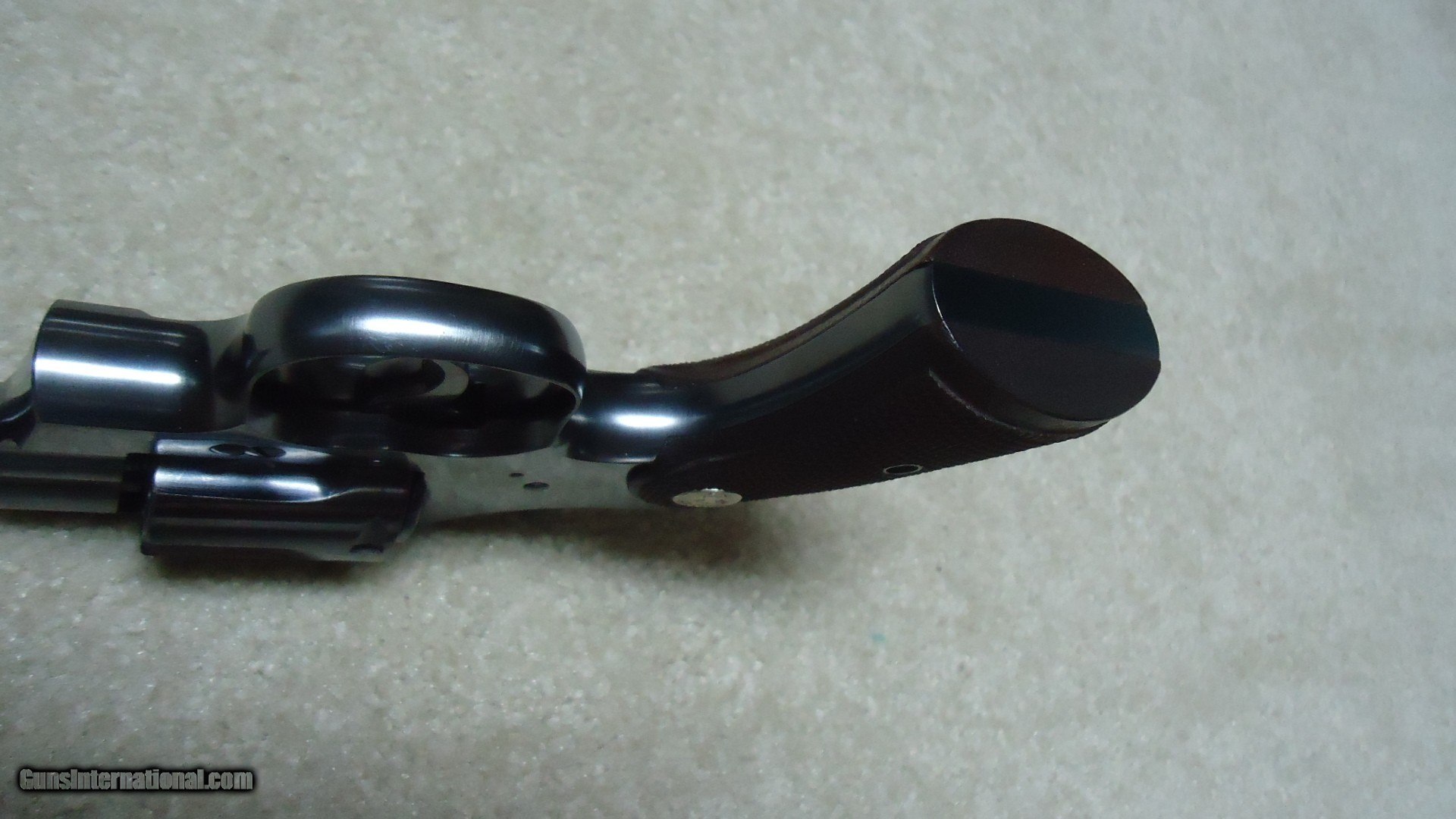 Description: OUTSTANDING, MINTY CONDITION RARE 7 1/2" BARREL OFFICERS MODEL TARGET .38 SPECIAL, #585XXX, MADE 1927. Almost all of these hand tuned and hand fitted target sighted Colts were made with 6" barrels. A very few were ordered with the long 7 1/2" barrel. This example appears about unfired and new. It retains all the deep factory blue and the checkered walnut grips are about perfect. Only has a hint of a cylinder drag line that does not go through the blue. All it needs is a box! Checkered back strap and trigger. From the Golden Age of double action revolvers, this was one of the very best offered by Colt. SOLD Curio/Relic: Yes Handgun Caliber: .38 Special Manufacturer: COLT Model: 0FFICERS MODEL Serial Number: 585XXX Barrel Length: 7 1/2 Condition: LIKE NEW Bore Condition: EXCELLENT |