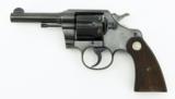 Description: Colt Official Police .38 Special caliber revolver. 4” blue model made in 1944. The gun has about 96% finish with just some light edge wear. Has a correct box of the period but the number is about 400 numbers off. Very close.