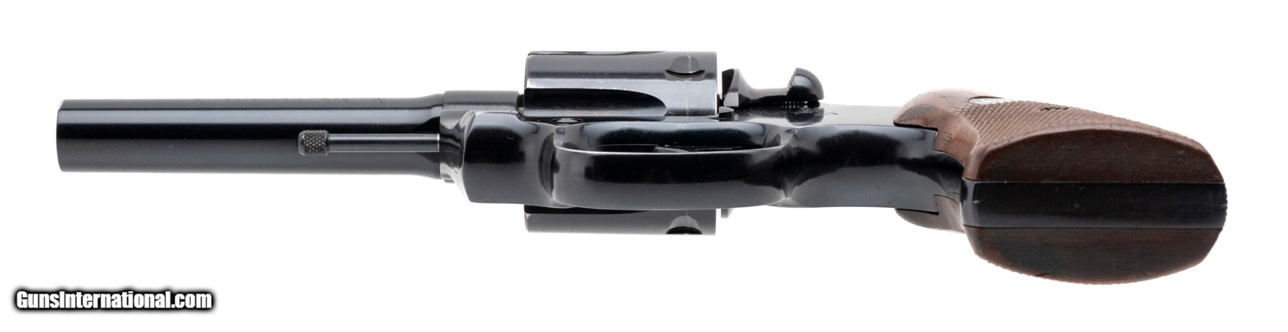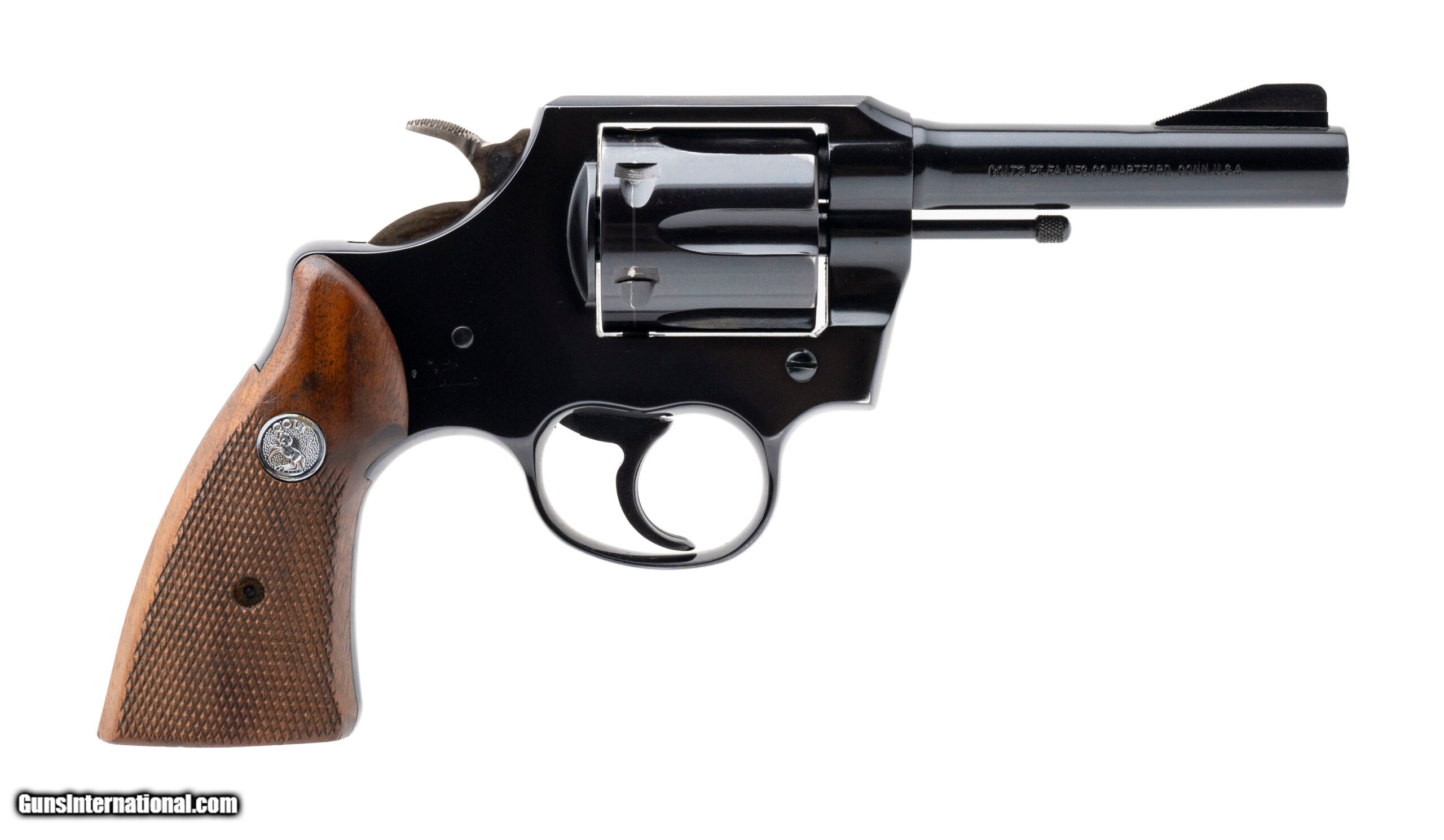 Description: "SN: J29835. Made in 1970. .38 Special with a 4"" barrel. Bore is bright with strong rifling. Double action colt revolver. Finish is in very good condition with light wear noted towards the muzzle and on the cylinder. Checkered wood grips are in good condition. Overall very good condition. SOLD |