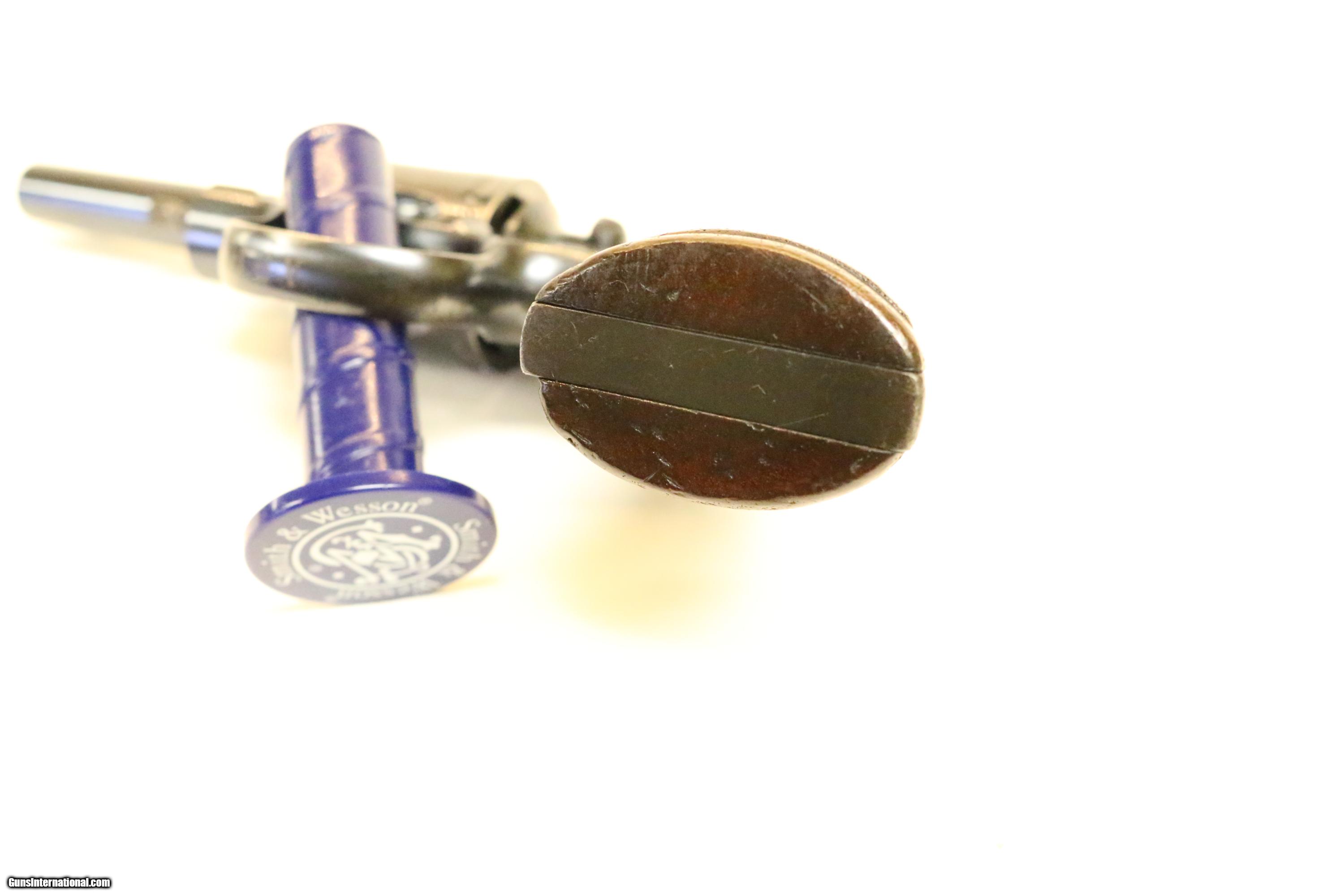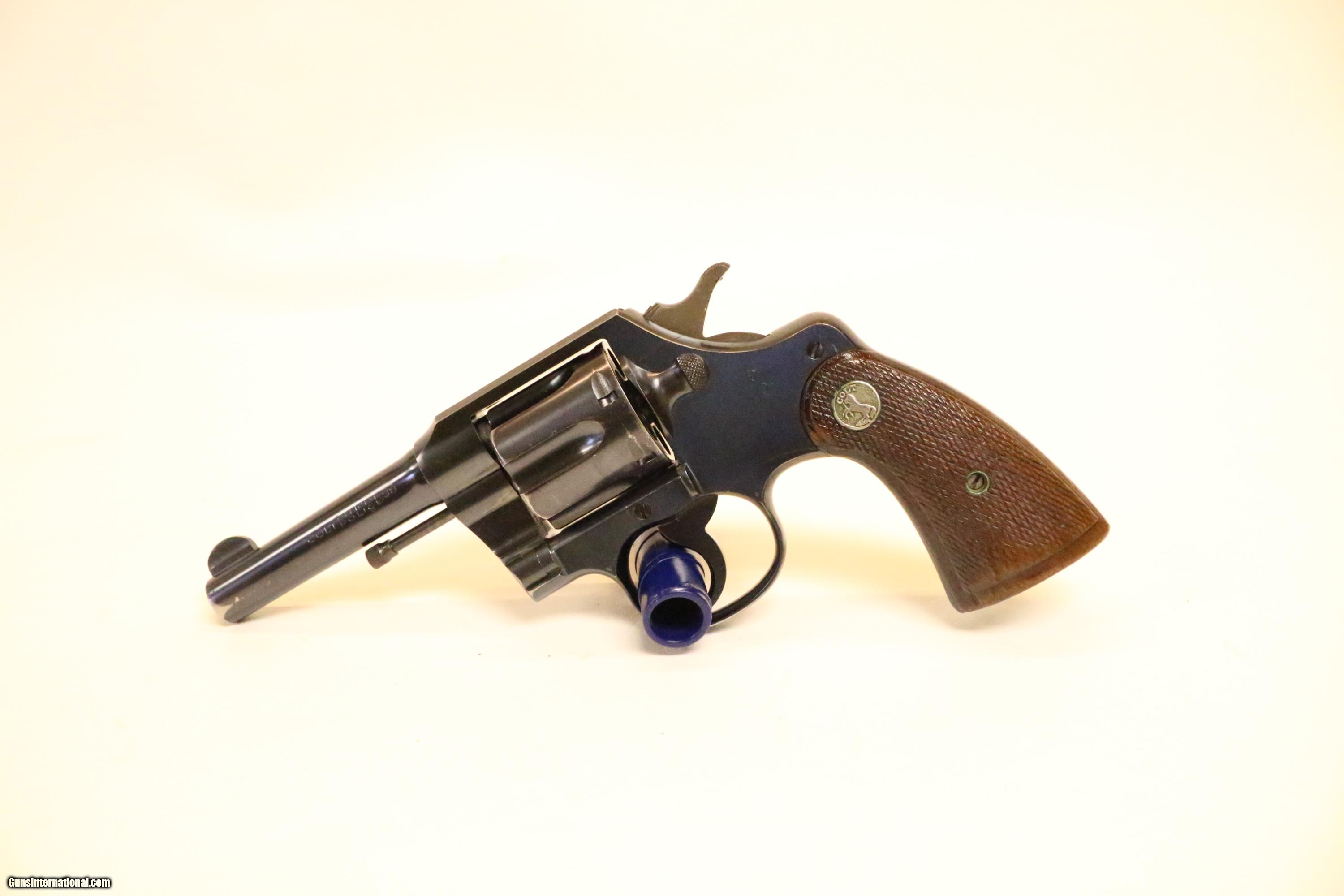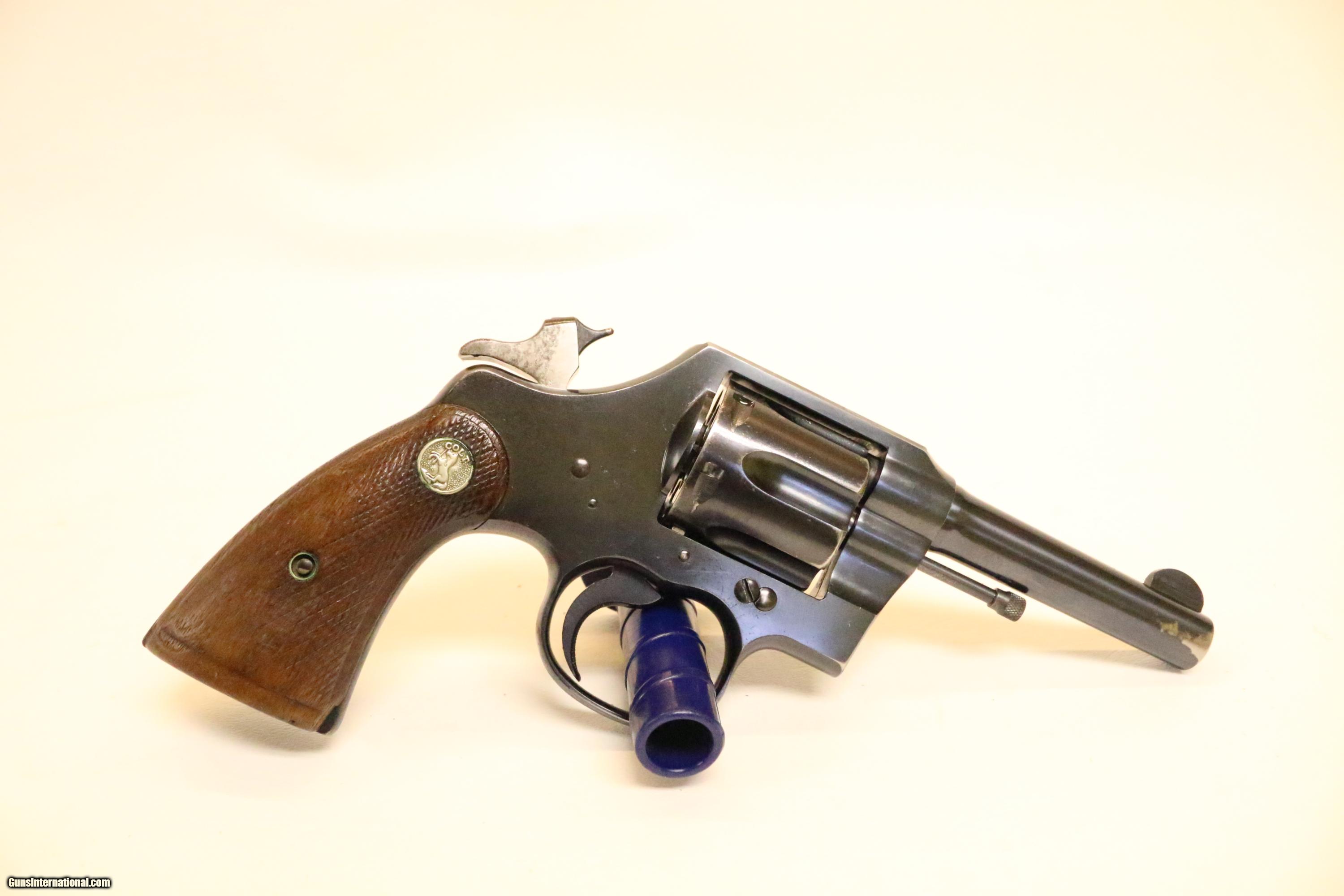 Description: This one has an A side and a B side. The left side is 96-97% original condition with strong blue and just a couple of freckles, The rights side is the B side the rear 1/3 or the gun shows light freckling from behind the flash shield back not deep and from 3 feet it looks great, the freckles are also on the back strap on right side of the hammer. The gun was made in 1933 per the 583xxx serial number. the lock up and timing are excellent and tight. there is holster wear on the muzzle as shown. The checkering on the right grip panel is worn more than the left but they match and appear to be the original medallion grips. The gun was stored a bit dry in the original owners leather duty holster laying predominantly on its right side until i purchased it and we believe that is what caused the surface freckles. It was his carry gun as a Chicago Police officer for his entire career and at some point he had his initials engraved on the bottom of the trigger guard. Overall a nice official police at a great price SOLD |