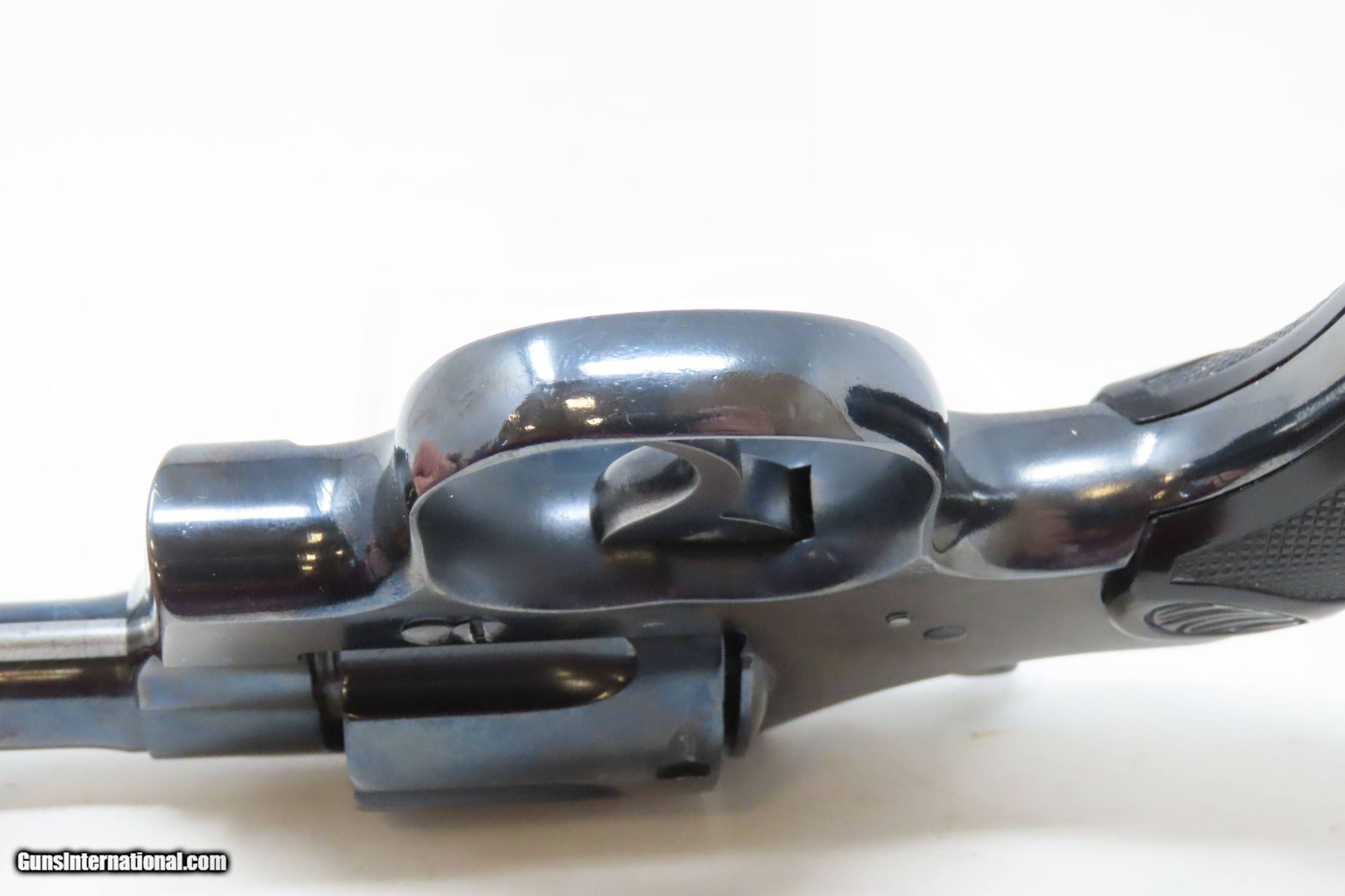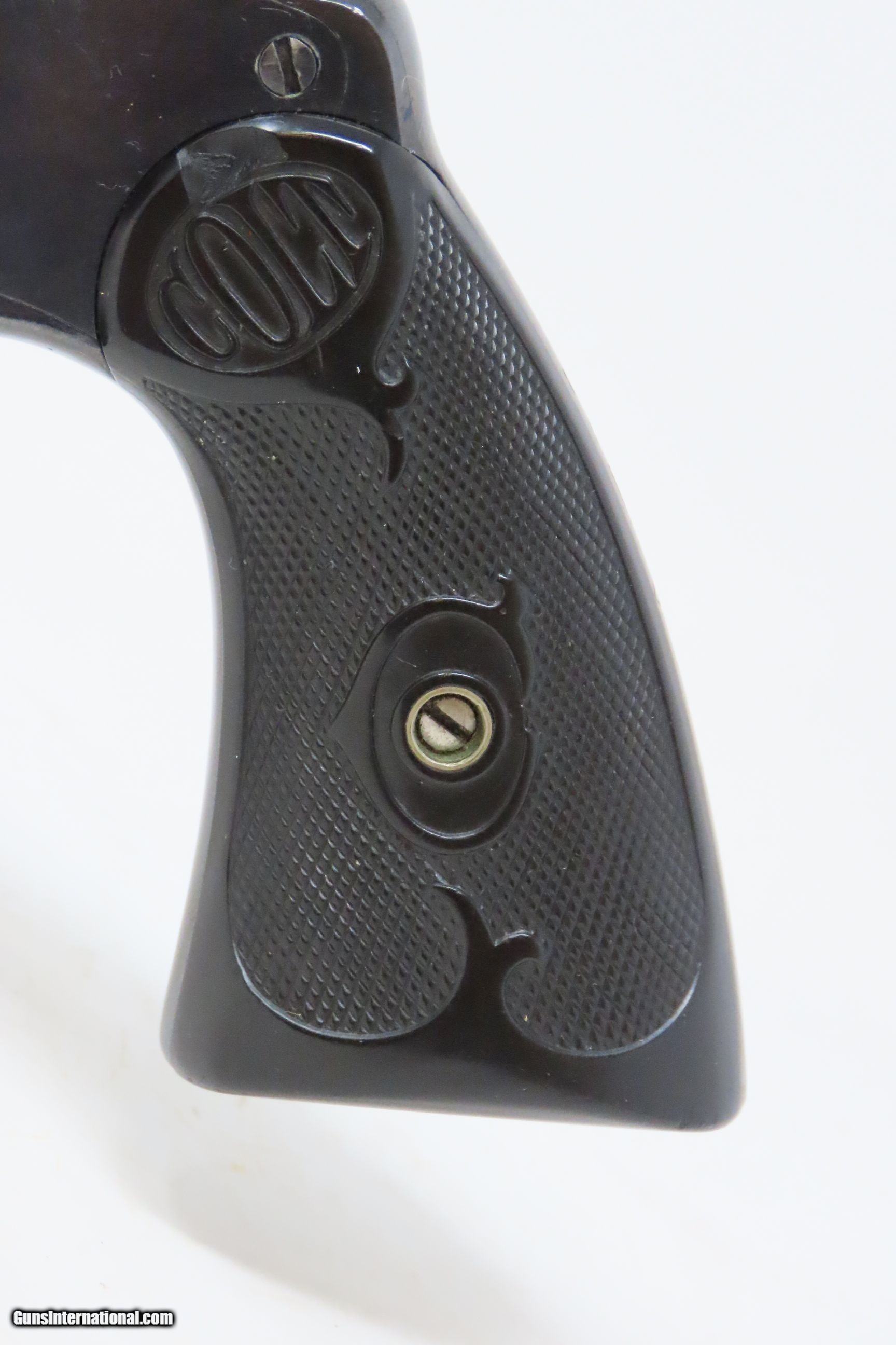 Description: c1922 NEW JERSEY STATE POLICE COLT ARMY SPECIAL .38 Special REVOLVER C&R NJSP Marked Sidearm from the Roaring Twenties! Here we present a C&R Colt Army Special Double Action Revolver, made in 1922 by the Colt Manufacturing Company. These had a production run from 1908 through 1927 in Hartford, Connecticut. The Colt Army Special was a pistol designed by Colt to replace the various models of Colt New Army and New Navy revolvers. It was in production from 1908 to 1927 in hopes of securing a military contract. The United States Army instead adopted the Colt M1909 New Service revolver in .45 Long Colt and later the Colt M1911 Self-Loading pistol in the .45 ACP cartridge after extensive trials. This one has been engraved on the back strap with “N.J.S.P.” with a triangle and the number “17” within. This would have been an early police weapon in the agency’s arsenal and it is likely that 17 is an inventory or badge number. The overall condition is very good. Nicely refinished. Excellent action. Bright bore. Both grips are in good shape with average handling. The left grip is missing a chip at the top, just above the “COLT” logo. Legible markings. Numbers match. This firearm is classified as a Curio & Relic. Barrel is 6 inches. Caliber: .38 Colt Overall condition as seen in photos. Very Fast. Very Safe. FREE SHIPPING. Will need to be sent to your local FFL or C&R licensee. This firearm is classified as a Curio & Relic. Guaranteed AUTHENTIC & Includes CERTIFICATE OF AUTHENTICITY. ancestryguns $1800 #220494 SOLD Curio/Relic: Yes |