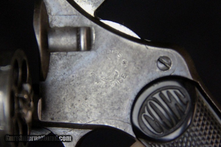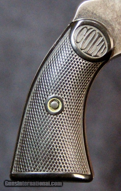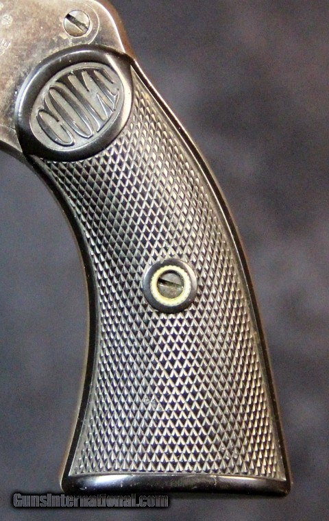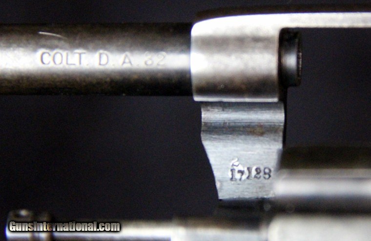 Description: .32, #17128, 4 inch barrel, blue finish, 2 piece hard rubber grips, matching, original sights, 1904. Condition: very good bright bore, mottled silver to blue overall, excellent grips, excellent mechanically, very good marks. SOLD Curio/Relic: Yes |