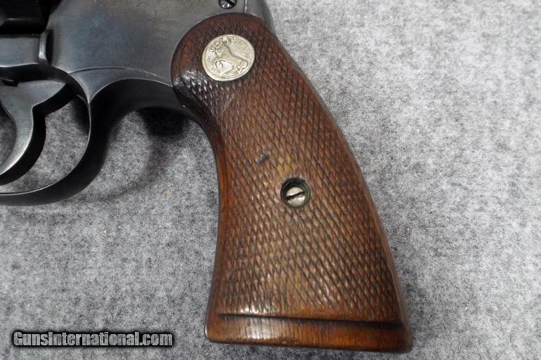 Description: Colt Official Police, .22 long rifle caliber, 6 shot, double action, 6" barrel, wood checkered grips, very good condition, wood 90%, metal 95%, action perfect, bore like new, shows slight ware on grips, excellent training/practice firearm. value $695. sale price $595 We have been in business for 6 years under the same ownership and selling guns for 40 years. We are receiving SEVERAL e-mails daily. All buyers are taken on a strict first come-first served basis depending on the date and time we receive their e-mail. We strive to describe all of our sale items accurately and fully and include professional quality photos of each item. We do our best to point out negatives (if any) regarding a sale item. Although we offer a 3-day, no questions asked, return policy it has rarely been used the entire time we have been in business. The first potential buyer who states that he definitely wants an item gets it. Those having questions who do not commit to purchase in their first inquiry will have their questions answered but may lose the sale if another buyer e-mails after they do and commits to purchase before we can get back to the first inquirer. This happens almost daily and disappoints a lot of people. If you see something you want- commit to buy it. You will not be disappointed. We cater to first time GI buyers. You can purchase from us with total confidence. We will guide you through the purchasing process if need be. We add guns and gun related items to GI virtually every day. Want to visit a gun show right on your computer? It as simple as 1, 2, 3. 1) Go to the Guns International homepage. 2) Look UNDER the search box on the homepage and CLICK DIRECTLY ON THE WORDS Advanced Search (Help!), 3) Type Bonnie's guns into the Sellers Screen name box and click on the Search box at bottom of screen. All of the guns and related items we currently have listed on GI will come up with photos and complete descriptions that are available for purchase right now. We keep our ads current. This stuffs for sale immediately. No fooling around trying to beat out other people. No stupid fees. Who has the time and money for that? That's the beauty of GI. Tell all your friends. USA sales only including California. Thank you SOLD |