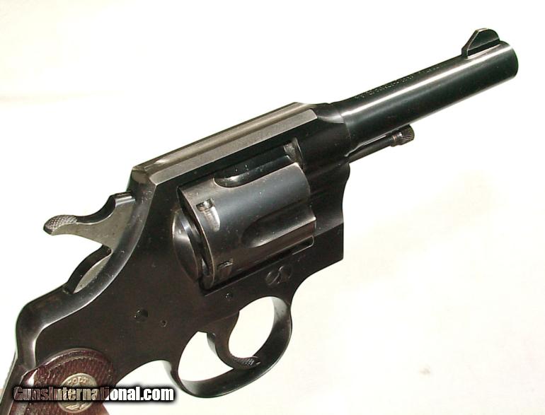 Description: .38 special caliber, 4" barrel finished blue with checkered walnut factory grips. Retaining 98-99% original blue, excellent grips with sharp checkering. Appears very little used. 1938 mfg. In it's factory box with perfect end label. SOLD Curio/Relic: Yes |