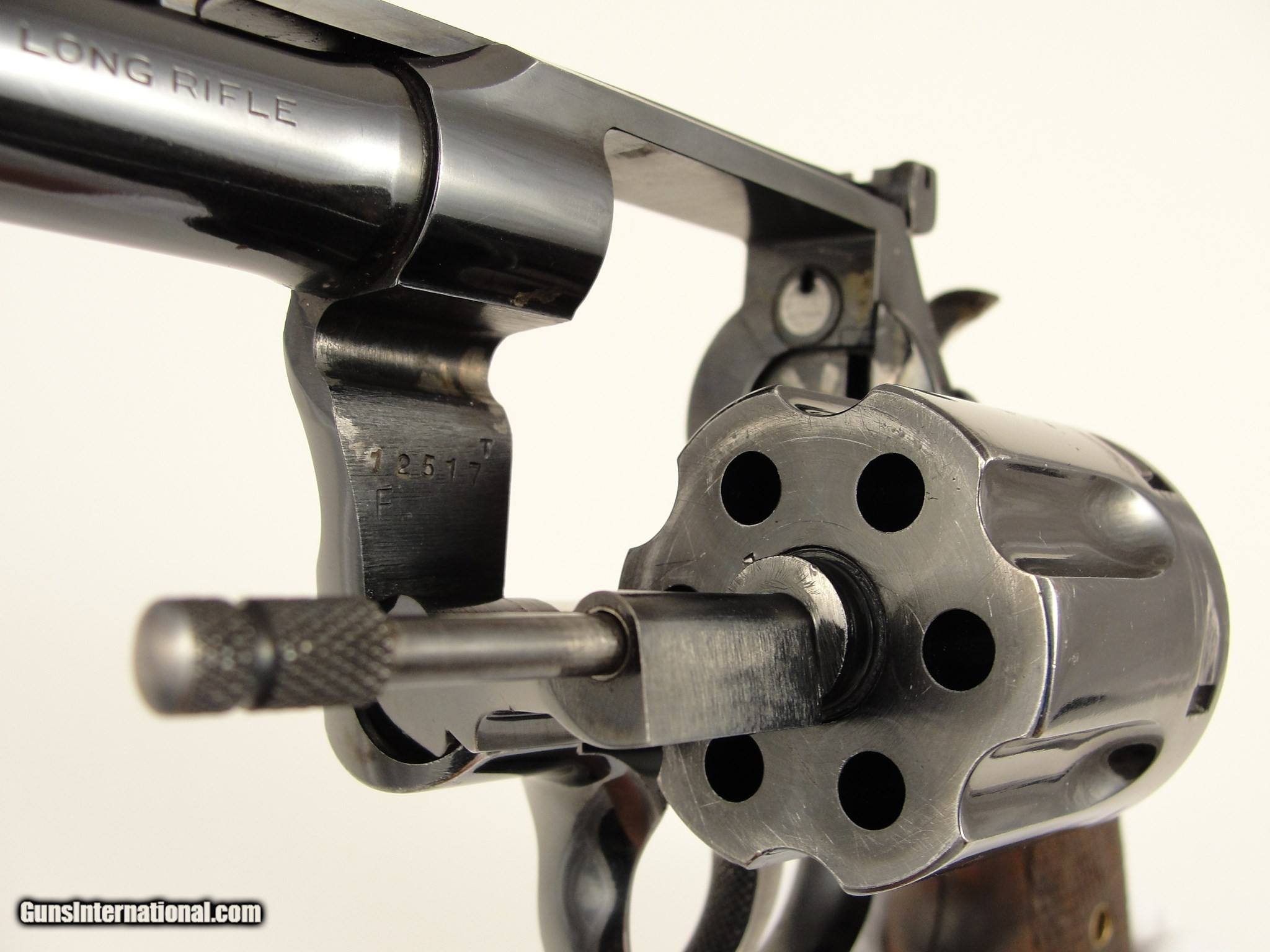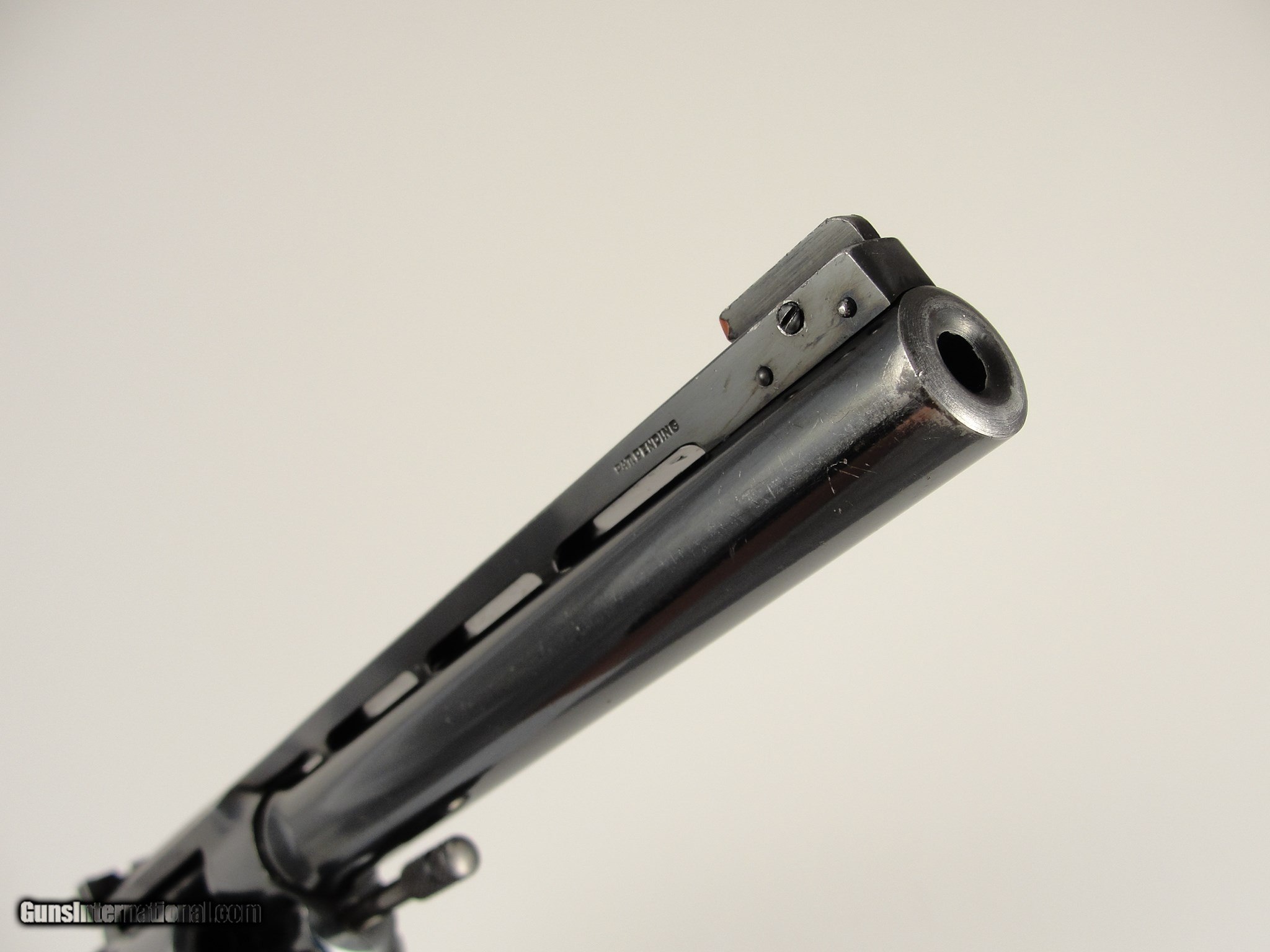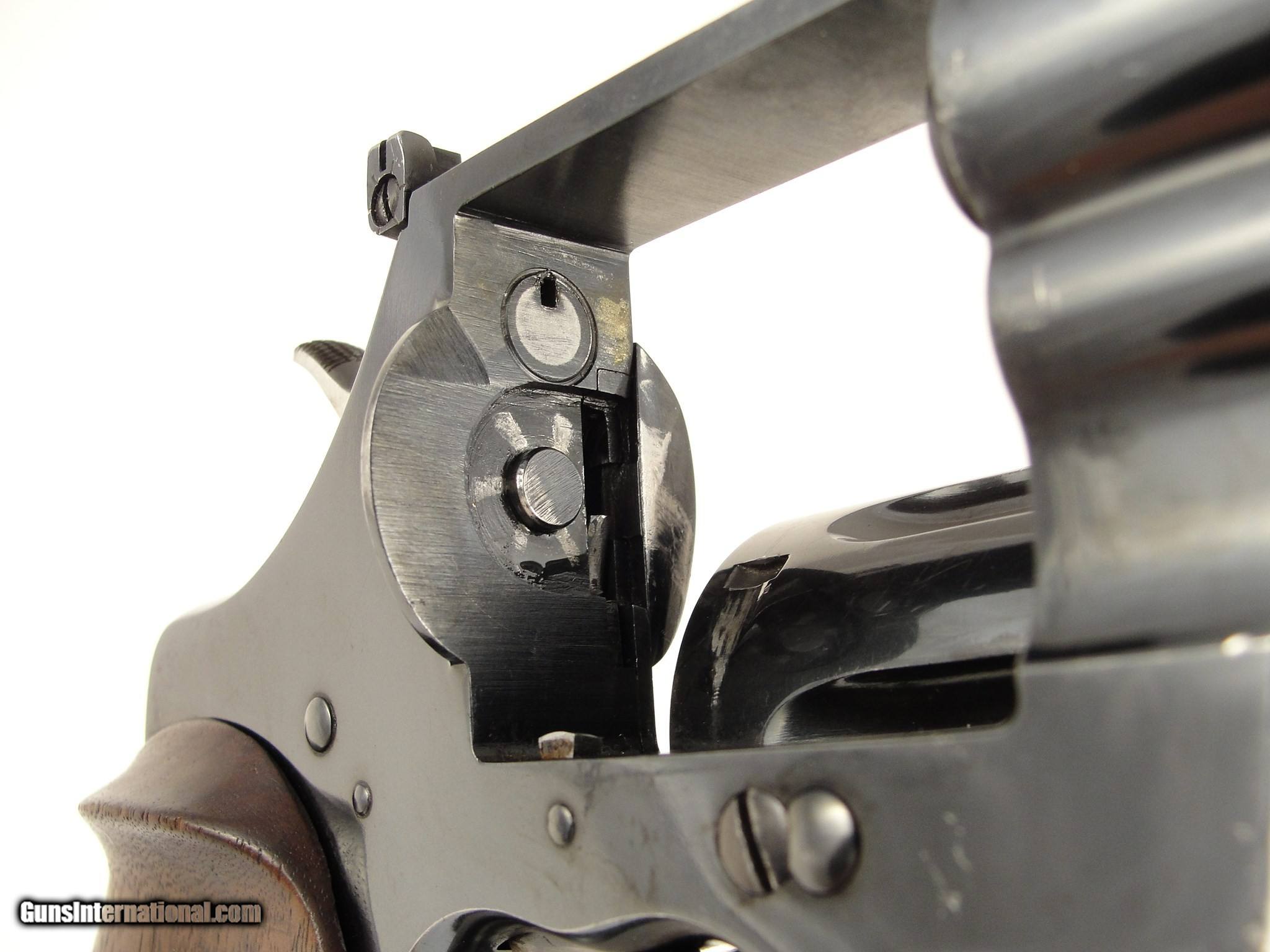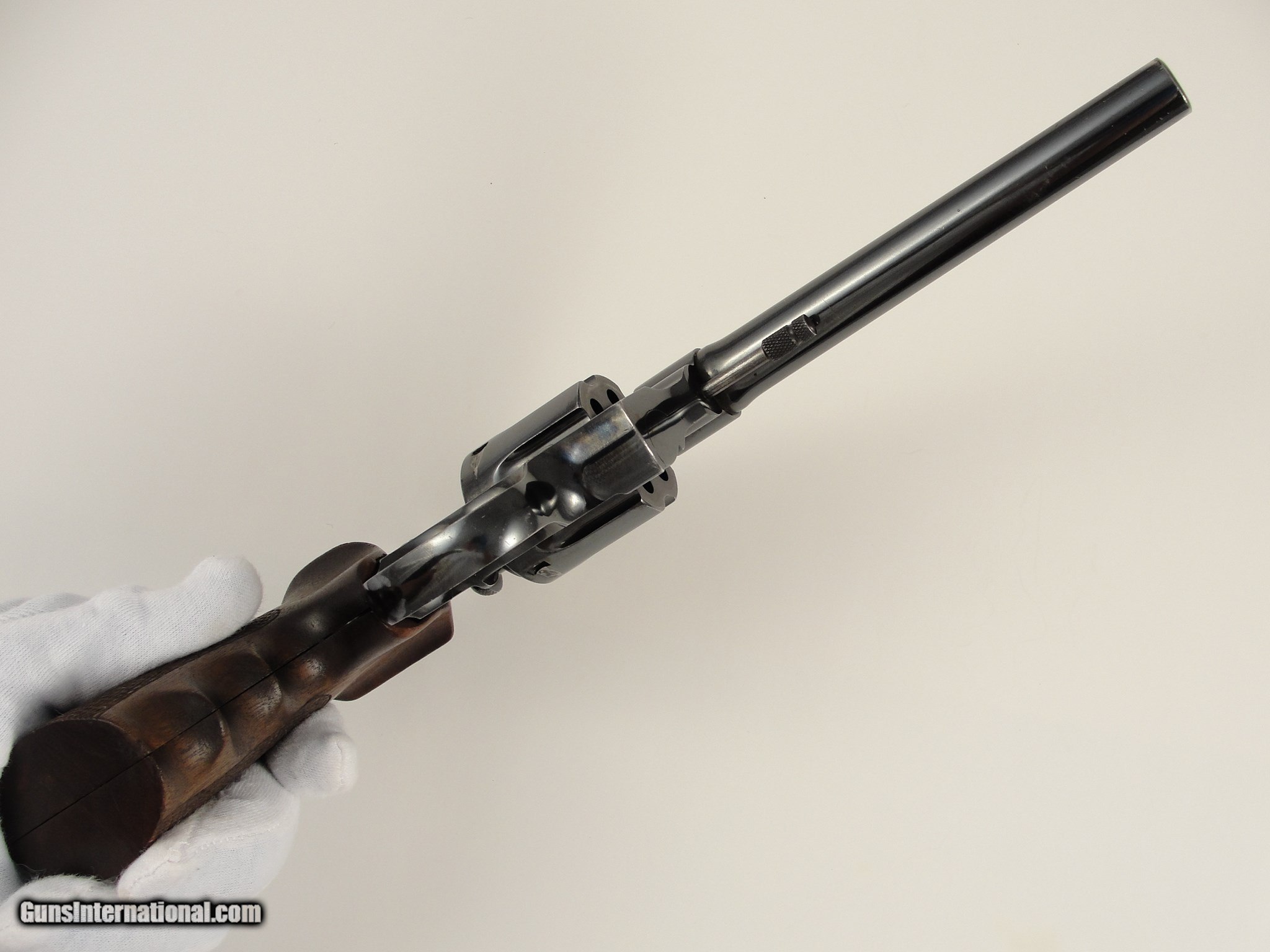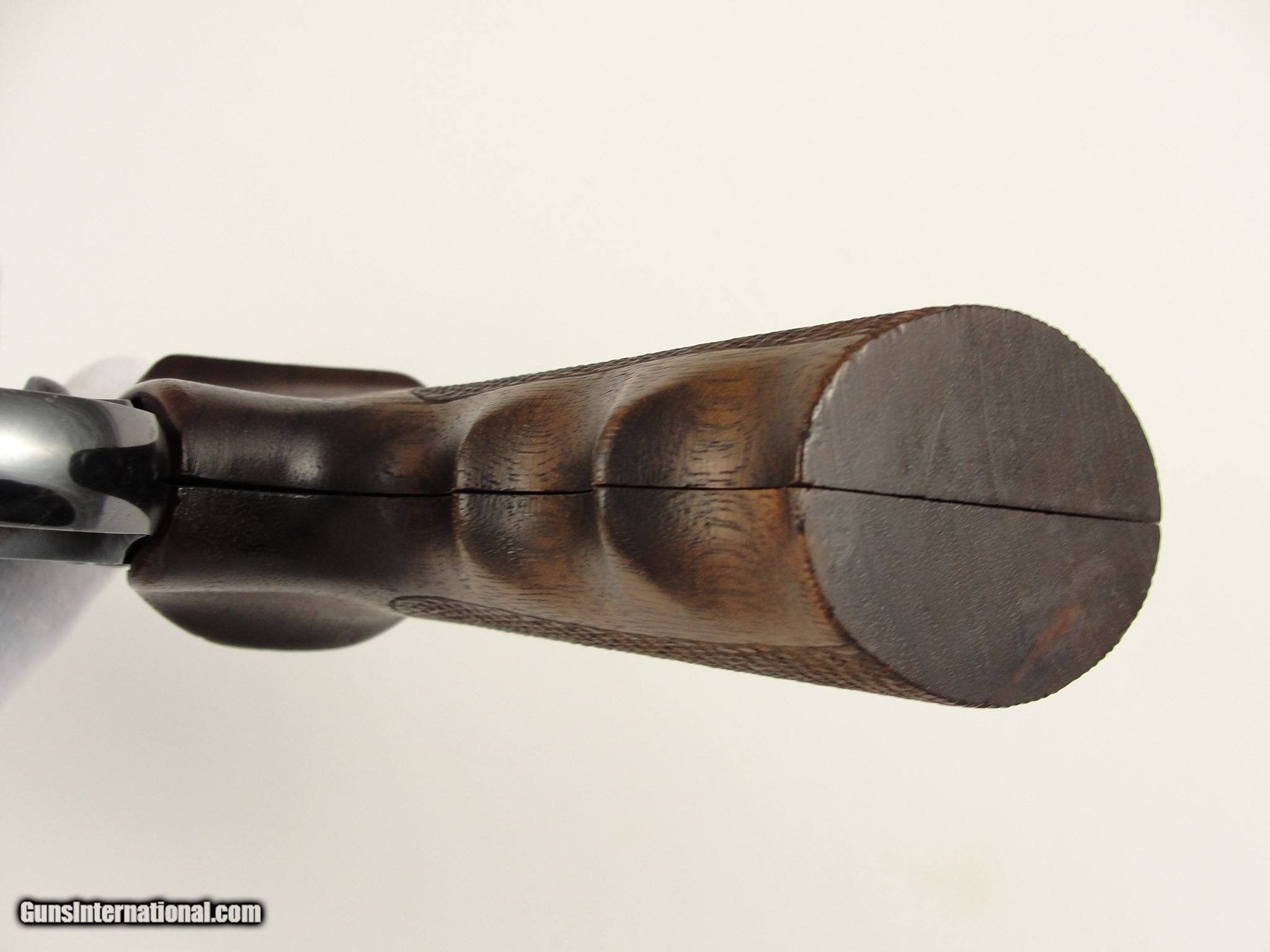 Description: SOLD PENDING FUNDS Manufactured in 1936, this revolver was a special 3 lb trigger pull, one item shipment direct to King Gun Sight Company and in addition is now single action only. This unique revolver features a full length ventilated rib on top of the barrel. The rib is marked "COLT-KING SUPER TARGET" on the left side and features an adjustable Patridge front blade, and fully adjustable rear notch sight. It also has the proper small reflector inset in the rib just behind the front sight. The hammer has a slight offset to the left and fine sharp checkering. The trigger is also finely checkered. The wooden grips are target and fully checkered with thumbrest. Bore is mint. Timing and lock up are tight, with the bolt dropping just in the channels on all 6 cylinders. There are markings and wear commensurate with use of a properly taken care of 82 year old firearm. Please view the photos here to evaluate the condition for yourself. Factory letter included. No International or California sales. Shipping & insurance by FedEx is $45 to eligible lower 47 states. Buyer is responsible for knowing their own local and state laws and whether or not you are prohibited from taking possession of, or owning this firearm. By purchasing, you are attesting to being of at least 21 years of age. ***The purchaser assumes all risks and should have a qualified Gunsmith evaluate the firearm before they shoot it. *** Payment must be by bank certified (cashiers) check or Postal Money Order. Shipping to AK or HI will have additional costs for which buyer is responsible. I will need a copy of an FFL dealer license to ship the gun. There is a 3 day, no-shoot, no disassembly inspection period and the buyer is responsible for cost of shipping both ways if returned. If your FFL dealer will not accept shipment from an individual, I will need an additional $40 to ship through my FFL. SOLD Curio/Relic: Yes Manufacturer: Colt Model: Official Police - King Super Target Caliber Info: .22 LR Bore: Excellent |