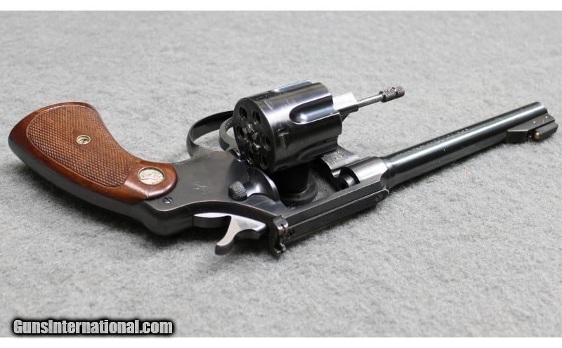 Description: This Colt revolver is chambered in .22 LR. Walnut grips with checkering and a 6" barrel are this items standout features. No box, no extras. .22 Long Rifle SOLD Metal Condition: Very good with minor wear and handling marks Wood Condition: Very good with minor wear and handling marks Bore Condition: Bright and clear with no pitting Barrels: 6 inch Weight: 1lb 15oz Item Location: Fort Worth, TX |