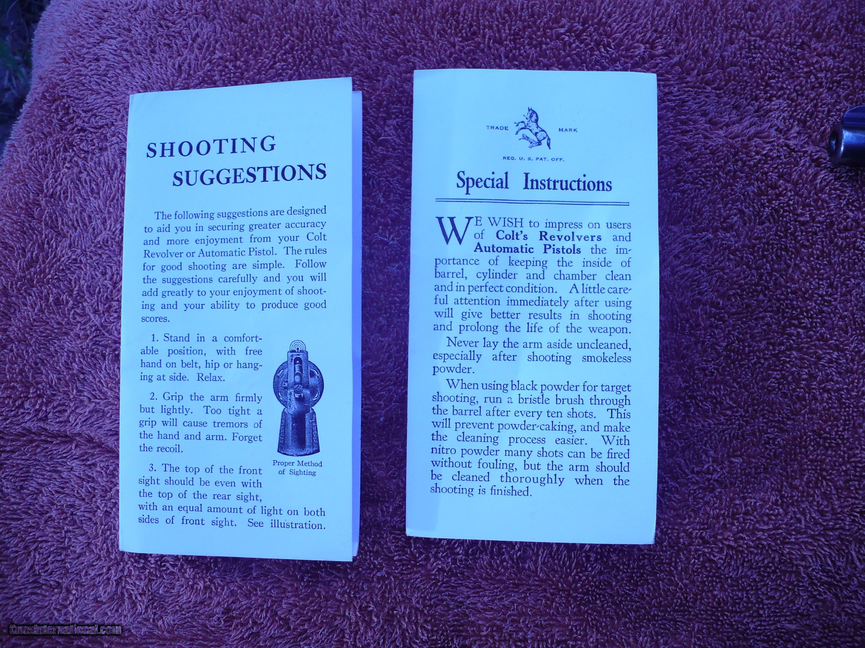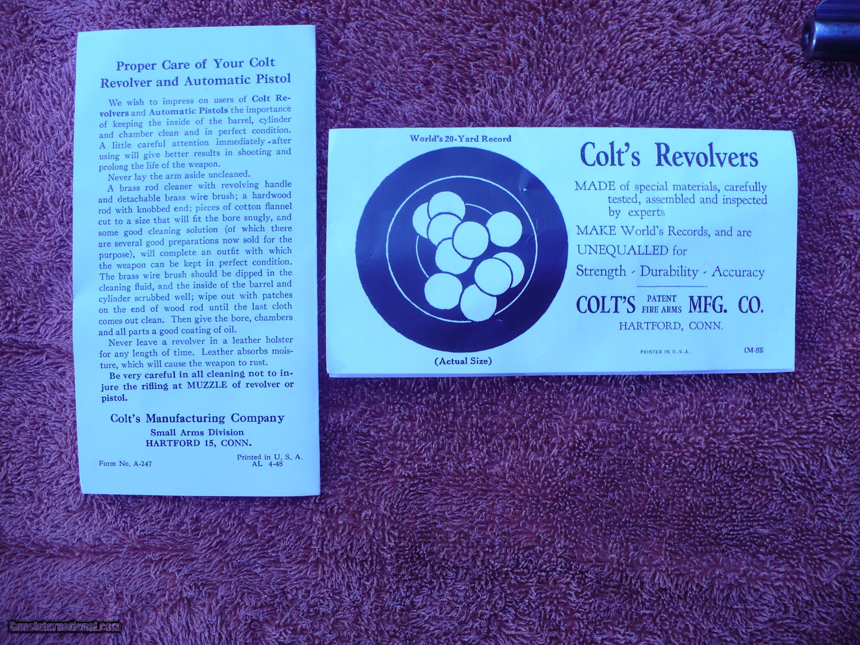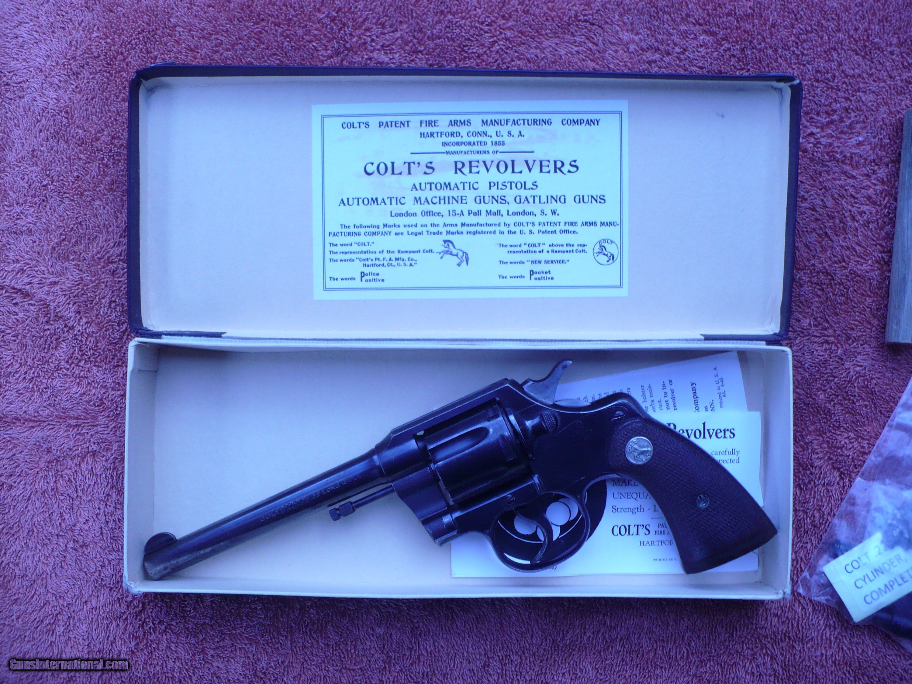 Description: Colt Official Police .22 Wood/Blued The Colt Official Police is a medium frame, double-action revolver with a six-round cylinder, manufactured by the Colt's Manufacturing Company. Released in 1908 as the Colt Army Special, the revolver was renamed the "Colt Official Police" in 1927 in order to better market to law enforcement agencies. It became one of the bestselling police firearms of all time, eventually coming to exemplify typical law enforcement officer weaponry in the 1950s. Offered for sale is a 1930s model Official Police chambered for the much sought after .22 cartridge. This Official Police was bought at an estate sale as is, and does not ratchet. It comes with the original box and spare parts. Seems someone bought parts to fix it but never got around to it. I am no gun smith, so my loss is your gain. Selling as is with no return. I am asking $360 or best offer, plus $55 for shipping. I will accept a personal check, usps mony order, or a certified check. SOLD Handgun Caliber: .22 Long Rifle Manufacturer: Colt Model: Official Police Barrel Length: 6 Condition: average Metal Condition: average Wood Condition: average Bore Condition: average |