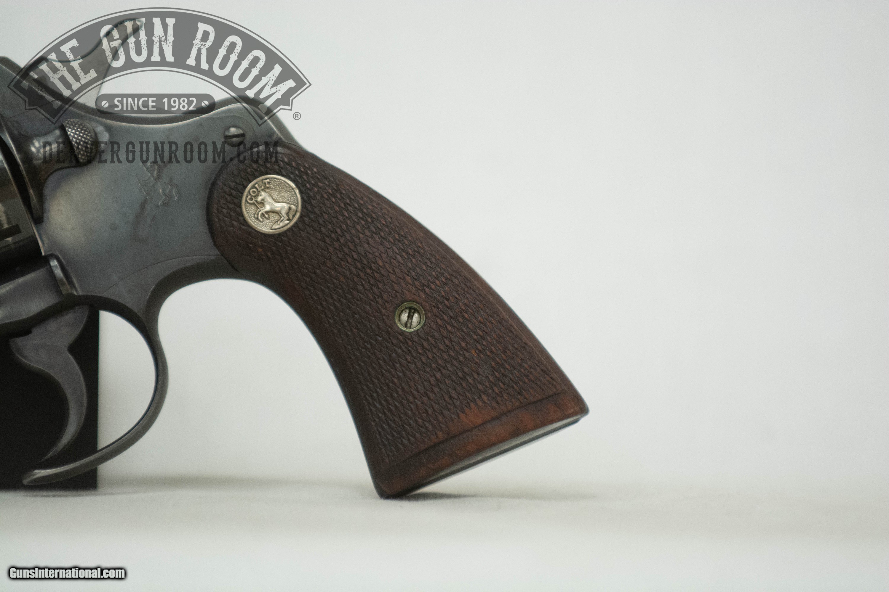 Description: Up for sale is a Colt Official Police chambered in .22LR. This revolver has had the "Fitz" trigger guard modification done, and comes with a rug with a sewn on "Fitz Special" patch. SOLD Handgun Caliber: .22 Long Rifle Manufacturer: Colt Model: Official Police Barrel Length: 6 Bore Condition: Very Good Item Location: Lakewood, CO |