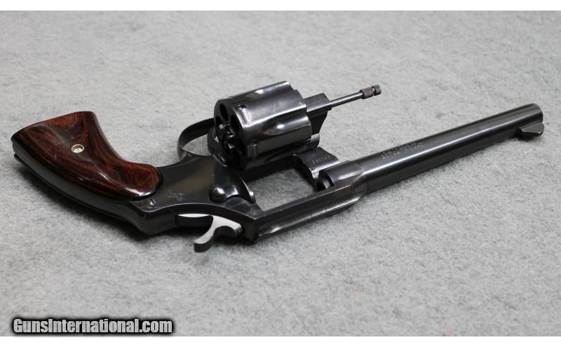 Description: This Colt revolver is chambered in .38 S&W Special. It features smooth walnut grips, a 6" barrel, and a cylinder capacity of 6 rounds. No extras. .38 S&W Special SOLD Metal Condition: Very good with minor wear and handling marks Wood Condition: Very good with minor wear Bore Condition: Bright and clear with no pitting Barrels: 5.5 inch Butt Pad: Smooth walnut grips Weight: 2lb 5oz Sights: Front blade sight Item Location: Fort Worth, TX |