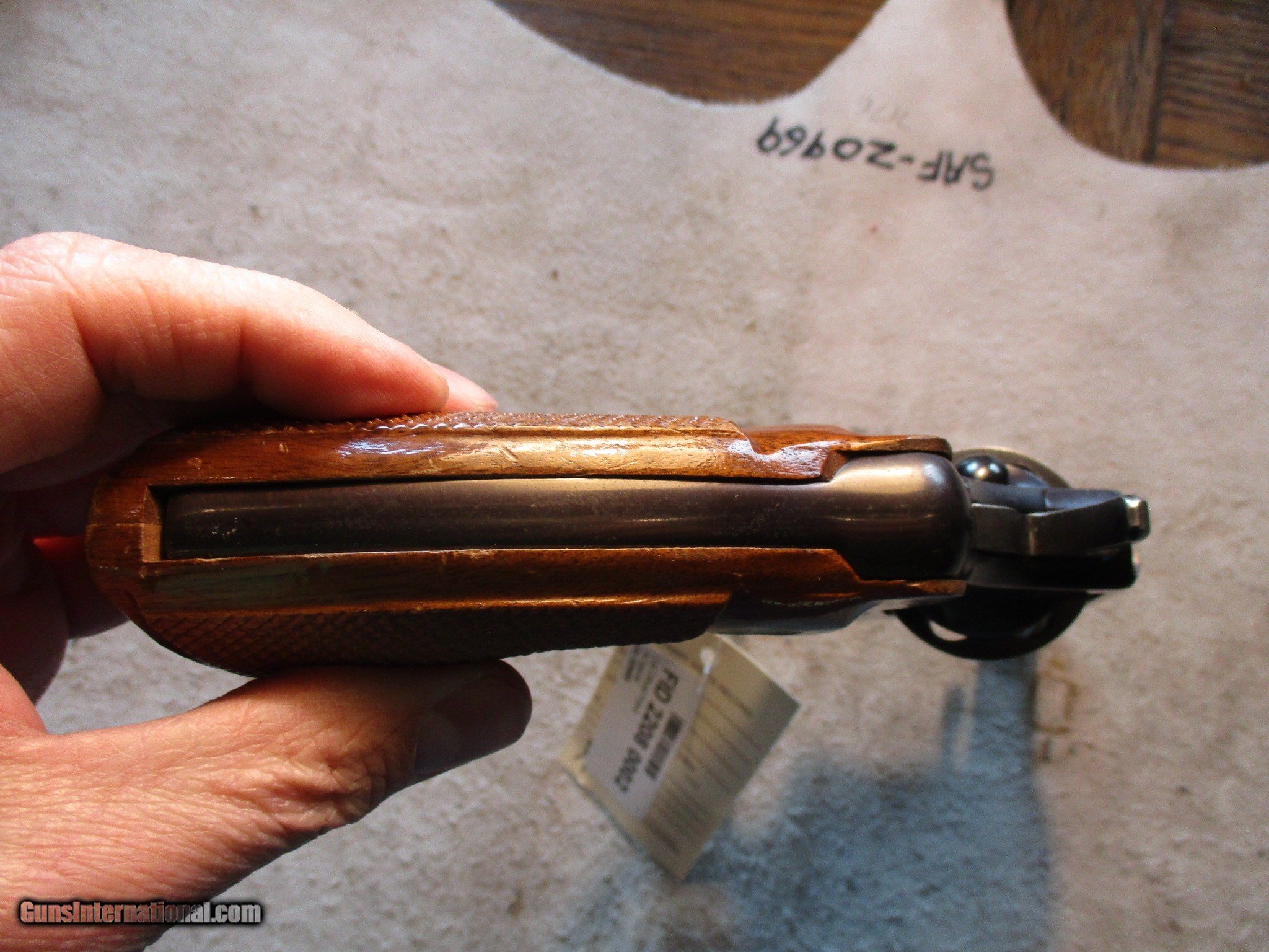 Description: Colt Offical Police, 38 Special, 4" Barrel. SN is 9266xx, made in 1969. Factory finish on both wood and metal, some blue wear as shown, some chunks out of the grips. Nice classic shooter! We will trade for silver and gold. We accept personal check, any certified funds, Venmo or Zelle. We can also take your credit card, +3%. Email me if you would like these pictures sent to you, they will come through bigger and better than on the listing page here. We do offer Layaway. Our standard terms are 25% down, 90 days. Initial deposit is not refundable. Email me with any questions. Please check your local laws to confirm it is legal to own in your state! Buyer pays $25 shipping and insurance to your FFL in the lower 48. AK, HI or PR is extra. I will ship to California, as long as it is legal, NO PROBLEM! All my guns come with a non-firing, 3 day unconditional return privilege, from the day UPS delivers to your dealer. Buyer pays shipping both ways if the gun comes back. Please make sure to make it to your FFL to inspect within the 3 days. If your gun doesn't have a box or case we can add a new hard case by PLANO for secure shipping for $30 if the buyer wishes (highly recommended, cheap insurance, really helps keep the UPS monster from eating my guns!). I am a licensed FFL, and will include a copy of my FFL with the gun for your dealer’s records. I will ship to a C&R if the gun is eligible. I will ship to California, but you need to confirm the gun is legal where you are, California or other. WE BUY AND CONSIGN GUNS AND GUN COLLECTIONS! We will travel to pick up collections! I am always looking for good clean, old original Winchesters to buy, consign, or trade, especially Pre '64's model 70's and model 54's. WE ALSO TRADE FOR CLASSIC CARS AND TRUCKS! We also trade for gold and silver. SOLD Handgun Caliber: .38 Special Manufacturer: Colt Model: Official Police Barrel Length: 4 Condition: Used |