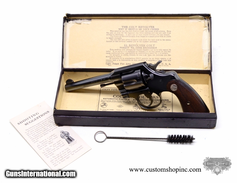 Description: Colt Official Police .38 Special. With Unusual 5 Inch Barrel. Manufactured In 1944 During WWII. The Official Police Model Would Eventually Become The Colt Python. Complete With Matching Factory Box And Cleaning Brush. SPECIFICATIONS