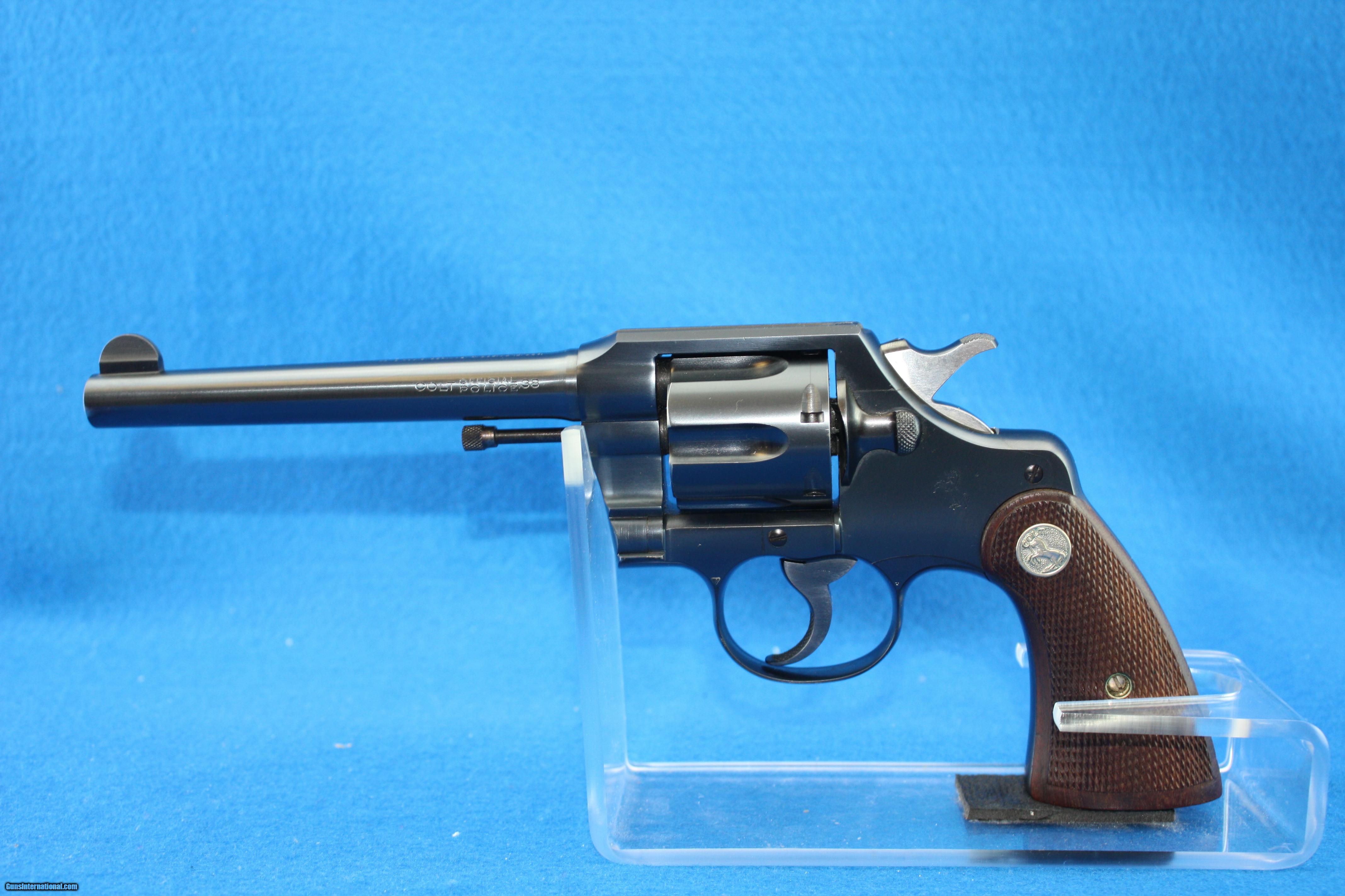 Description: COLT OFFICIAL POLICE, MFG 1937 PRE WAR, .38 SPL, 6" BARREL, FIXED SIGHTS, BLUING VERY GOOD, WOOD GRIPS AND CHECKERING VERY GOOD, APPEARS TO HAVE BEEN FIRED VERY LITTLE, OVERALL 98%+. HOLSTER INCLUDED. ADD 3% FOR CREDIT CARDS. SHIPPING $25.00 SOLD |