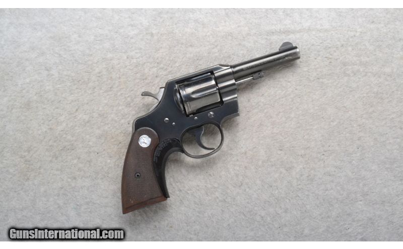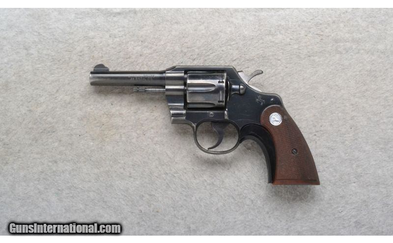 Description: This Colt Model Official Police is a 6 shot double action revolver in .38 Special Cal. It has a 4 inch barrel. A blade front sight and an integral notch rear sight. The grip is a checkered hardwood with silver Colt medallions. It has a black plastic enhanced front grip piece. Comes in its original box. .38 Special SOLD Chambers: 6 shot. Metal Condition: Good. Some blue wear and minor handling marks. Wood Condition: Good. Some minor handling marks and wear. Bore Condition: Very Good. Barrels: 4 inch. Triggers: SA/DA Weight: 34 oz. Sights: Blade front. Integral notch rear. Item Location: Richfield, WI |