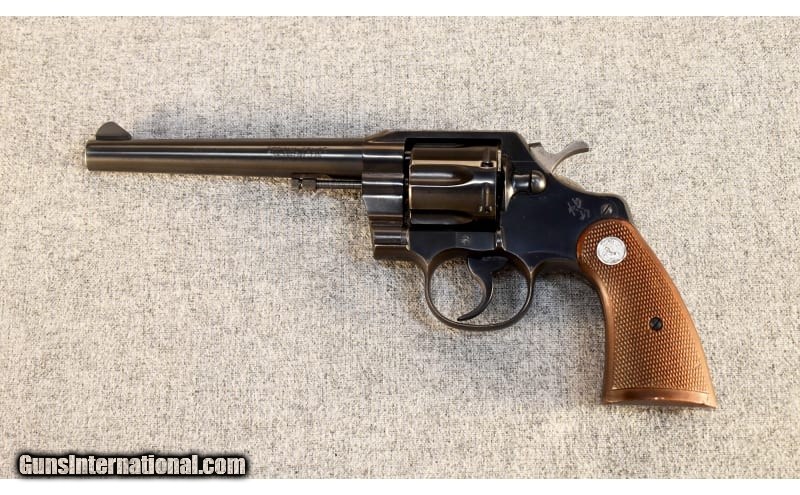 Description: This is a pre-owned Colt Official Police in .38 Special with a six-inch barrel manufactured in 1957 .38 Special SOLD Metal Condition: "Very good with a few small scratches, light cylinder drag marks and slight wear to the bluing at the muzzle, front sight and ejector rod Wood Condition: Very good with a few small scratches Bore Condition: Clean with bright lands Barrels: 6 Triggers: DA/SA Butt Pad: Checkered walnut grips Weight: 2 Lbs. 2 Oz Sights: "Blade front, integral U-notch rear Item Location: Glendale, AZ |