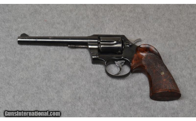 Description: Mfg 1947. SOLD Manufacturer: S/N 735XXX Caliber Info: .38 spl. Chambers: 6-shot. Metal Condition: Reblued with pitting to underside of barrel and cylinder. Bore Condition: Strong rifling, no pitting. Barrels: 6 Triggers: Double action. Stock: Plastic replacement grips. Weight: 34 oz. Sights: Blade front, notched rear. Item Location: Columbus, OH |