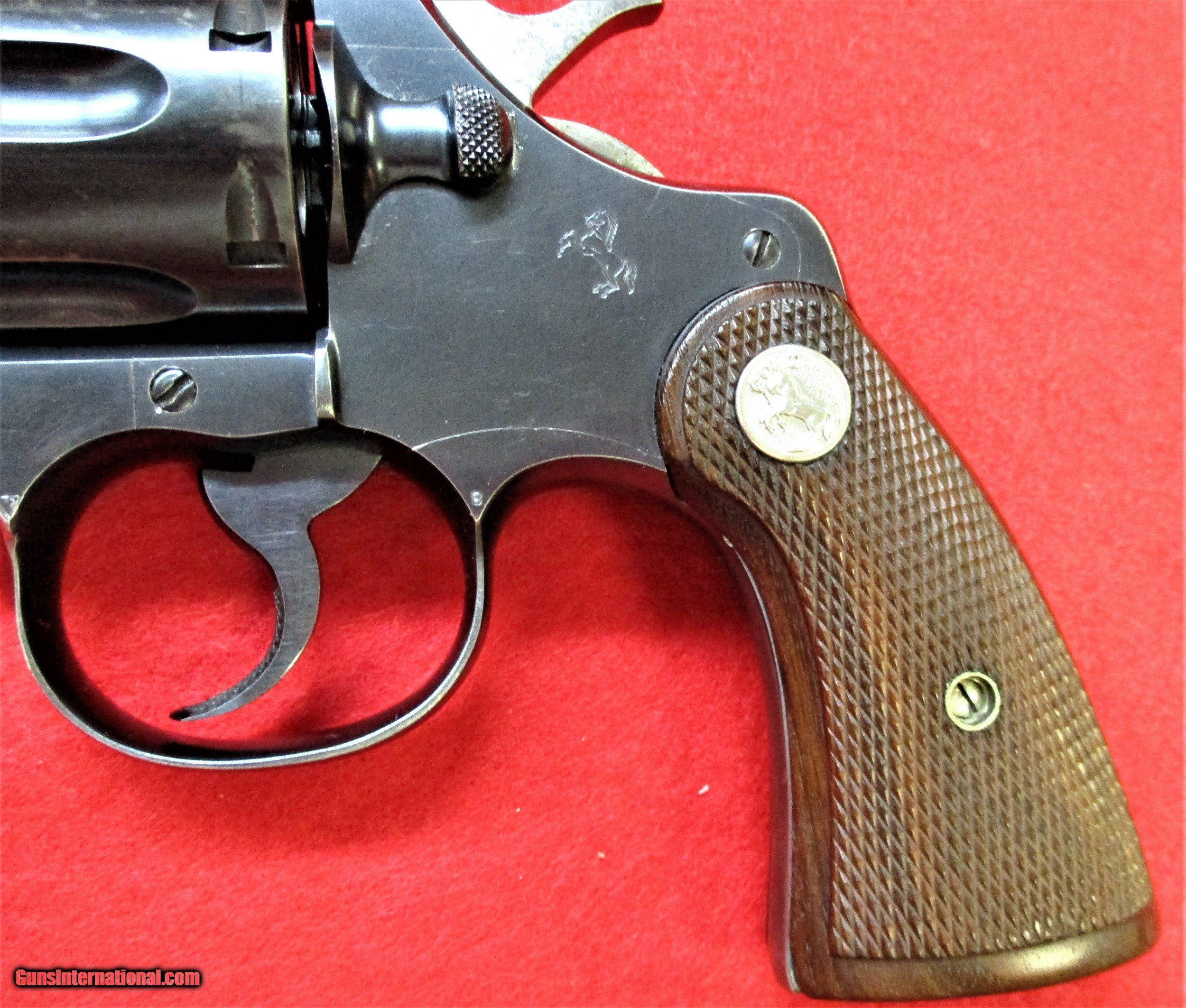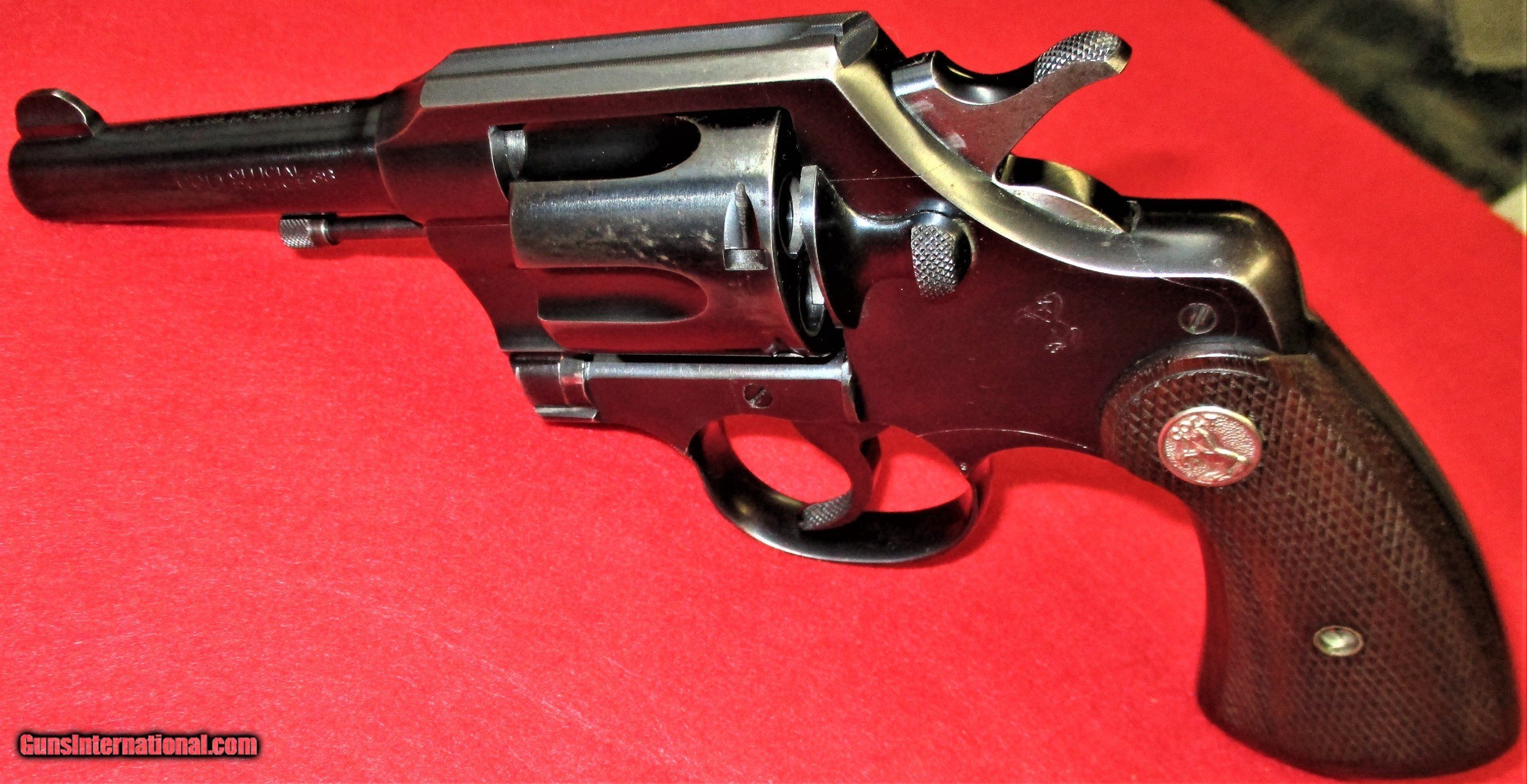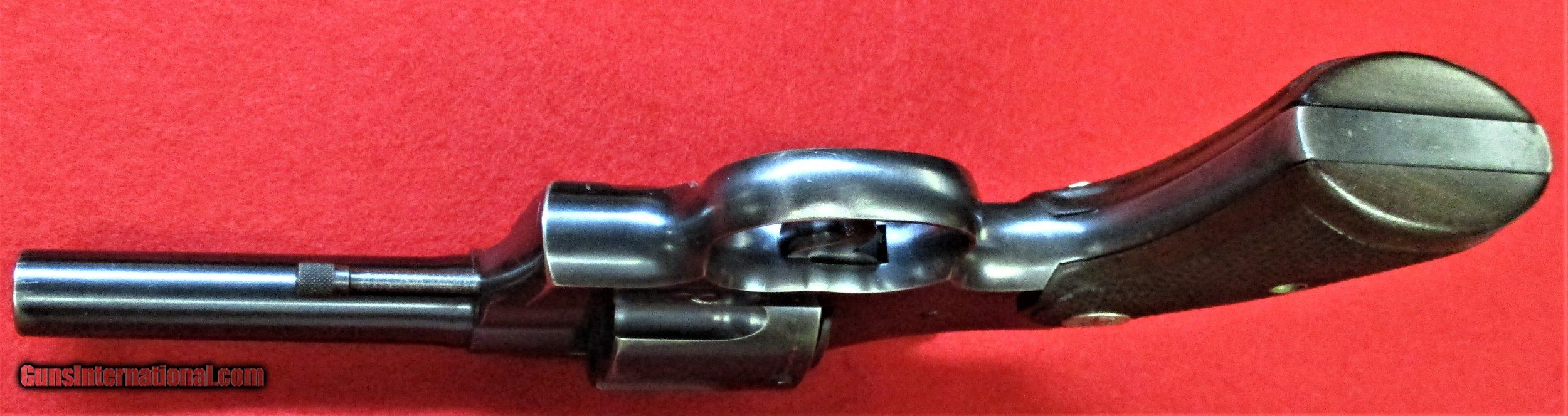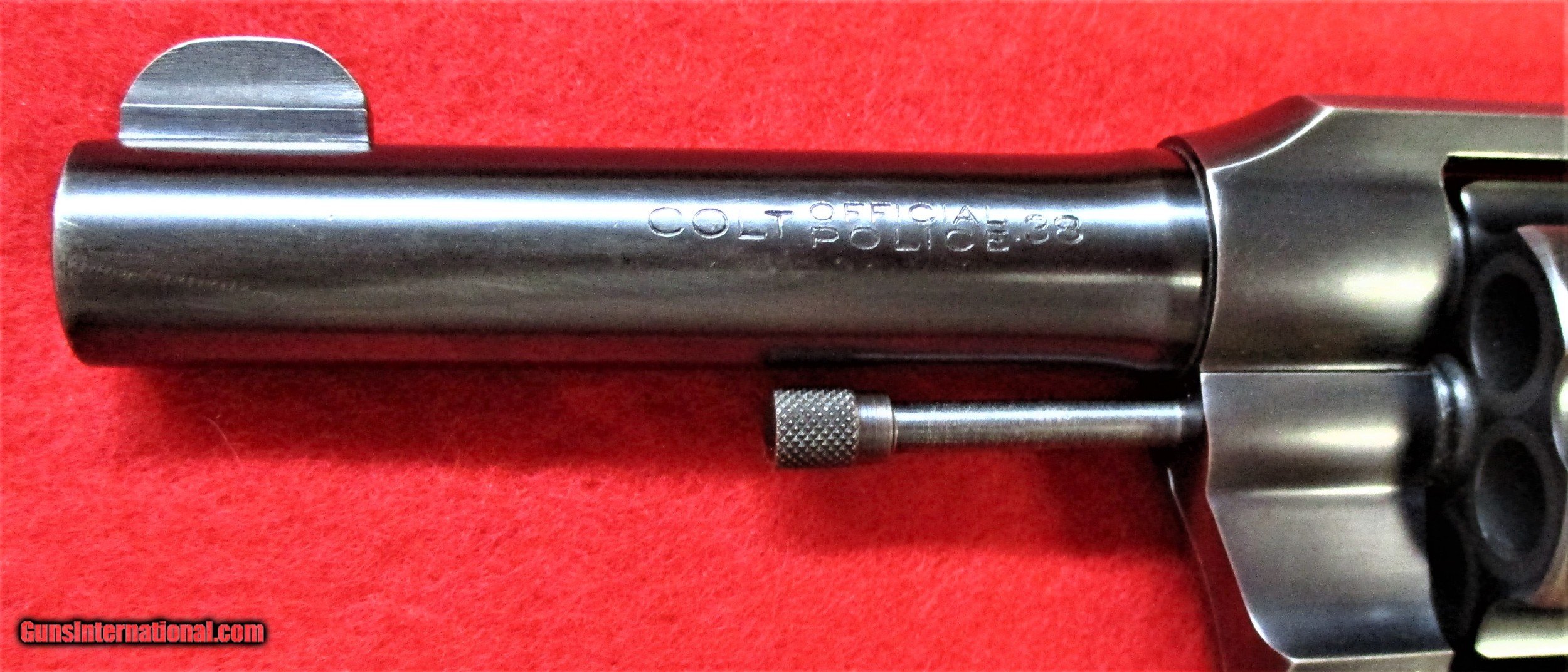 Description: SALE PENDING on this 1943 manufacture Colt Official Police revolver in 38 Spl. caliber. This is a 6 shot revolver with a 4" barrel. The blue is Very Good which I rate at about 90%. The front and back grip strap are turning a little grey. The frame and barrel have good blue coverage with slight wear on the high edges, cylinder and muzzle.One screw head is buggered. All stampings are sharp. Lock up is very good with normal cylinder play. The bore is clean and shiny with great rifling. The grips are wood with cut checkering and Colt Medallions on each panel.The grips are excellent with no chips or cracks. This is a nice Colt Double Action Revolver which I do not think you would be disappointed in.It is not a closet queen but quite nice and you would not be afraid to shoot it.Although it has seen some use It has been cared for. I am a Storefront FFL in business for 17 years with over 1300 A+ internet ratings. I will ship to a FFL within the Continental US including AK and HI.A 3-Day inspection applies from the time the gun is delivered to your Dealers address.Shipping is $25.00 usps priority mail. Email your questions or feel free to call me at the telephone numbers listed. Thank you, Glenn SOLD Handgun Caliber: .38 Special Manufacturer: Colt Model: Official Police Barrel Length: 4 Metal Condition: Very Good Wood Condition: Excellent Bore Condition: Excellent Sights: Fixed Factory |