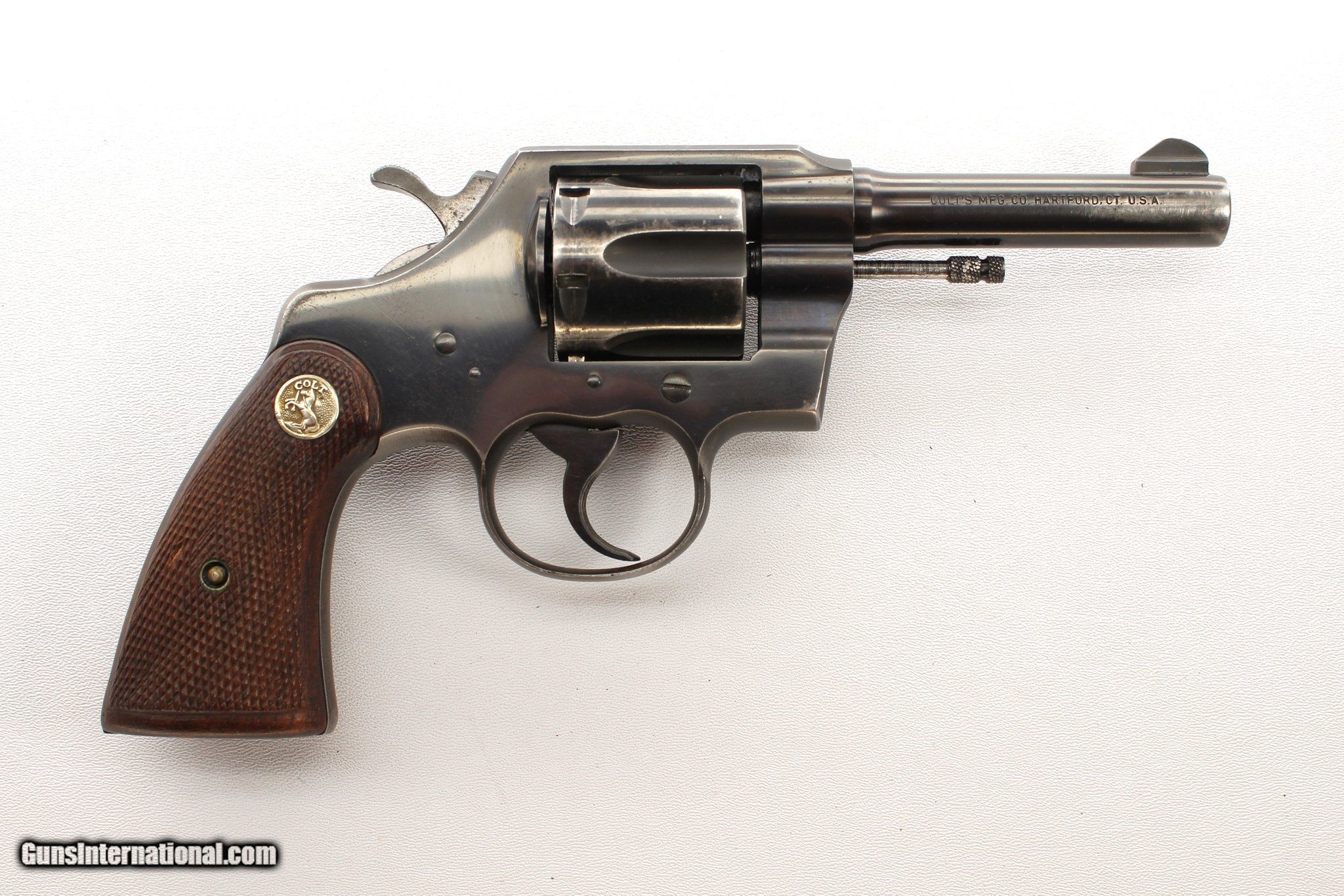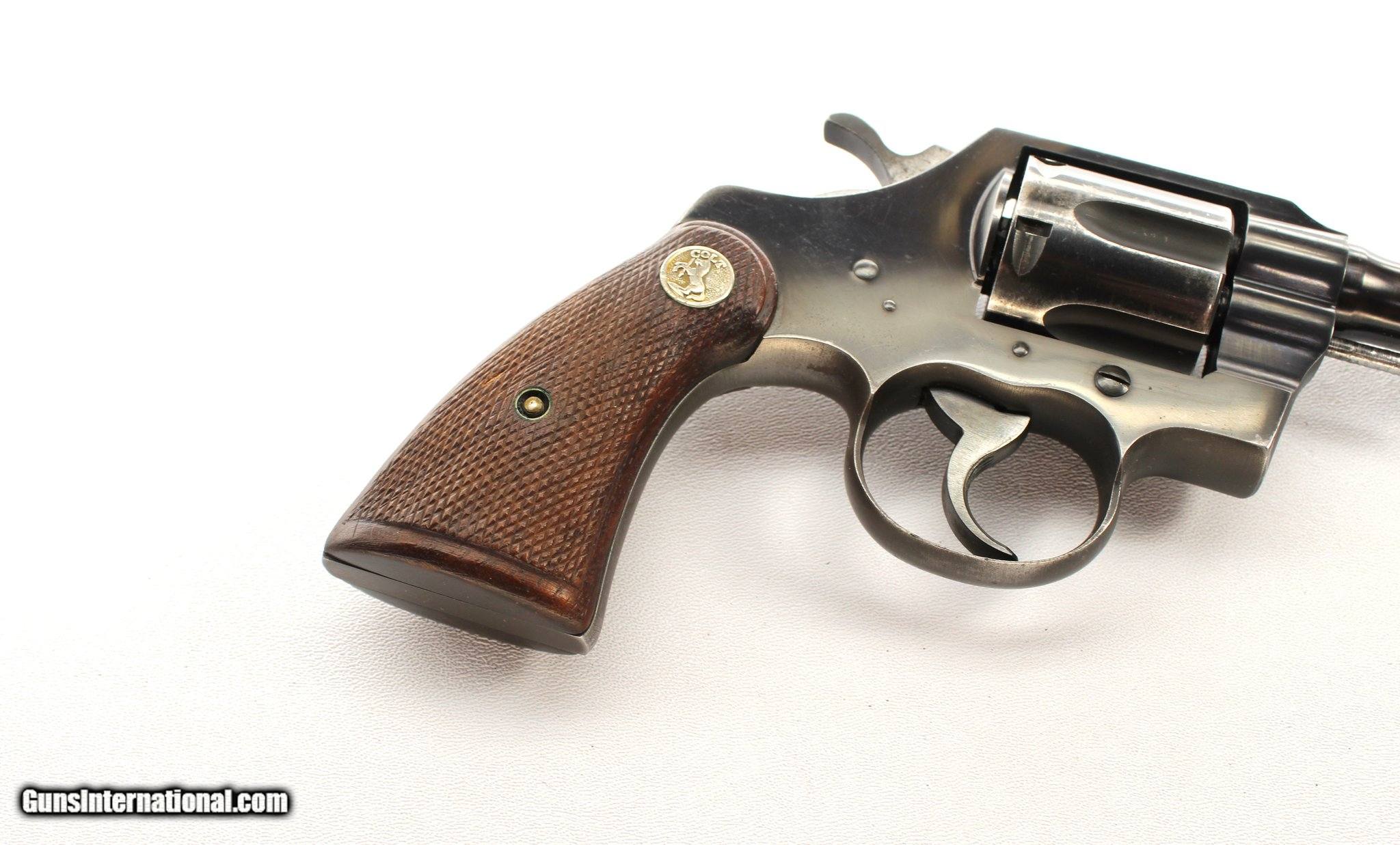 Description: Guns Listing ID: 1306564 SER #825960, 38 Special, 4” barrel with good bore. The metal surfaces of this early 50s manufactured revolver retain about 88% original blue showing high edge wear and handling marks with loss at the muzzle. The fully checkered walnut factory service grips feature silver Rampant Colt medallions and rate good -fair showing a few handling marks soft points. This revolver features a serrated ramp front sight and fixed rear groove sight. Lock up is good and action is crisp. SOLD Manufacturer: COLT Model: OFFICIAL POLICE Caliber Info: .38 SPL Condition: Used - Non-Certified Barrels: 4 BARREL Finish: BLUE |