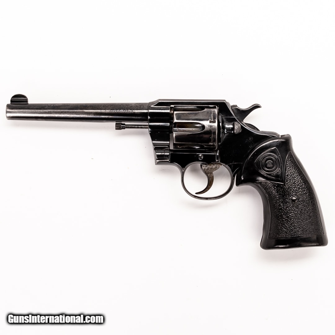 Description: Guns Listing ID: 346588 Originally named the Colt Army Special, the Colt Official Police was a very popular early 20th-century law enforcement revolver. This is a heavy barrel model that delivers six rounds of 38 Special and sports a 6\" barrel and FM Inc grips. It was manufactured in 1943 and remains in good condition, with some bluing wear. Serial number: 688556 SOLD Manufacturer: COLT Model: OFFICIAL POLICE HEAVY BARREL Caliber Info: .38 SPL Condition: Used - Certified Barrels: 6 BARREL Finish: BLACK |