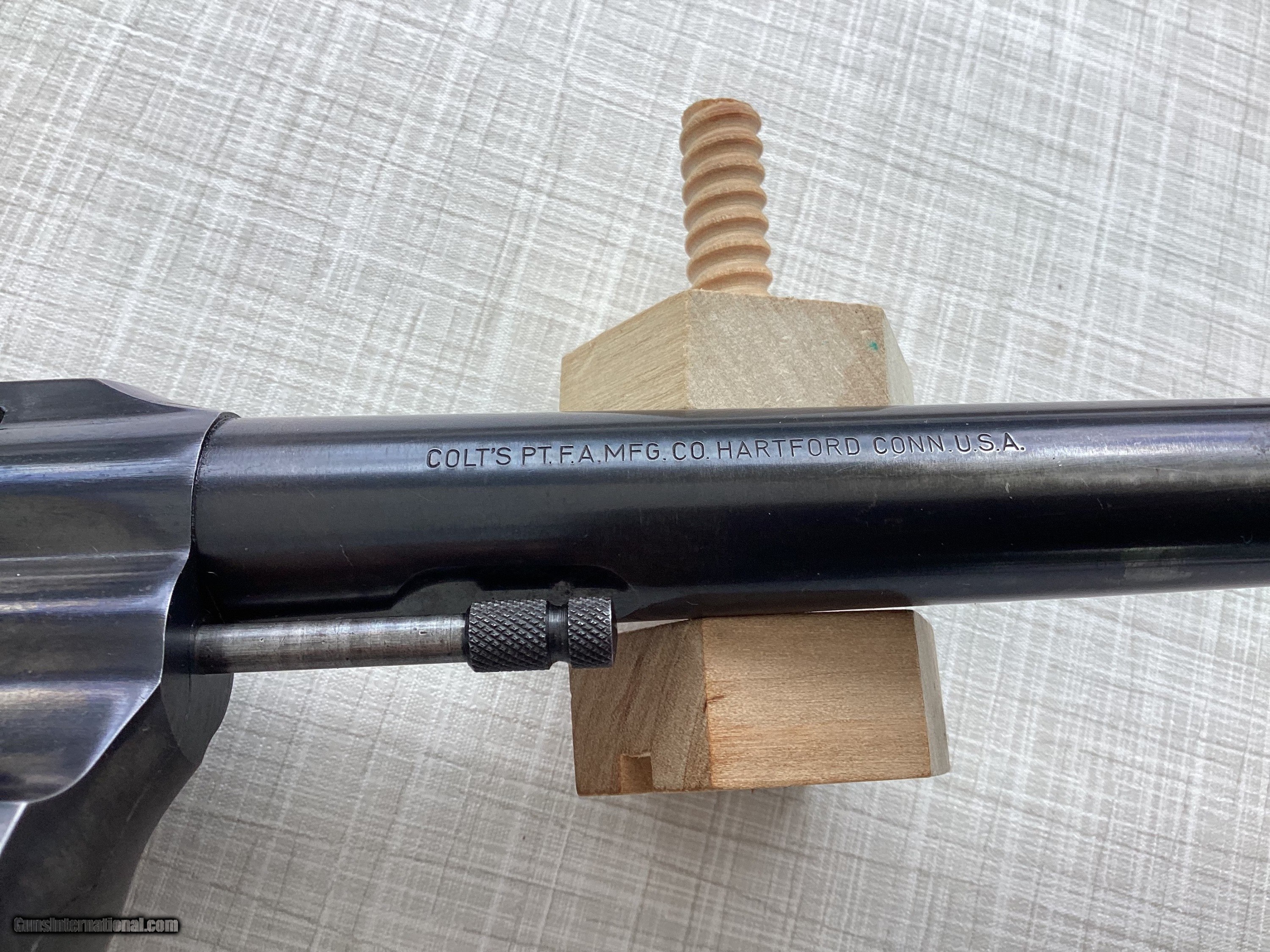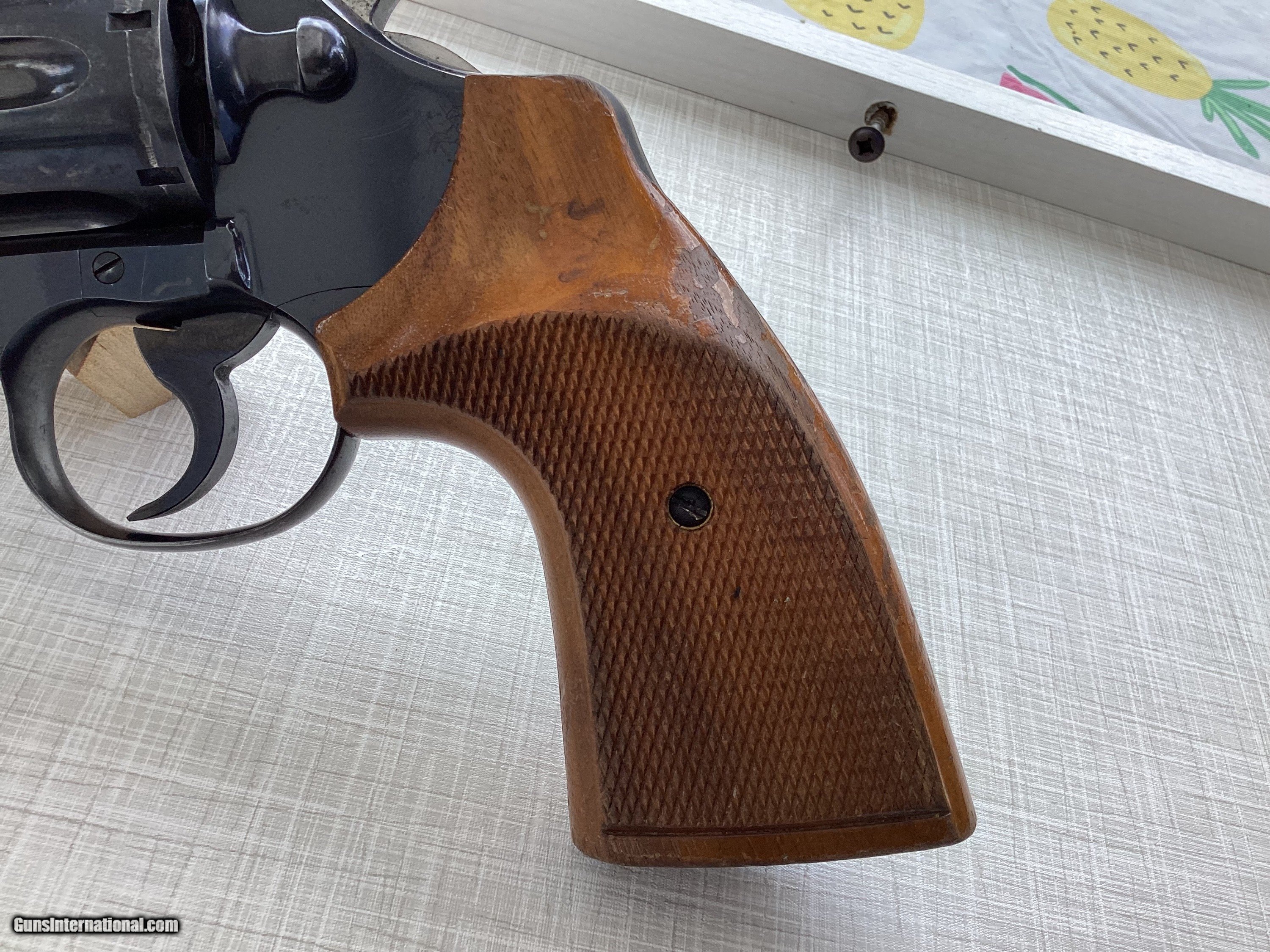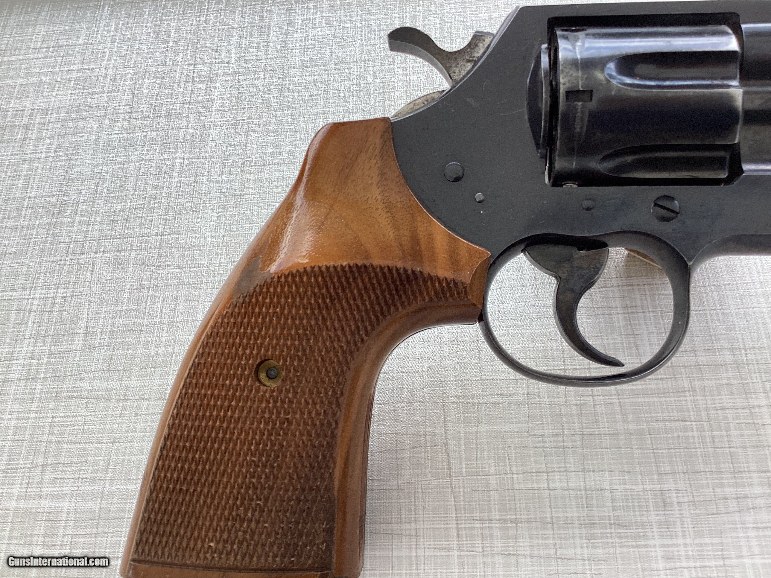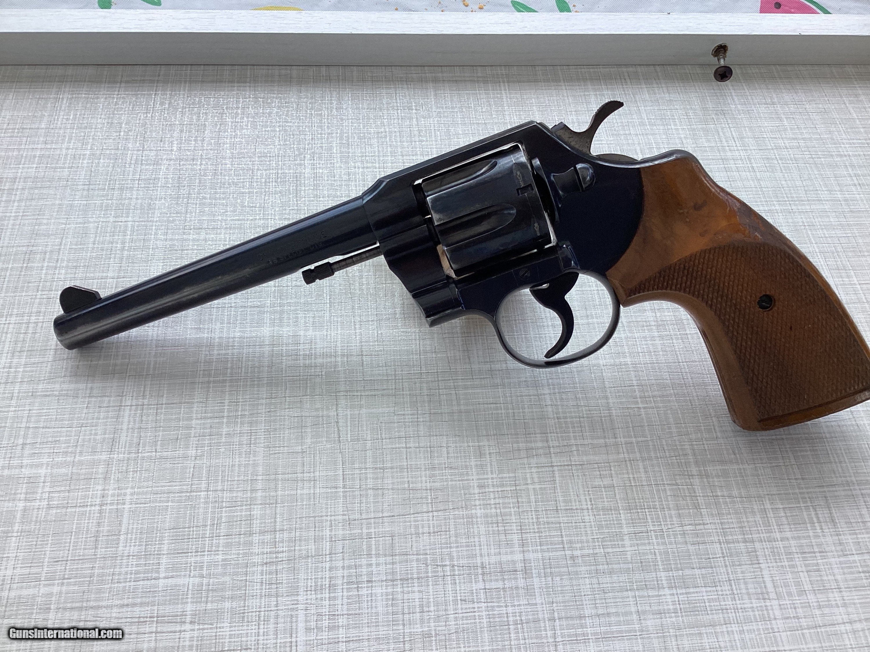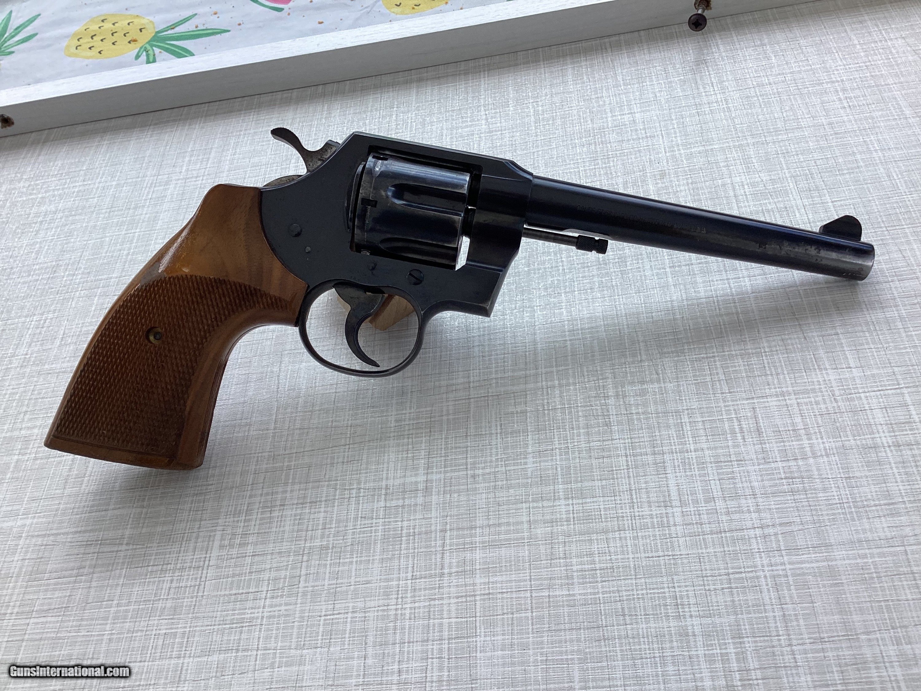 Description: NEW PRICE A very nice Colt Official Police Special CTG .38 made in 1957. Has the oversized wooden grips and a 6" barrel. Nice blue color with a good bore that is clean and bright. Double action that locks up tight. You won't miss much you shoot at with this 6" barrel! Has what you would consider usual ware for a 77 year old revolver. Got it priced to sell quickly as I got something else I want to buy. Shipped to your FFL in lower 48 for $25. SOLD |