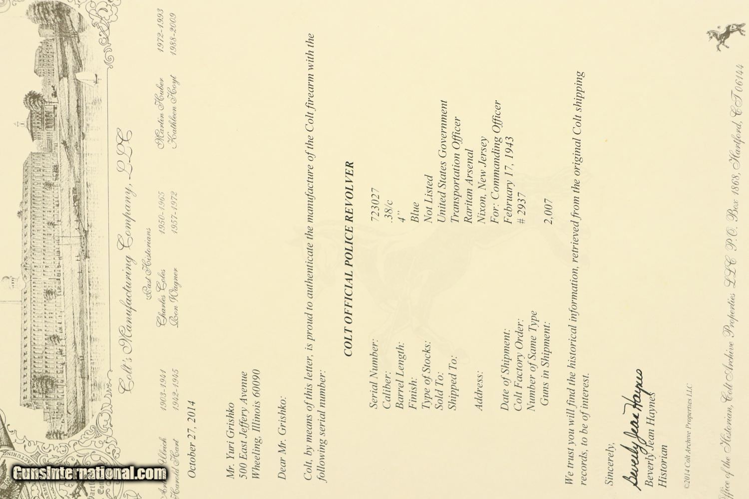 Fantastic Colt Official Police, Military Accepted, Factory Letter, FB01238