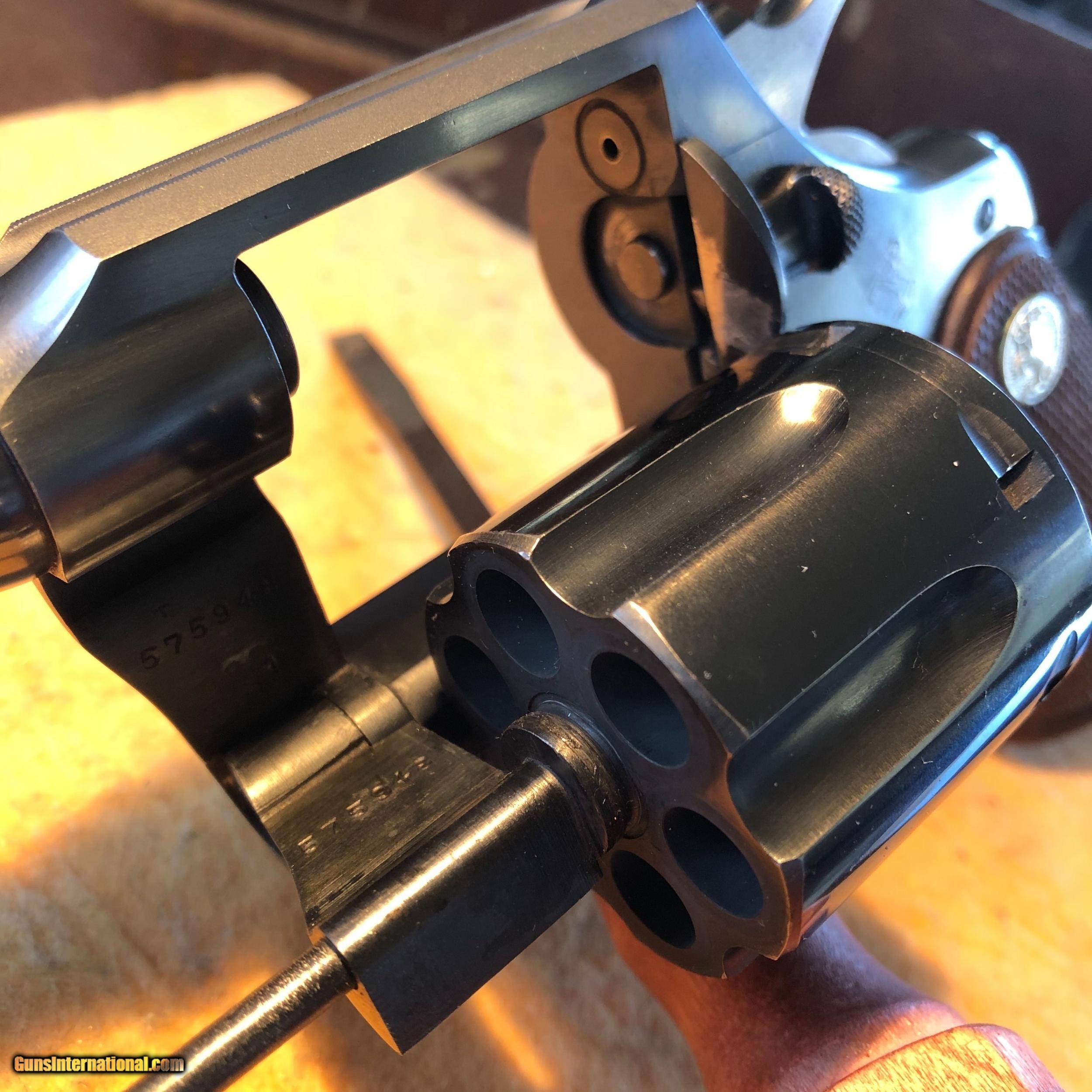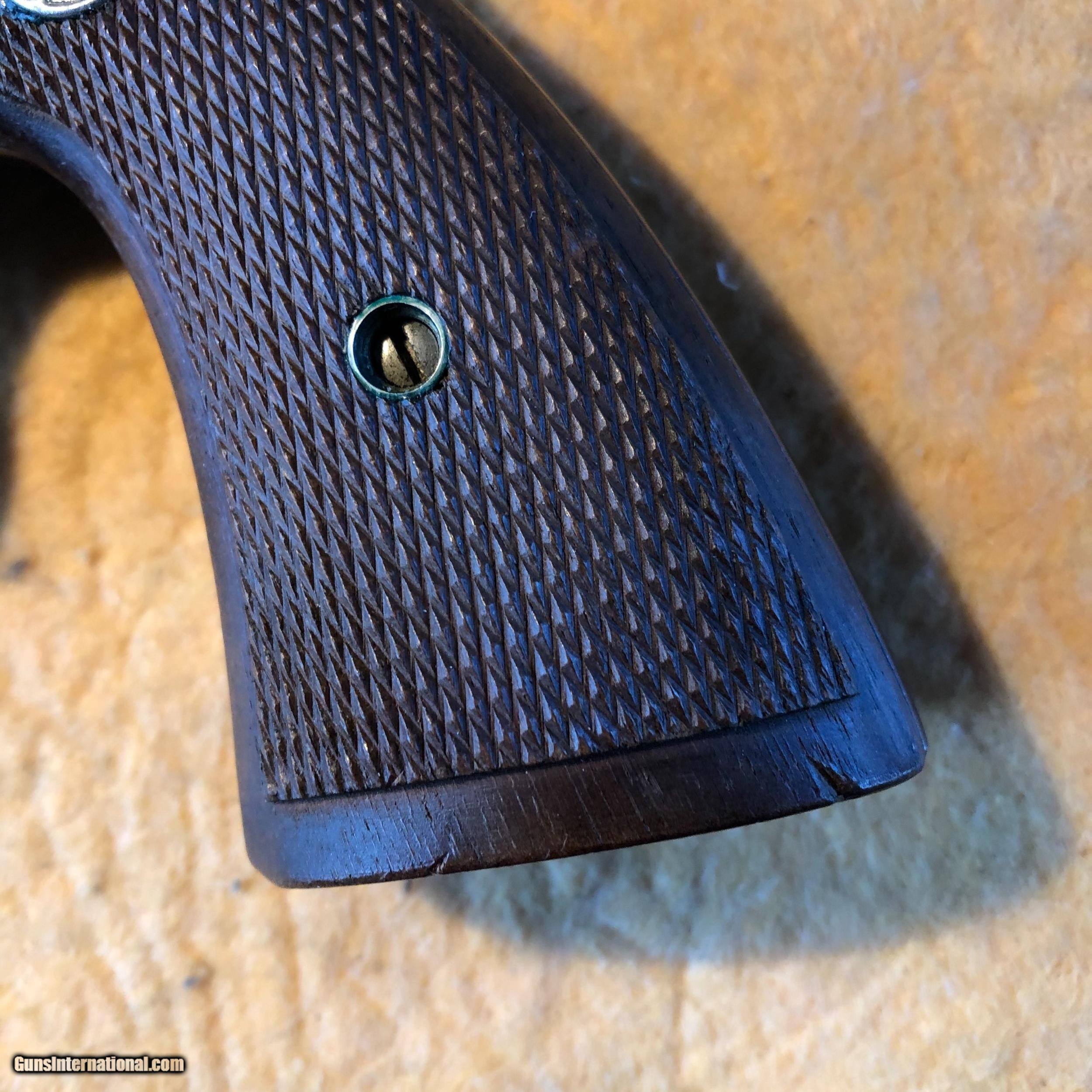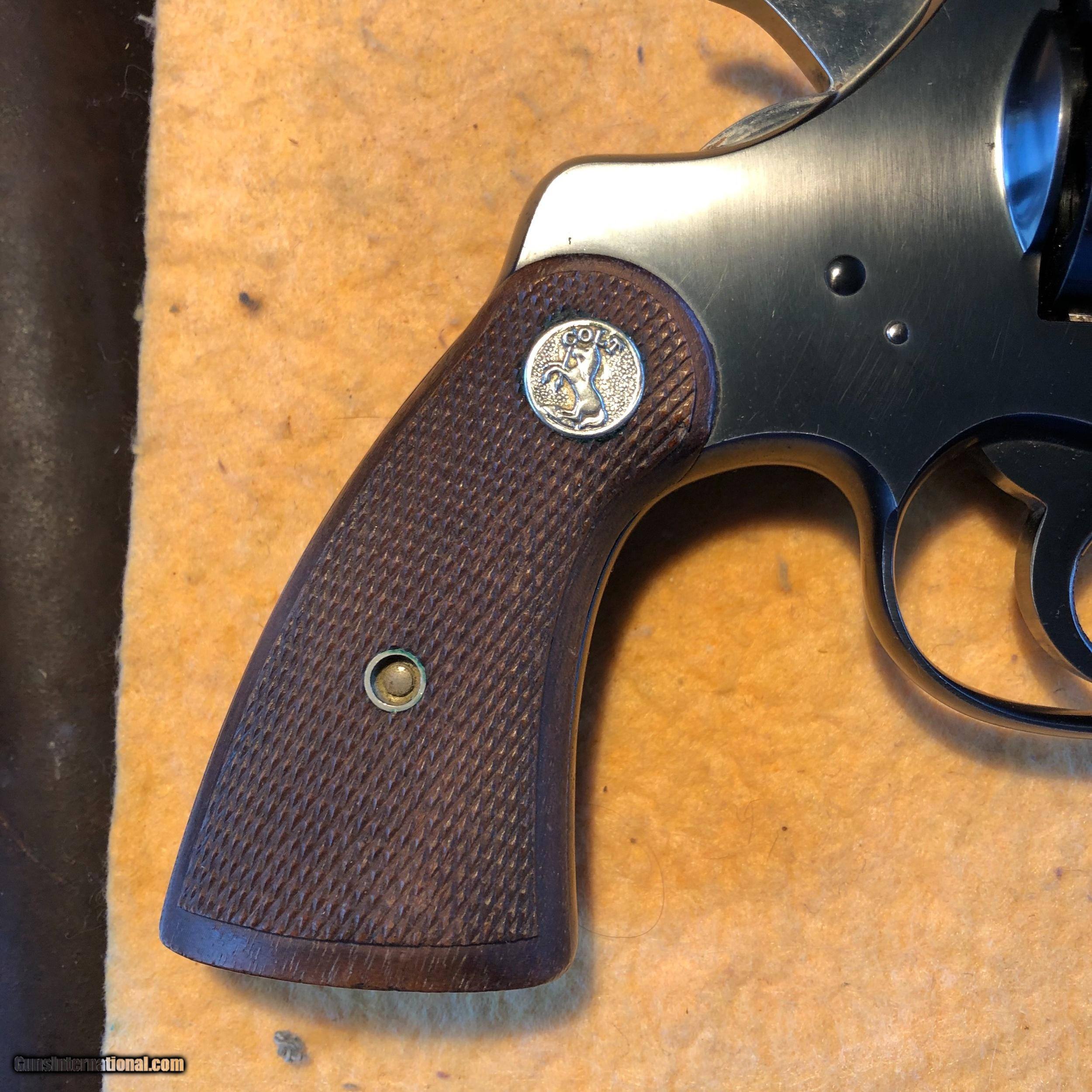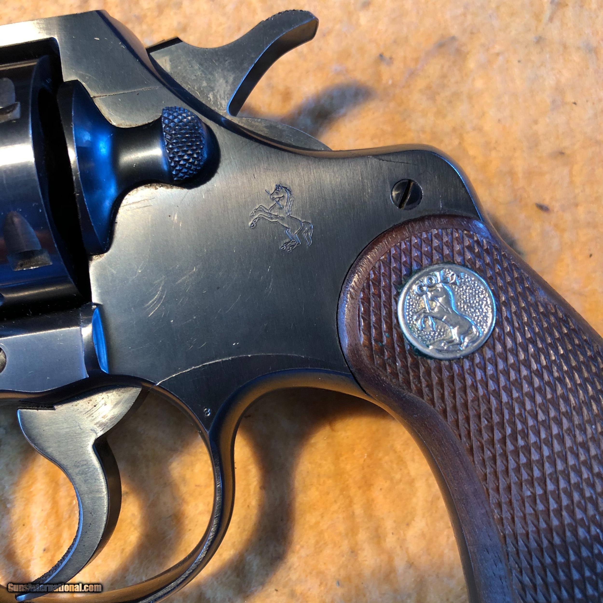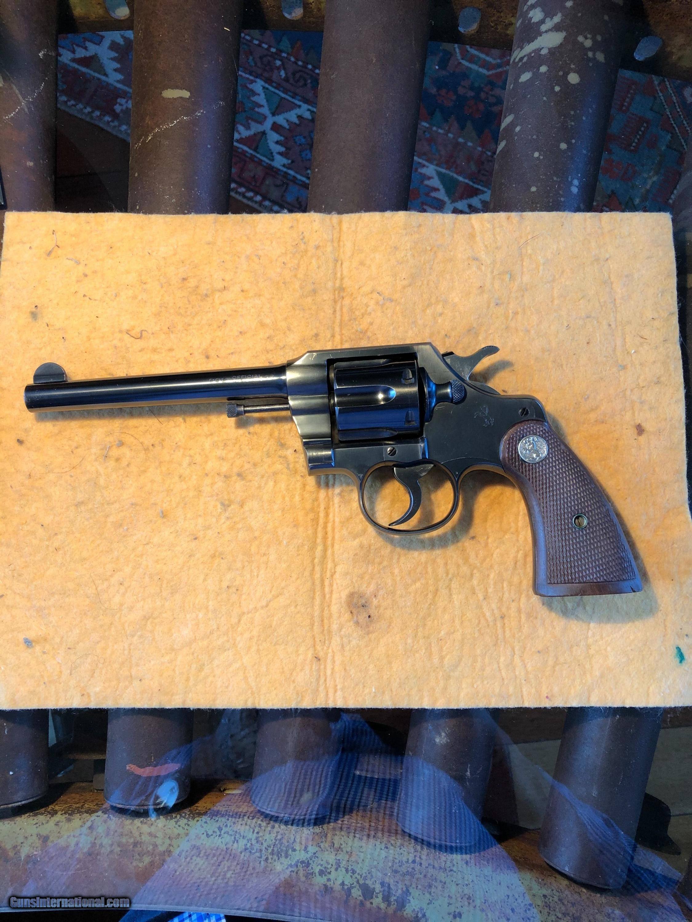 Description: Pre-war Colt Official Police .38. 5" barrel. Except for small nick at bottom of left grip and very slight blue wear both sides of muzzle (see photos), revolver is like new. Shipping $15. SOLD Curio/Relic: Yes |