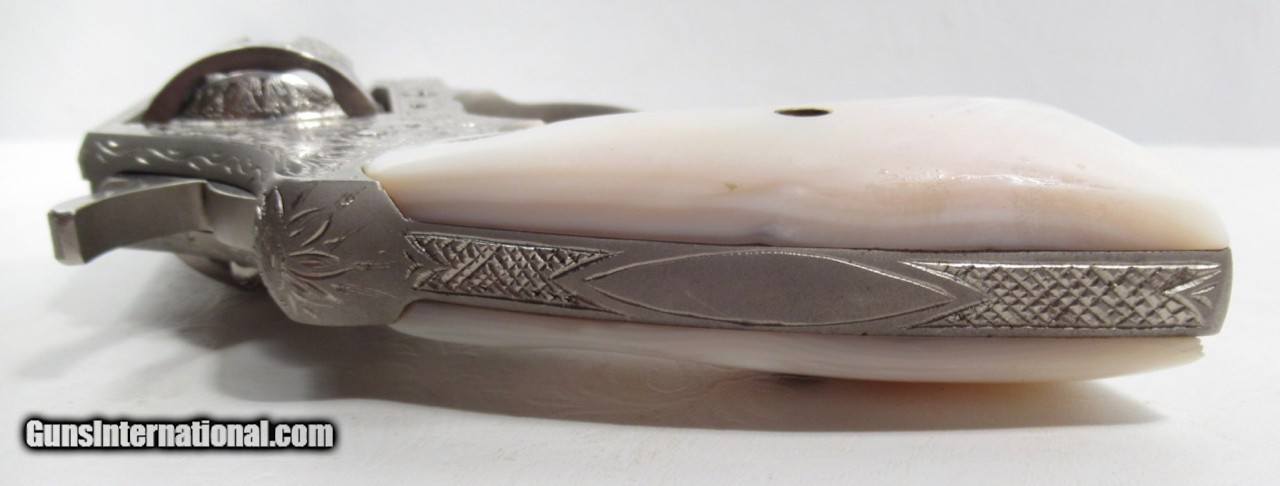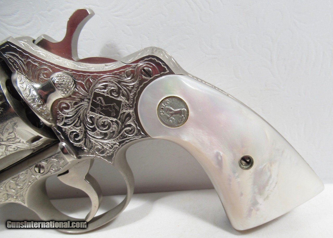 Description: Colt Official Police Revolver; Serial No. 820721; .38 Special Caliber; 5” Barrel; Very Rare Two-Tone Nickel Finish; Factory Letter on Order Will Indicate Factory Engraved with Pearl Grips Shipped to National Sporting Goods of Cleveland, Ohio on August 29, 1952; All Original Finish Remains;Near Perfect Original Pearl Grips w ith onr small chip; Perfect Action and Bore; Very Nice Rare Two-Tone Colt Official Police Revolver; See All Photos for Condition; No Texts; Call (254)541-5765 or Email Only; PERSONAL PROPERTY of Harold Wieser; Price: $15,000 + $45 S&H Via USPS PRIORITY MAIL; Payment Address: Harold Wieser - 1466 U.S. Hwy 77 - Rosebud, TX 76570; SEND PAYMENTS VIA USPS PRIORITY MAIL; SOLD Manufacturer: Colt Model: Official Police Serial Number: 820721 |
