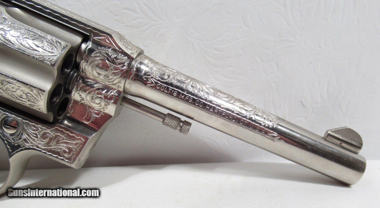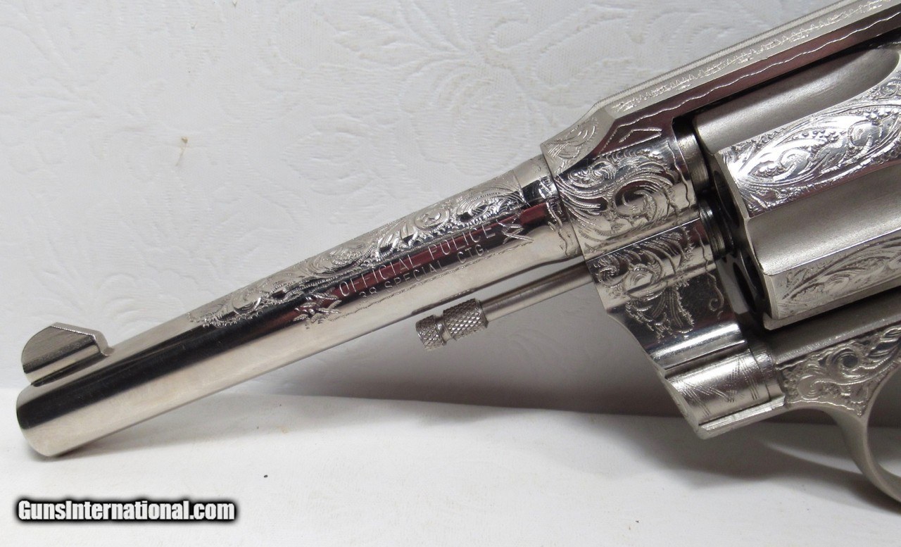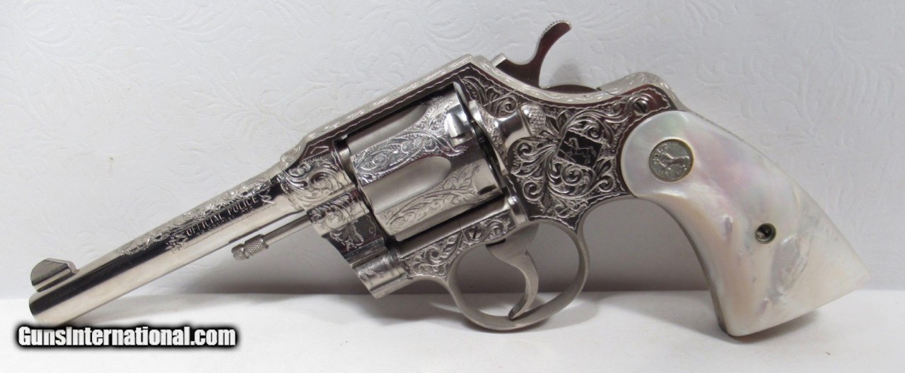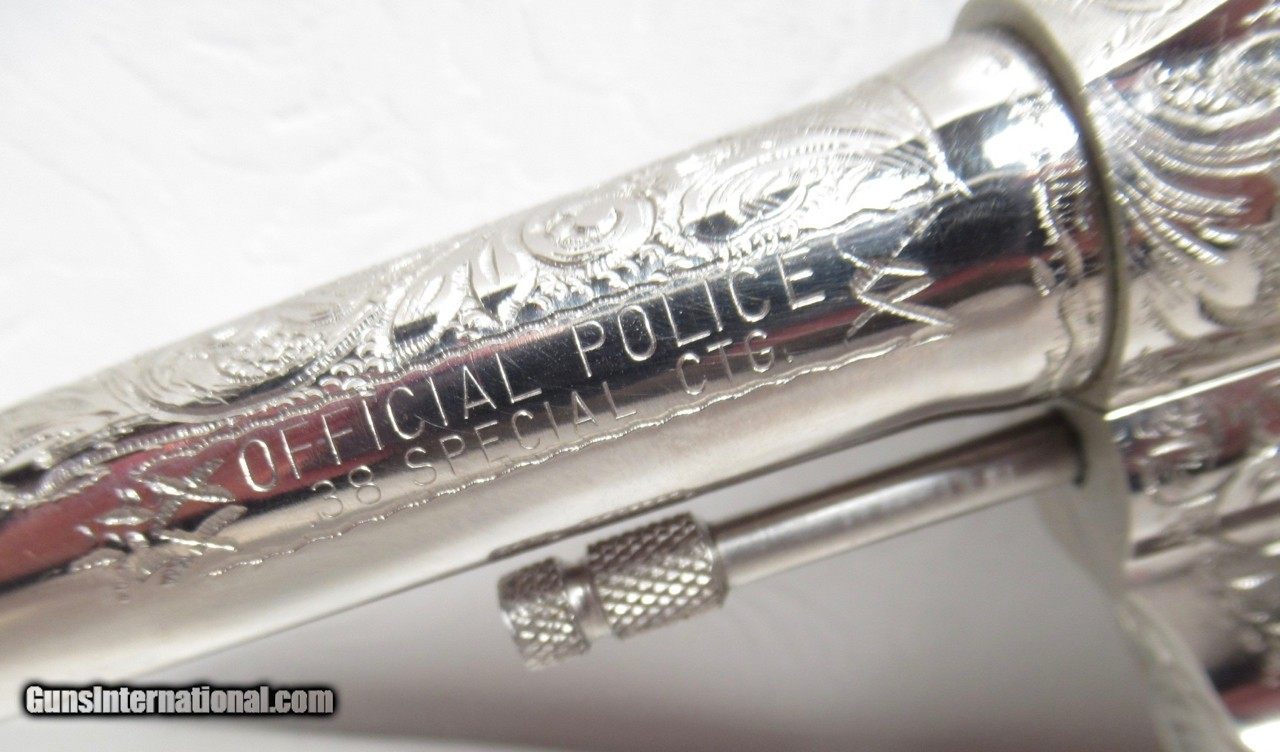 RARE FACTORY ENGRAVED COLT DOUBLE ACTION from COLLECTING TEXAS – COLT OFFICIAL POLICE TWO-TONE NICKEL REVOLVER – CIRCA 1952