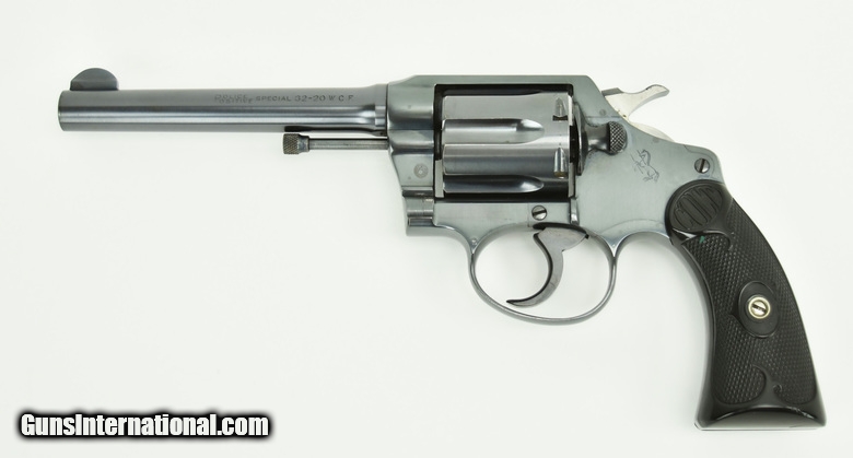 Description: Colt Police Positive .32-30 WCF caliber revolver. Manufactured approximately 1923. Barrel length 5”. Grips are excellent. Gun has 99% blue. Action works perfectly. Very fine revolver in .32-20.