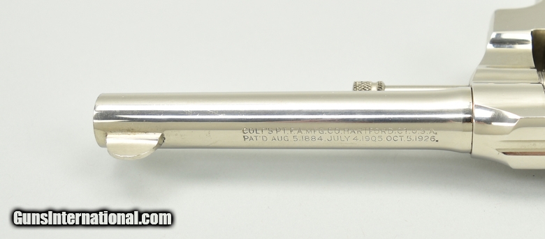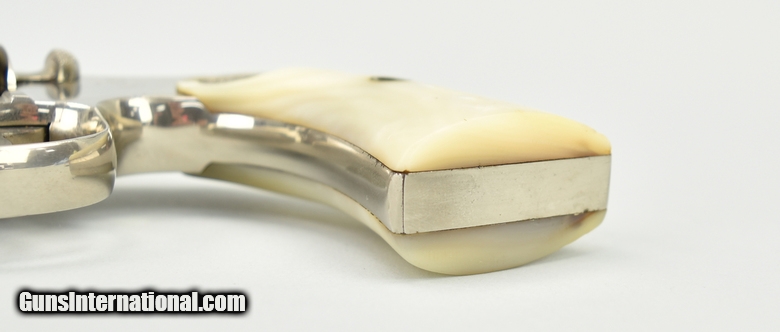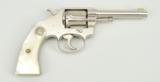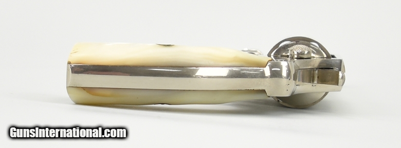Description: Colt Police Positive .32 Police caliber revolver. Pre-war double action revolver with 4” barrel, nickel finish and genuine pearl grips. The gun is in excellent condition with a few handling marks. The grips are beautiful with Colt medallions, and no chips or cracks. SOLD |