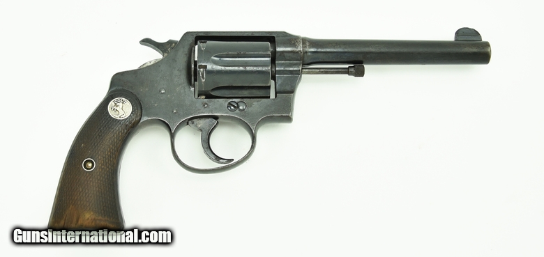 Colt Police Positive Special .38 Special caliber revolver with a 5” barrel. Made in 1925. Metal has 75% of the finish. Bore is excellent. Grips are checkered wood with smoothed out checkering.