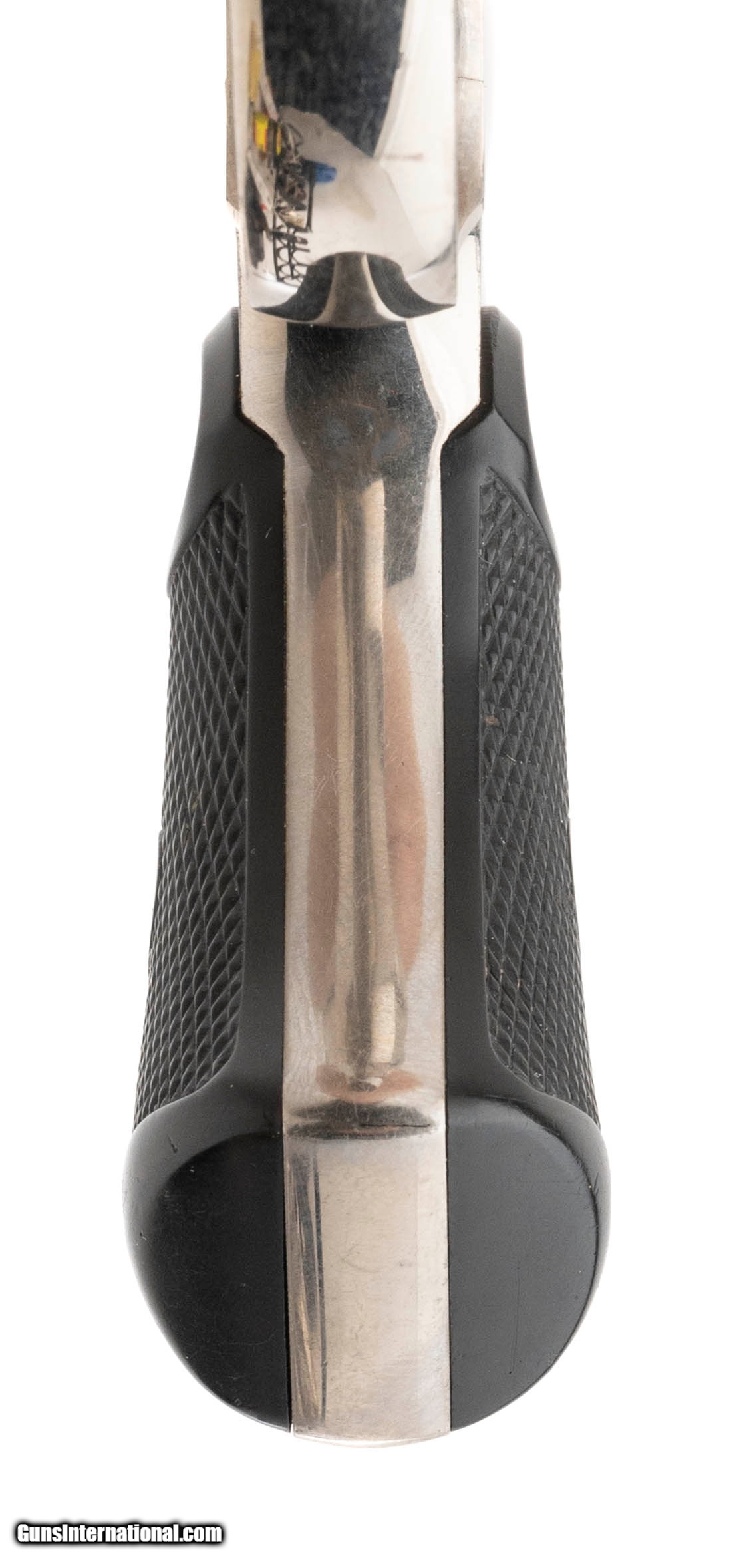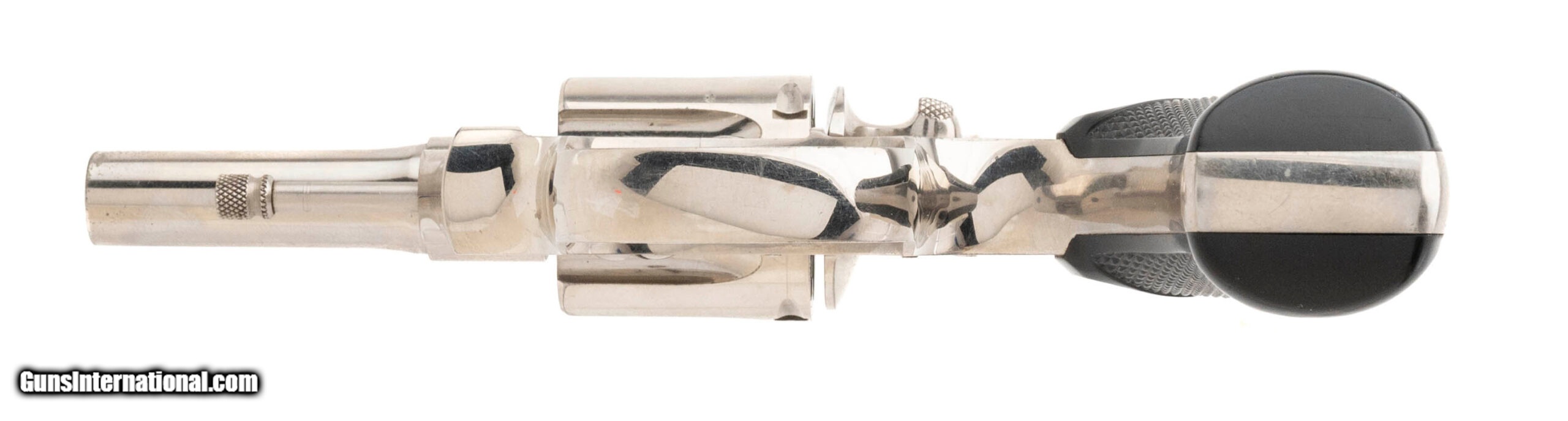 Description: "Serial No. 143795. Made in 1929, .32 caliber, 2 ½" round barrel. Bore is good with some scattered areas of pitting, rifling remains present and strong. 98% factory nickel remains with surface scratches visible. Grips are excellent with a light handling mark visible on the checkering of the left grip. Action indexes and functions correctly with a tight lock up. SOLD Curio/Relic: Yes |