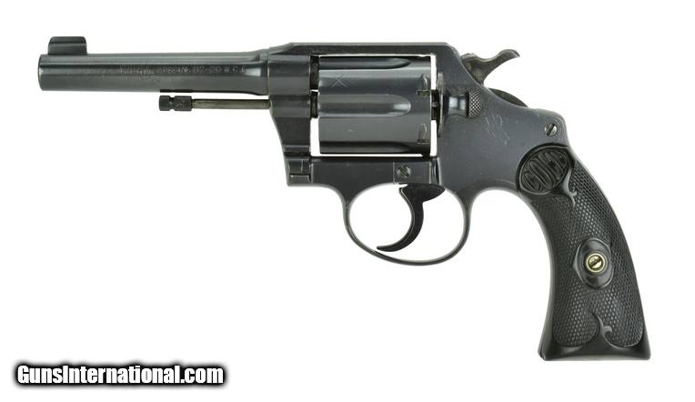 Description: " Colt Police Positive .32-20 WCF caliber revolver. 4 inch Blue service revolver in neat .32-20 caliber. Has been re-blued, looks good. SOLD |