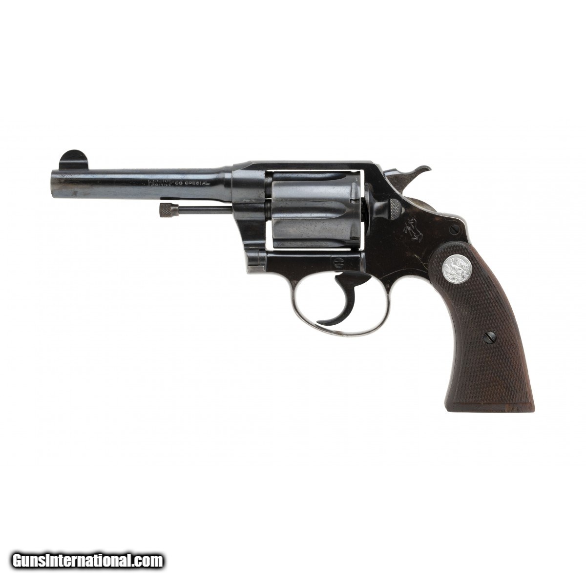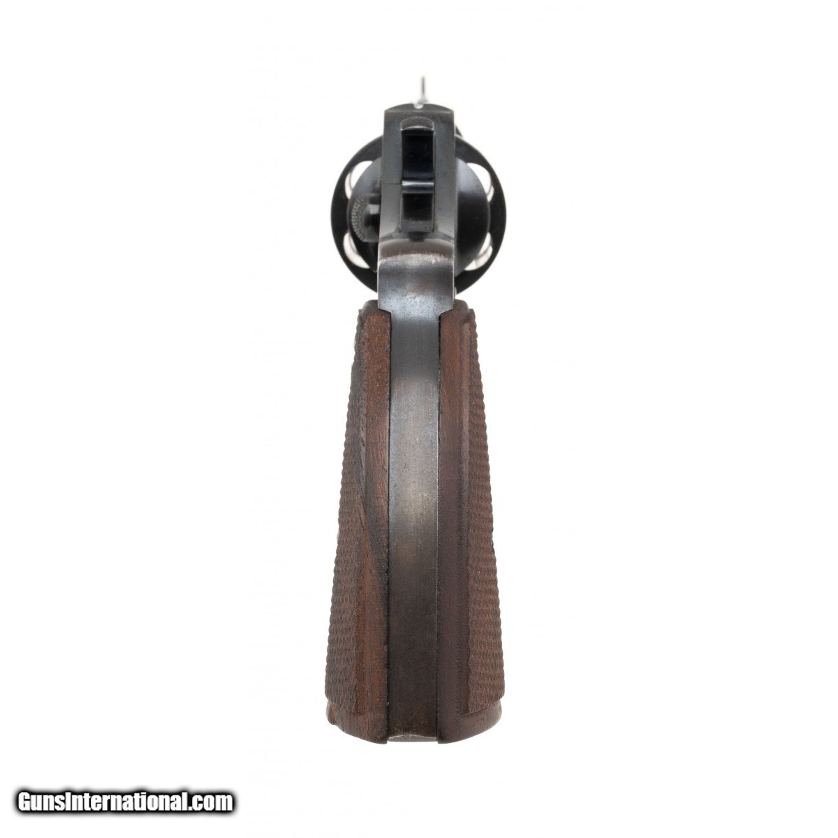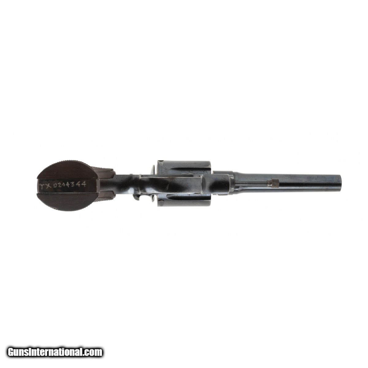 Pre-war revolver with 4"" barrel. Grips are a later replacement. Butt has a number. Bore has strong rifling with some pitting. Good overall condition.