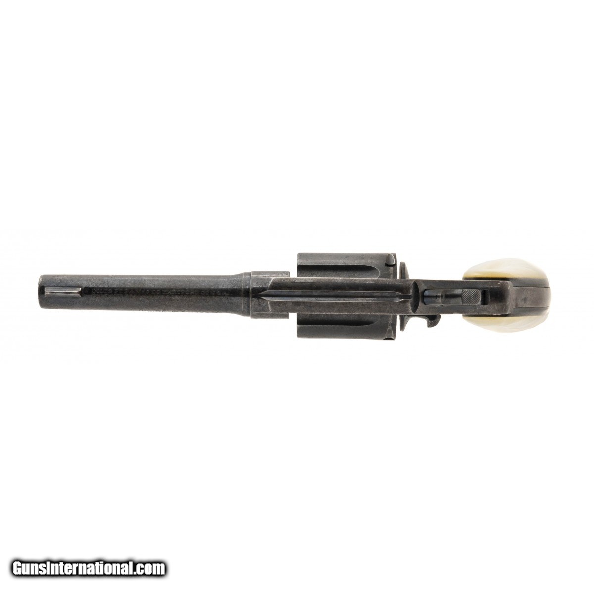 Description: " SN:47708. Manufactured in 1911. Barrel is 4"". Bore has strong rifling with pitting. Metal has carry wear. grips are faux mother of pearl. Fair overall condition. Action works properly. SOLD |