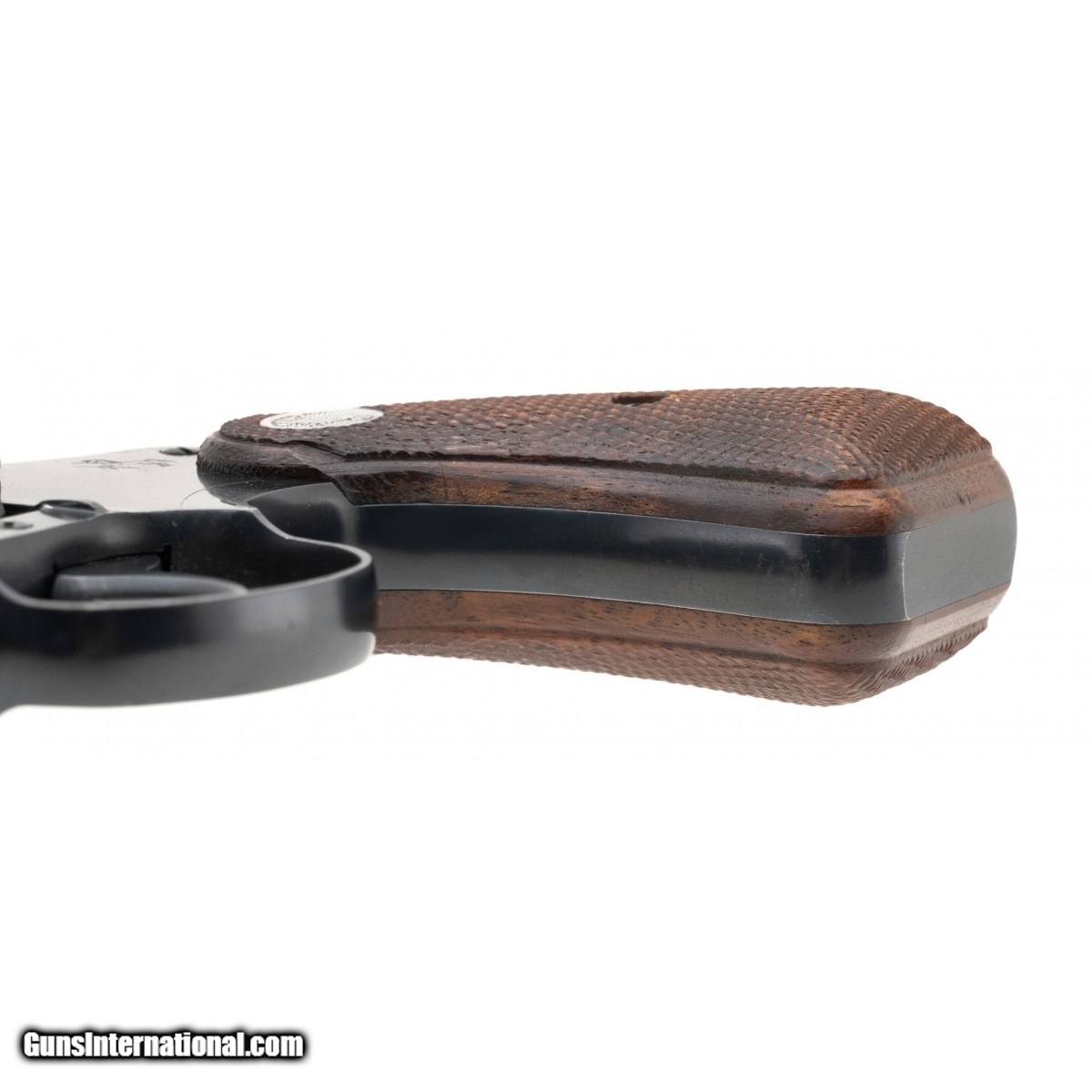 Description: " SN: 741600. Made in 1959, .32 S&W Long caliber with a 4"" barrel. Post-war service revolver with blued finish. Bore and action are excellent. Has a small scratch on the frame and light wear on the grip frame. Overall excellent condition. SOLD |