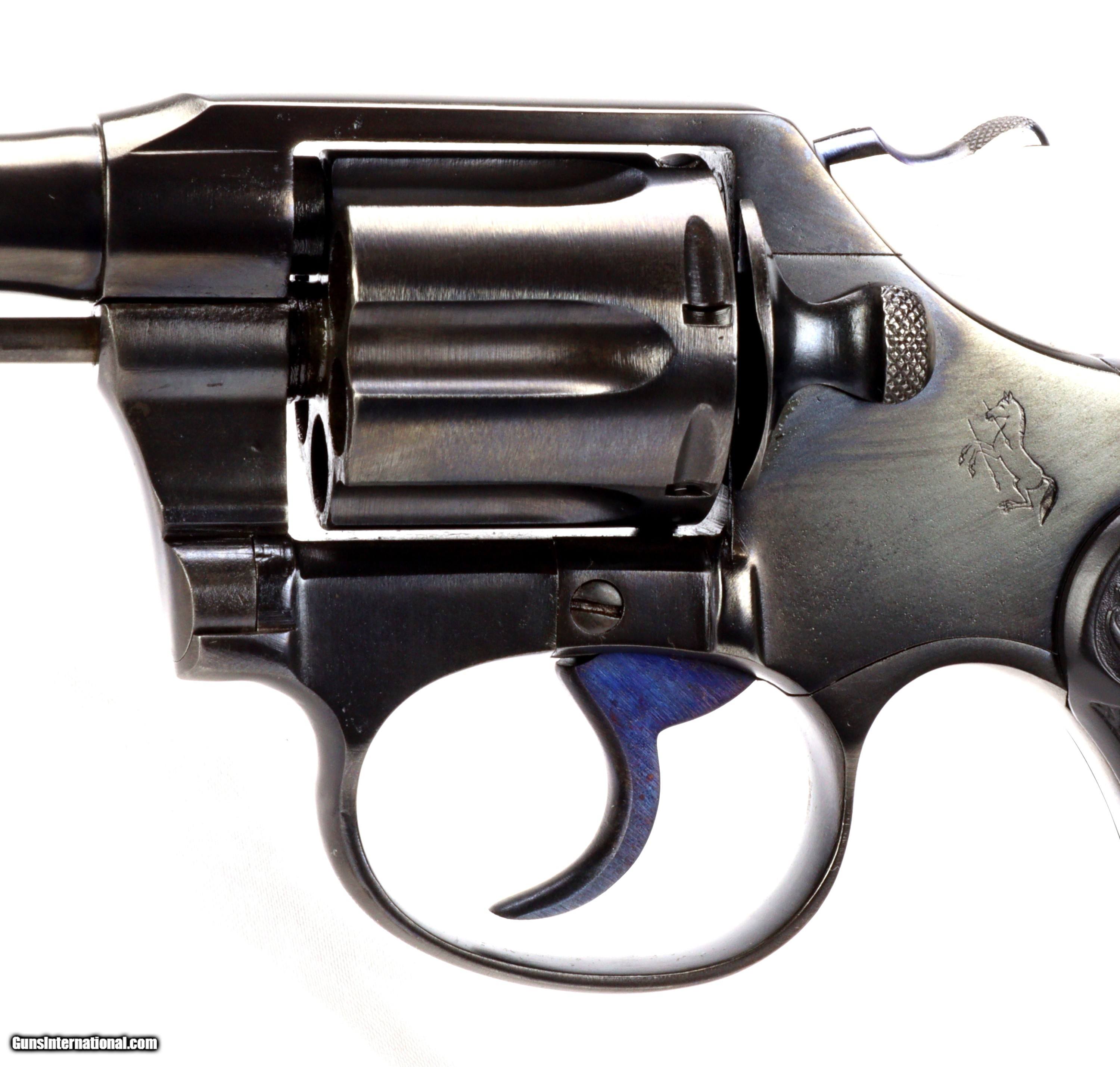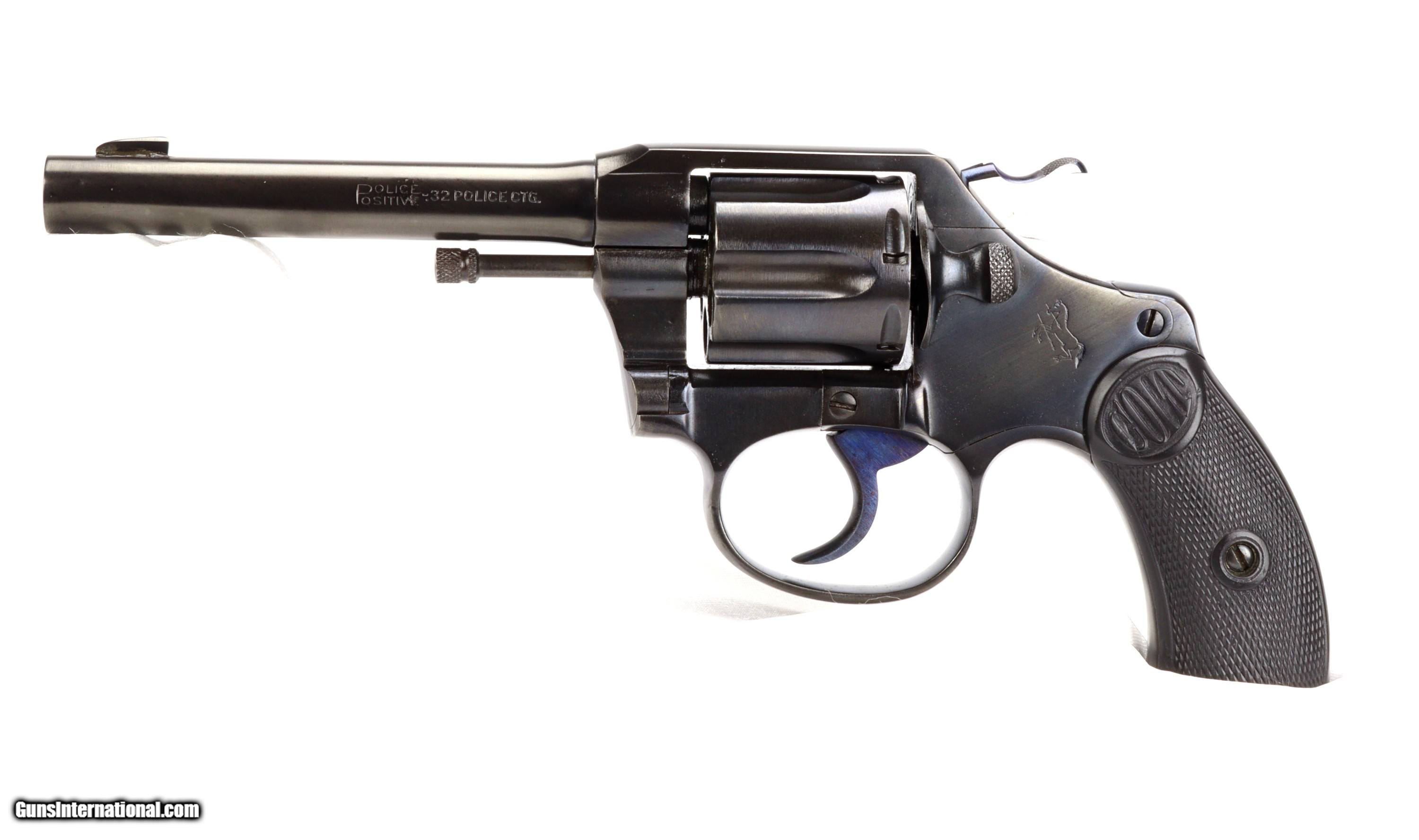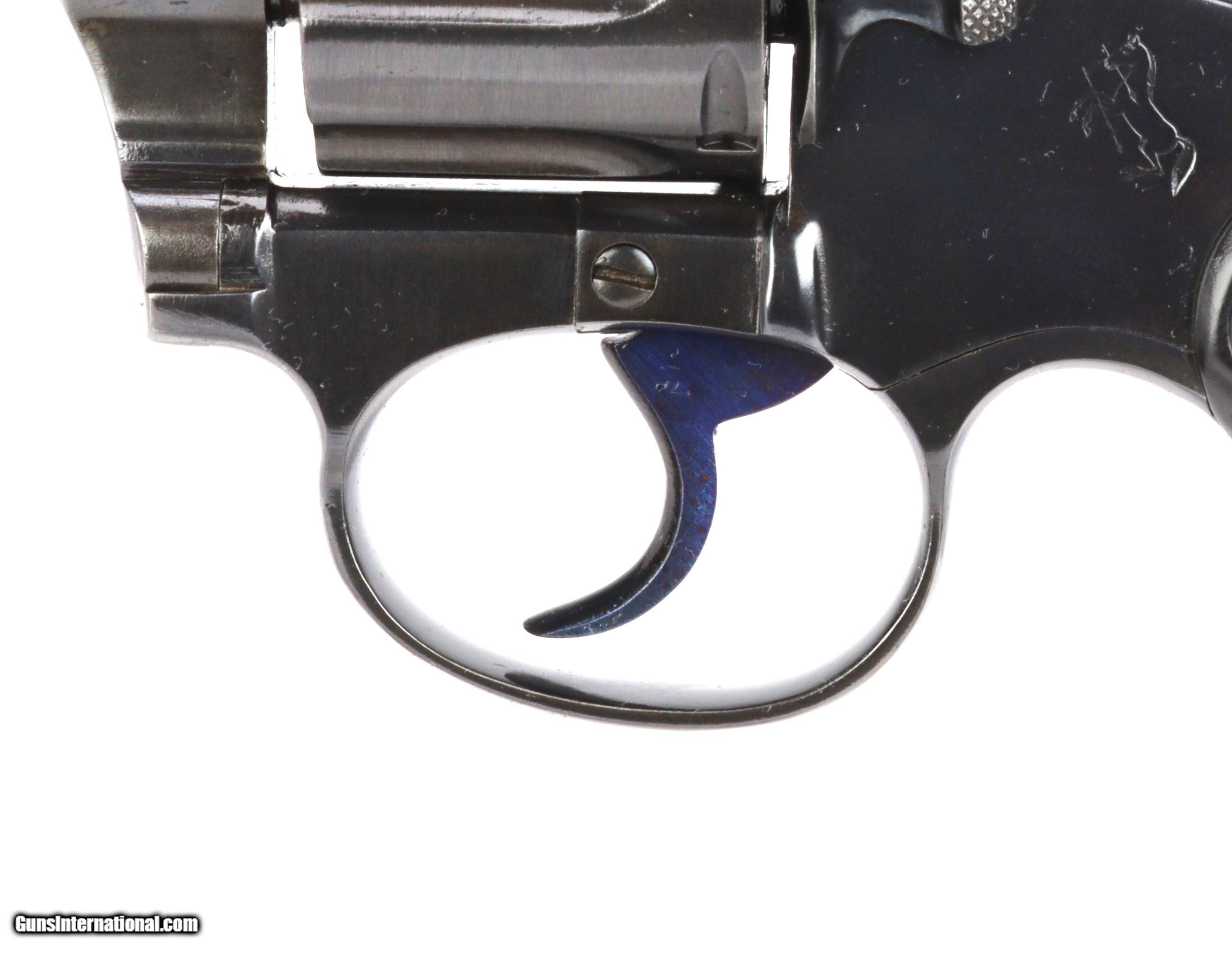 Description: Colt .32 Police Positive, born in 1910!!! S/N: 76177 BBL: 4" RESTORATION BY SHOOTER'S EXCHANGE! This test fired and mechanically sound classic wheel gun has been restored to factory blue with niter blued trigger and hammer(brushed finish sides) and has original black checkered grips with Colt oval logo at the top, all engravings are legible and clear. WT: 1.1lbs TRIGGER: 6.5lbs The bore is bright, sharp and clean and the lockup is solid. SHIPS INSURED TO THE LOWER 48 FOR $40.00 VISIT SHOOTERSEXCHANGEdotCOM FOR FIREARM RESTORATIONS SOLD |