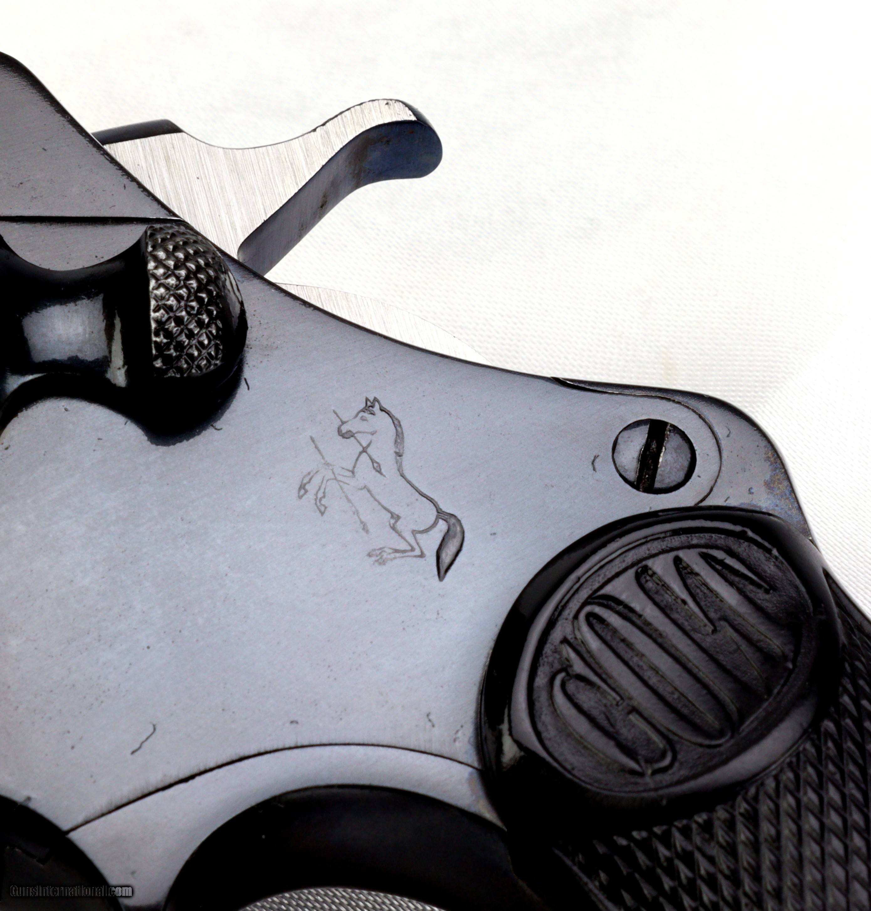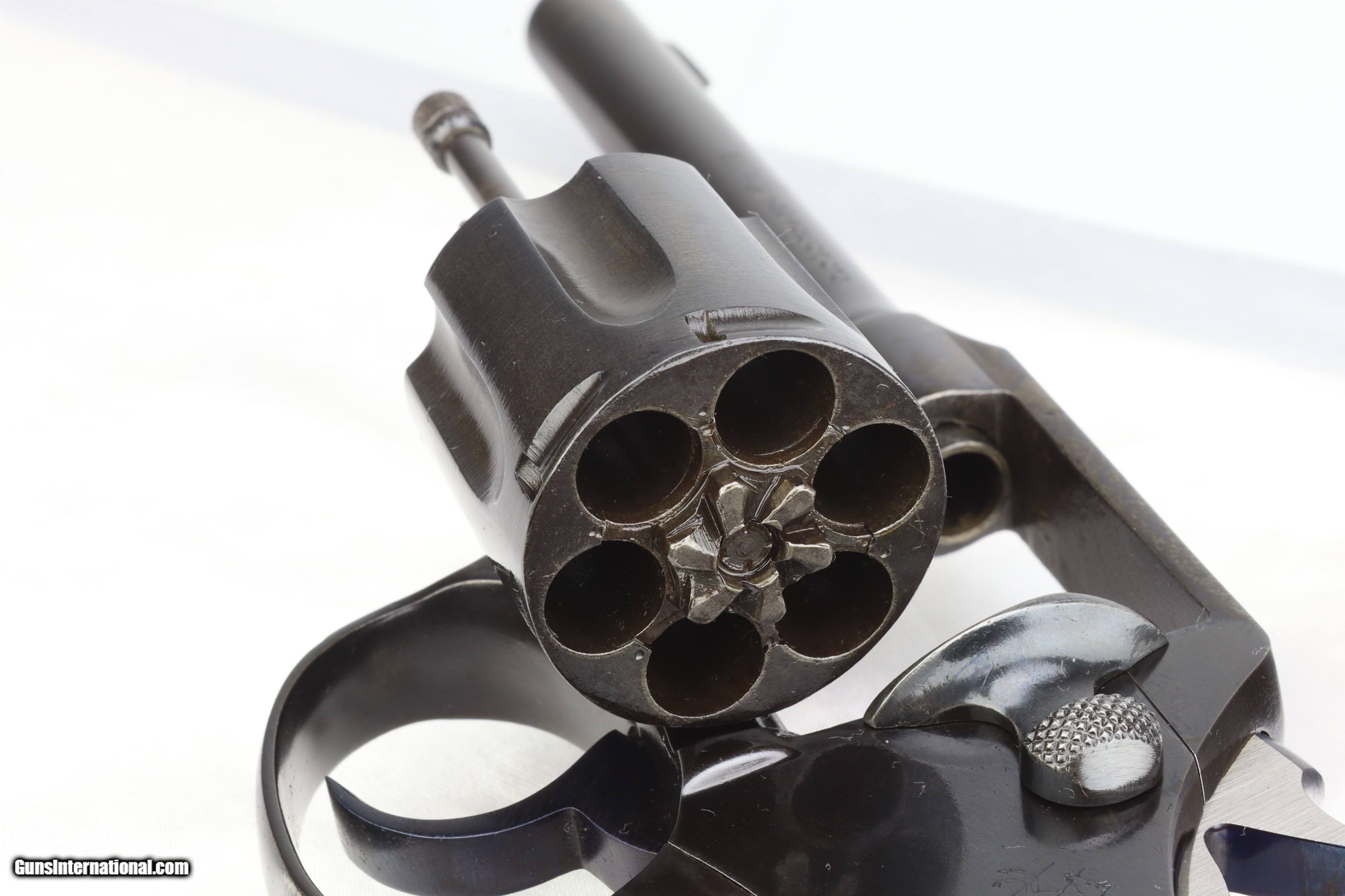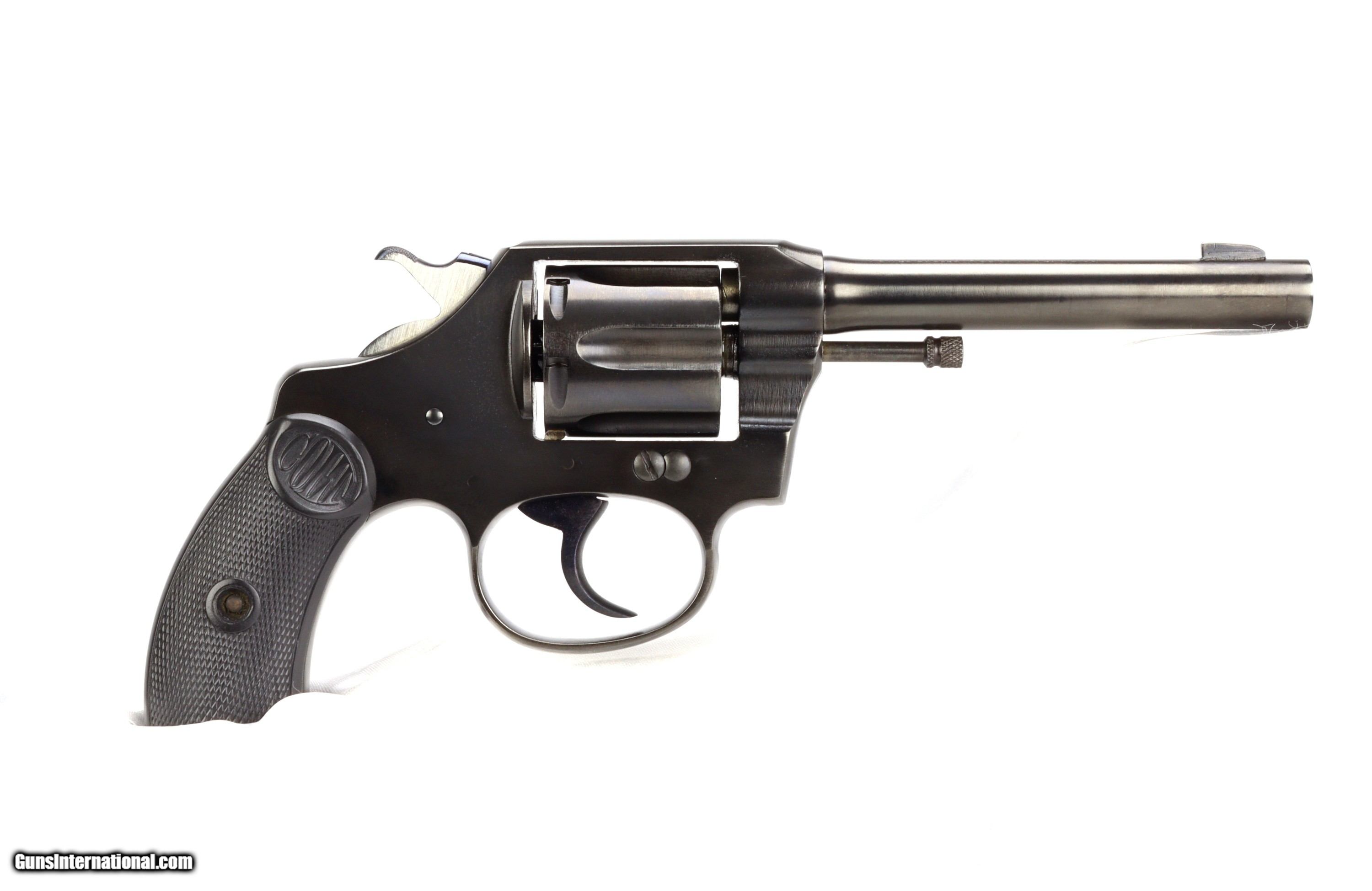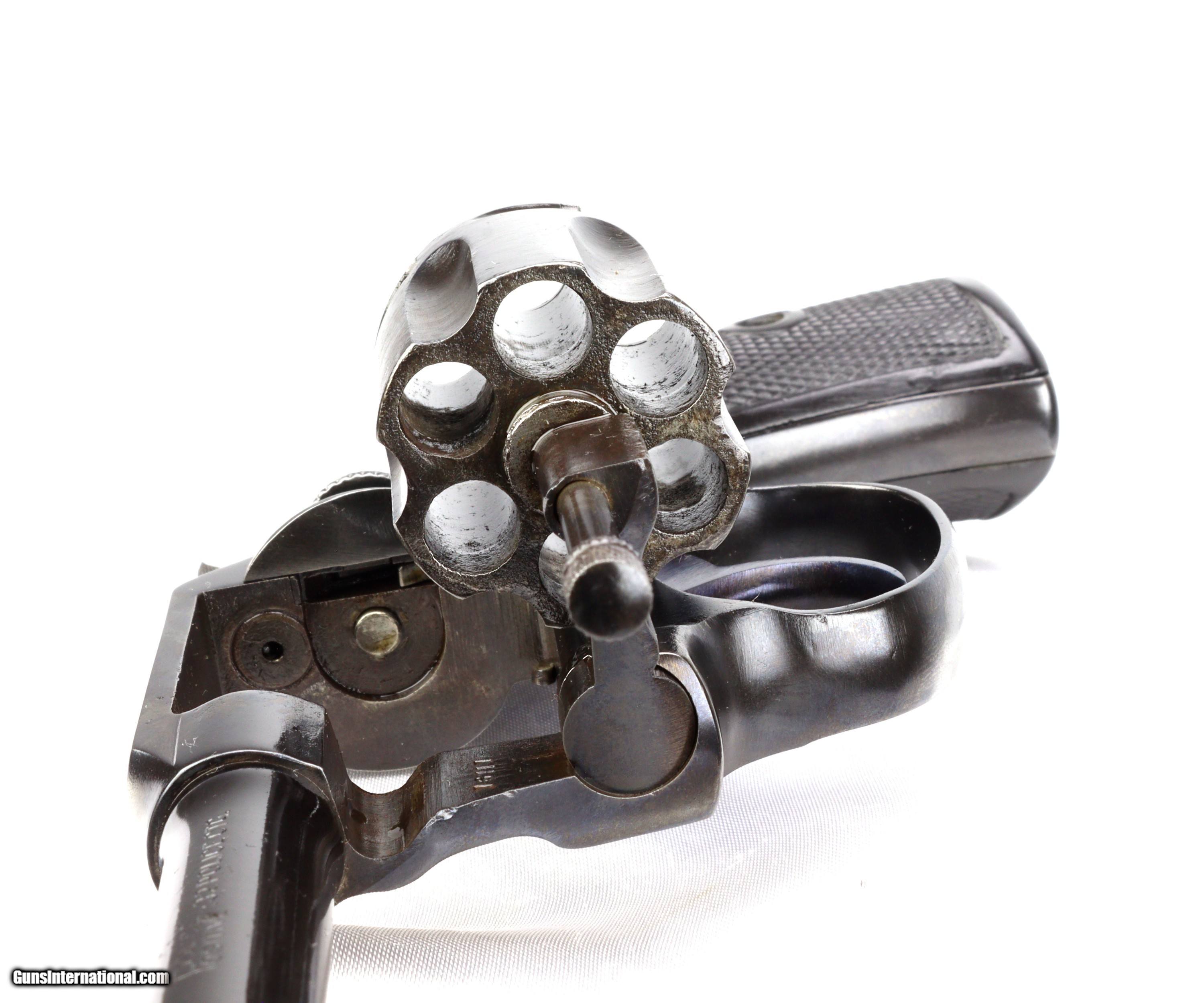 Description: Colt .32 Police Positive, born in 1910!!! S/N: 76177 BBL: 4" RESTORATION BY SHOOTER'S EXCHANGE! This test fired and mechanically sound classic wheel gun has been restored to factory blue with niter blued trigger and hammer(brushed finish sides) and has original black checkered grips with Colt oval logo at the top, all engravings are legible and clear. WT: 1.1lbs TRIGGER: 6.5lbs The bore is bright, sharp and clean and the lockup is solid. SHIPS INSURED TO THE LOWER 48 FOR $40.00 VISIT SHOOTERSEXCHANGEdotCOM FOR FIREARM RESTORATIONS SOLD |