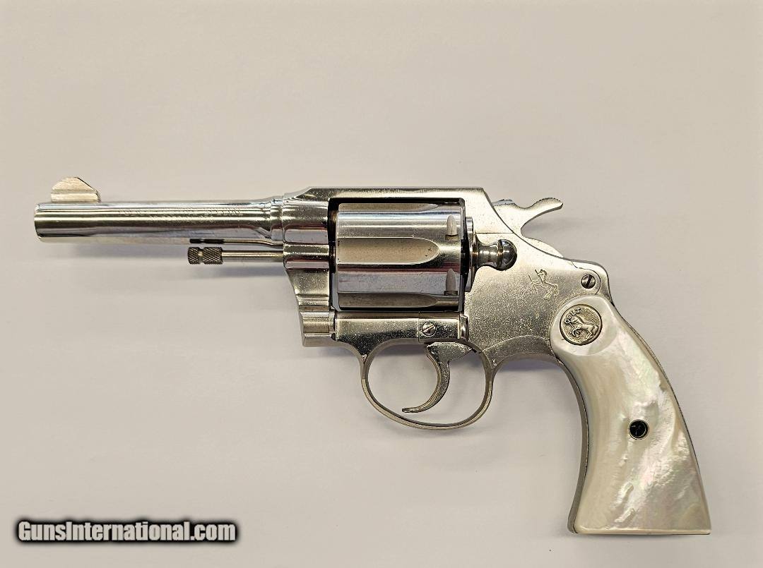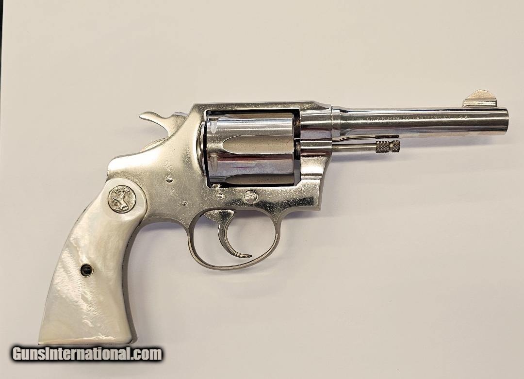 Description: Guns Listing ID: 1381703 COLT POLICE POSITIVE, 4\" 38 SPL, MFG DATE 1953 NICKEL WITH PEARL GRIPS. SOLD Curio/Relic: Yes Manufacturer: COLT Model: 1953 POLICE POSITIVE Caliber Info: .38 SPL Condition: Used - Non-Certified Barrels: 4 BARREL Finish: NICKEL |