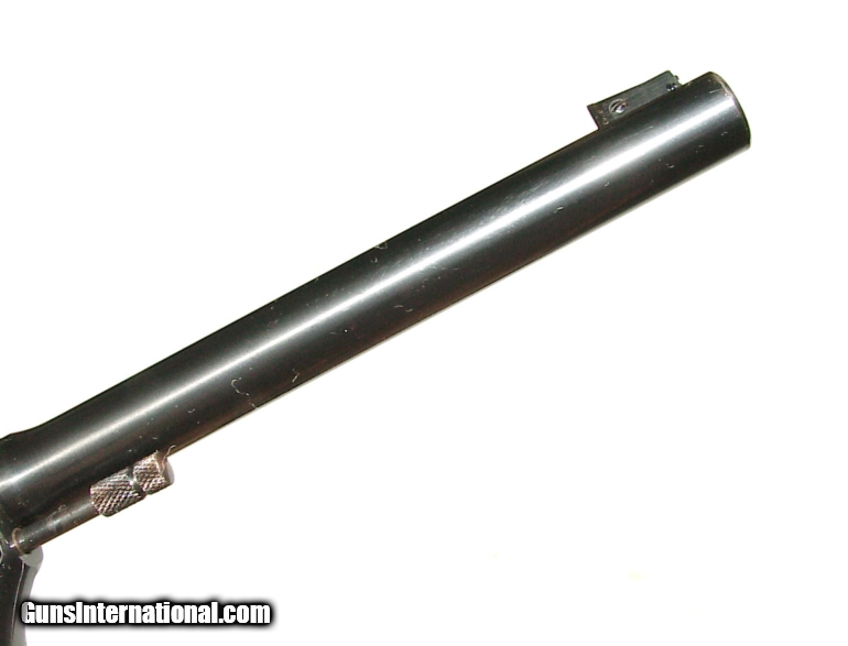 Description: .22 rimfire, 6" barrel, finished blue with checkered medallion walnut grips. In new 100% original condition. This is as good of an example as I have ever seen. SOLD Curio/Relic: Yes |