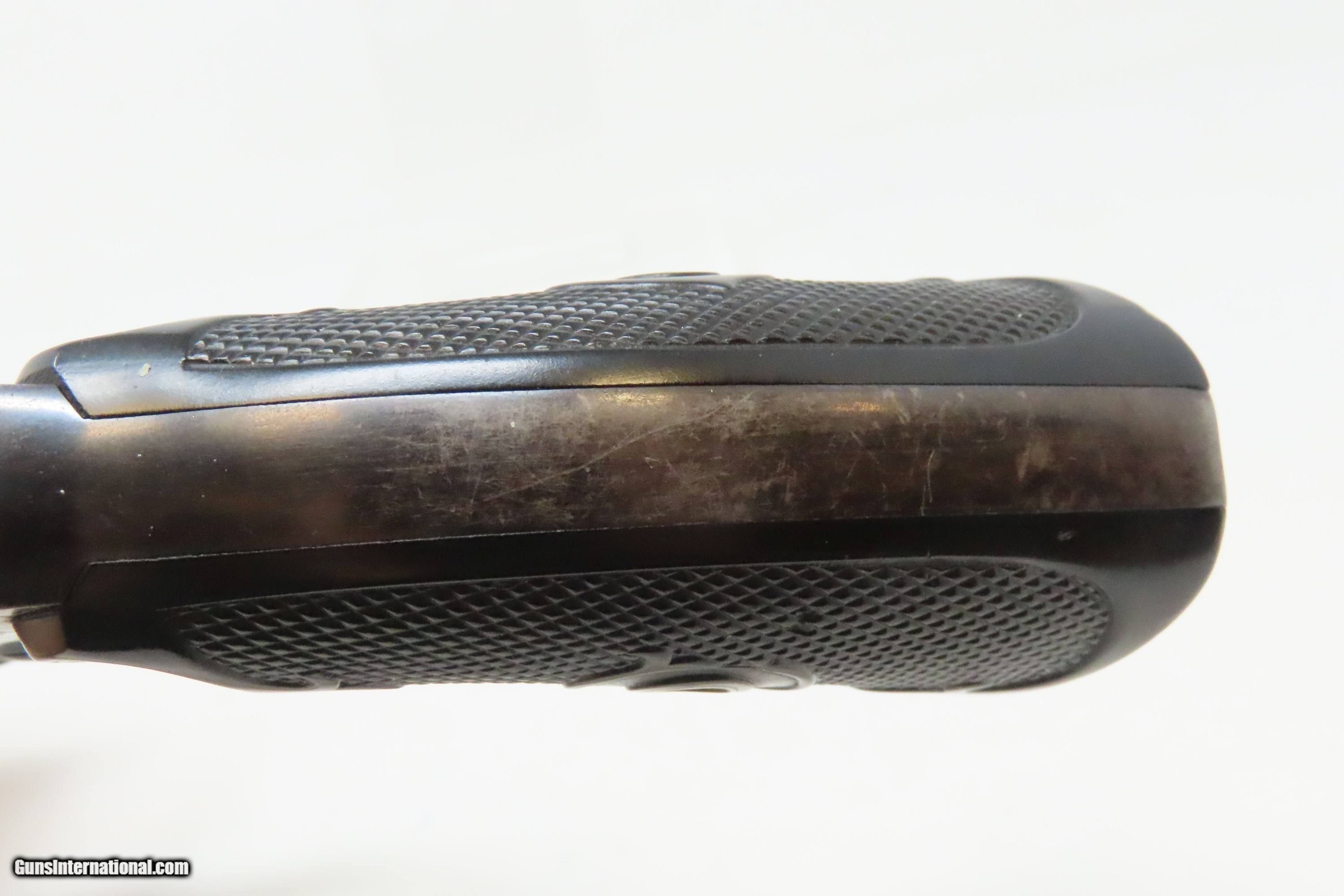 Description: COLT Double Action POLICE POSITIVE .32 “Police” SELF DEFENSE Revolver C&R Colt’s Widely Produced Police Revolver Design Here we present a C&R Colt Police Positive, made in 1919 by the Colt Manufacturing Company in Hartford, Connecticut, with a production run from 1907 through 1947. The Colt Police Positive is a small-frame, double-action revolver featuring a six-round cylinder, chambered for either .32 or .38 caliber. It was also later offered in .22 caliber cartridges. Designed primarily for sale to federal, state, or local law enforcement agencies, the Police Positive was introduced into the overall firearms market by Colt's Manufacturing Company in 1905. The Colt Police Positive was an improvement of Colt's earlier “New Police” revolver, upgraded with an internal hammer block safety. The Police Positive was very successful venture for Colt. Along with the Colt Official Police, it dominated the law enforcement firearms market in the early 1900s. The Police Positive was itself incrementally modified in 1908, forming the basis for Colt's Police Positive Special model. The Colt Police Positive Special was a slight improvement of Colt's earlier Police Positive model with the only differences being a slightly lengthened cylinder and elongated and strengthened frame to allow the chambering of the longer, more powerful .32-20 Winchester Center Fire and .38 Special cartridges. The overall condition is fine. Original finish has been preserved. Excellent action. Shiny bright bore. Fine grips. Sharply marked throughout. Visible numbers match. Own the original! This firearm is classified as a Curio & Relic. Barrel is 4 inches. Caliber: .32 Police Overall condition as seen in photos. Very Fast. Very Safe. FREE SHIPPING. Will need to be sent to your local FFL or C&R licensee. This firearm is classified as a Curio & Relic. Guaranteed AUTHENTIC & Includes CERTIFICATE OF AUTHENTICITY. ancestryguns $1100 #244242 SOLD Curio/Relic: Yes |