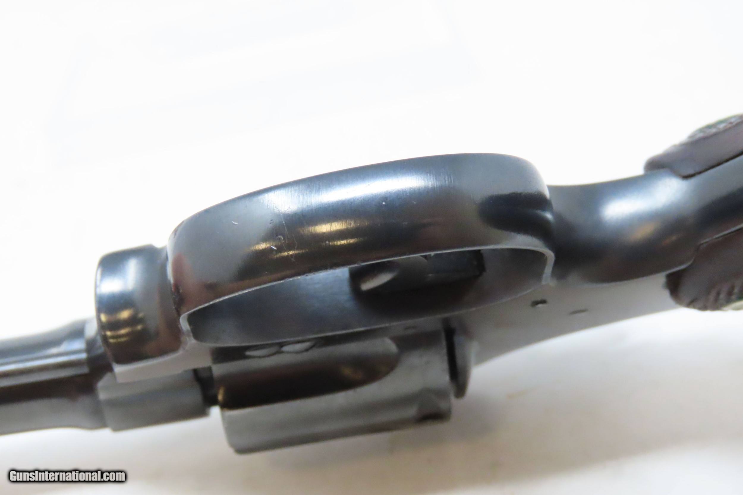 Description: COLT Double Action POLICE POSITIVE TARGET Model .22 Caliber LR Revolver C&R Second Issue TARGET REVOLVER w/6-Inch Barrel Here we present a C&R Colt Police Positive Target Model, made in 1927 by the Colt Manufacturing Company in Hartford, Connecticut, with a production run from 1926 through 1941. The Colt Police Positive (non-Target) is a small-frame, double-action revolver featuring a six-round cylinder, chambered for either .32 or .38 caliber. It was also later offered in this Target Model in .22 caliber cartridges. Designed primarily for sale to federal, state, or local law enforcement agencies, the Police Positive was introduced into the overall firearms market by Colt's Manufacturing Company in 1905. The Colt Police Positive was an improvement of Colt's earlier “New Police” revolver, upgraded with an internal hammer block safety. This Target Model revolver was lightweight and available with a blued or nickel finish and black hard rubber or hardwood grips in .22 Long Rifle, .22 WRF, .32 Long Colt, and .32 Colt New Police chamberings. The First issue of this model featured an adjustable open iron sighted 6 inch barrel and was marketed from 1910 to 1925, with checked Walnut grips replacing the rubber ones after 1923. A Second issue was sold from 1926 to 1941 and differed from the First Issue in that it had a slightly heftier frame which upped the weight to 26 ounces. The Police Positive was very successful venture for Colt. Along with the Colt Official Police, it dominated the law enforcement firearms market in the early 1900s. The Positive was itself incrementally modified in 1908, forming the basis for Colt's Police Positive Special model. The Colt Police Positive Special was a slight improvement of Colt's earlier Police Positive model with the only differences being a slightly lengthened cylinder and elongated and strengthened frame to allow the chambering of the longer, more powerful .32-20 Winchester and .38 Special cartridges. The overall condition is very good. Refinished. The action is excellent. The bore is bright with nice rifling. The grips show some wear and remain solid. Numbers match. This firearm is classified as a Curio & Relic. Barrel is 6 inches. Caliber: .22 LR Overall condition as seen in photos. Very Fast. Very Safe. FREE SHIPPING. Will need to be sent to your local FFL or C&R licensee. This firearm is classified as a Curio & Relic. Guaranteed AUTHENTIC & Includes CERTIFICATE OF AUTHENTICITY. ancestryguns $1200 #226799 SOLD Curio/Relic: Yes |
