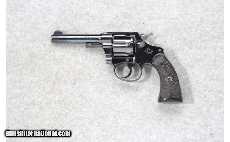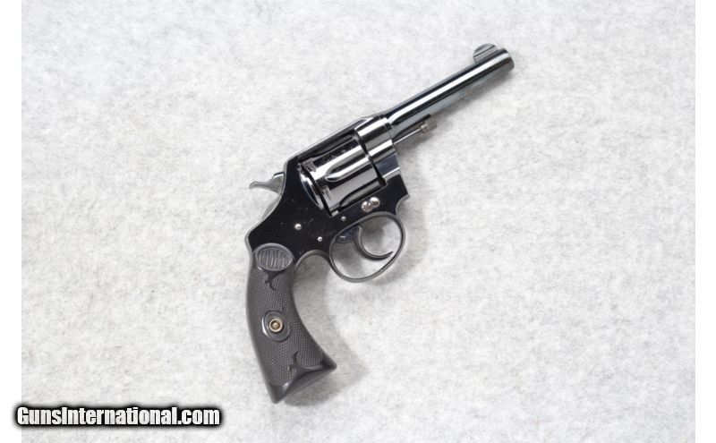 Description: SOLD Manufacturer: S/N 63555 Caliber Info: .38 Cal. Chambers: 6 shot. Metal Condition: Very good. A couple of minor handling marks. A little very minor freckling. Bore Condition: Excellent. Barrels: 4 inches. Triggers: SA/DA Stock: Checkered hard black plastic with COLT logo. Weight: 22 oz. Sights: Blade front. Integral notch rear. Item Location: Richfield, WI |