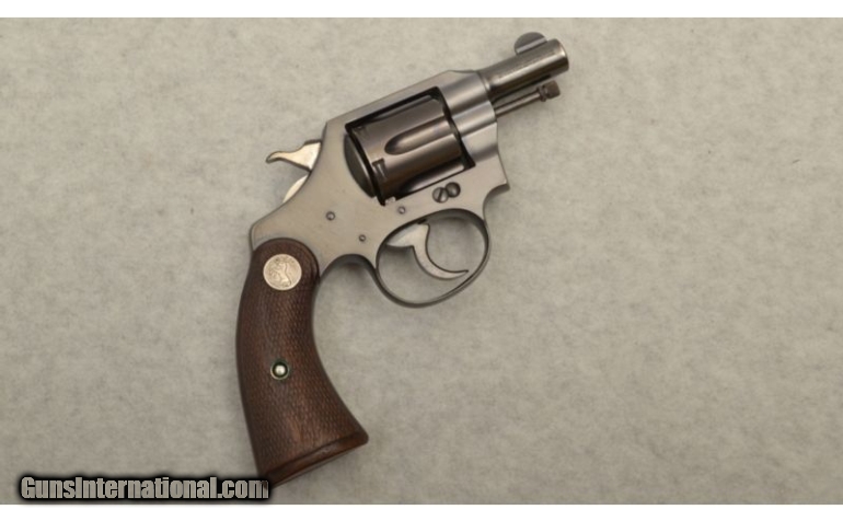 Description: SOLD Manufacturer: 1938 Caliber Info: .32 Colt Chambers: Chambers are clean Metal Condition: Factory finish is very strong with just a rub on both sides of muzzle from holster wear Wood Condition: Grip panels are solid, no cracks. Some diamonds on right grip panel are not clearly cut Bore Condition: Bore is excellent Barrels: 2" barrel Triggers: Narrow, smooth trigger Stock: Walnut checkered grip panels with silver tone Rampant Colt medallions Weight: 1 pound 2 ounces Sights: Grooved receiver rear; blade front Item Location: Green Bay, WI |
