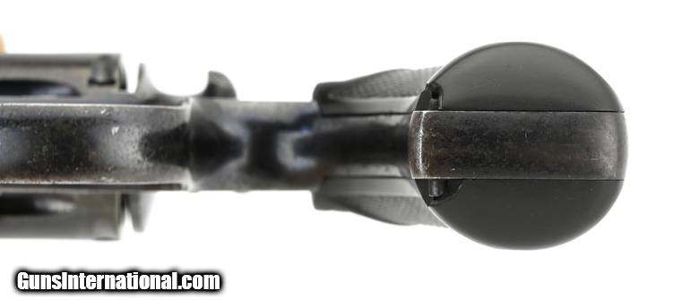 Description: Colt Pocket Positive .32 police caliber revolver. Pre-War revolver with 3 ½” barrel. Made in 1914. Has about 80% thinning blue mixed with patina. Bore and action are excellent. The grips each have a small chip at the toe.