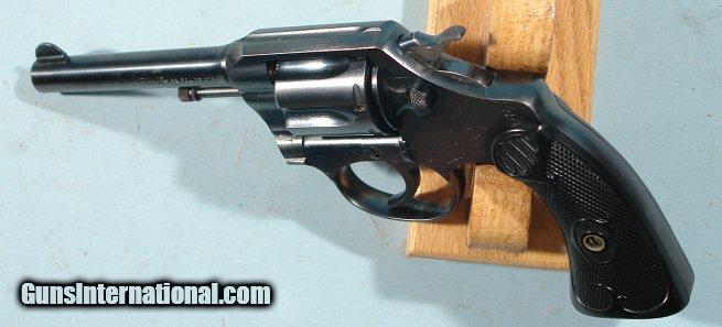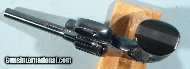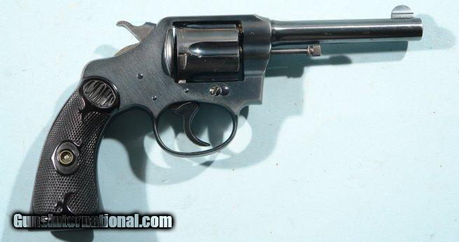 Description: COLT POLICE POSITIVE 1ST ISSUE .32 COLT NEW POLICE CALIBER REVOLVER. Serial number "167XXX". Circa 1920. 4 inch original barrel. 1st issue smaller frame(shorter cylinder) than 2nd Issue. 99% original brilliant blue finish with all the crisp frame and barrel markings. Original Colt hard rubber grips complete and perfect fit with crisp checkering. Perfect working order in single and double action. Good original frame screws. Cylinder is the only place showing signs of use. Very nice prime example that should fit well in anyone's collection. SOLD Curio/Relic: Yes |