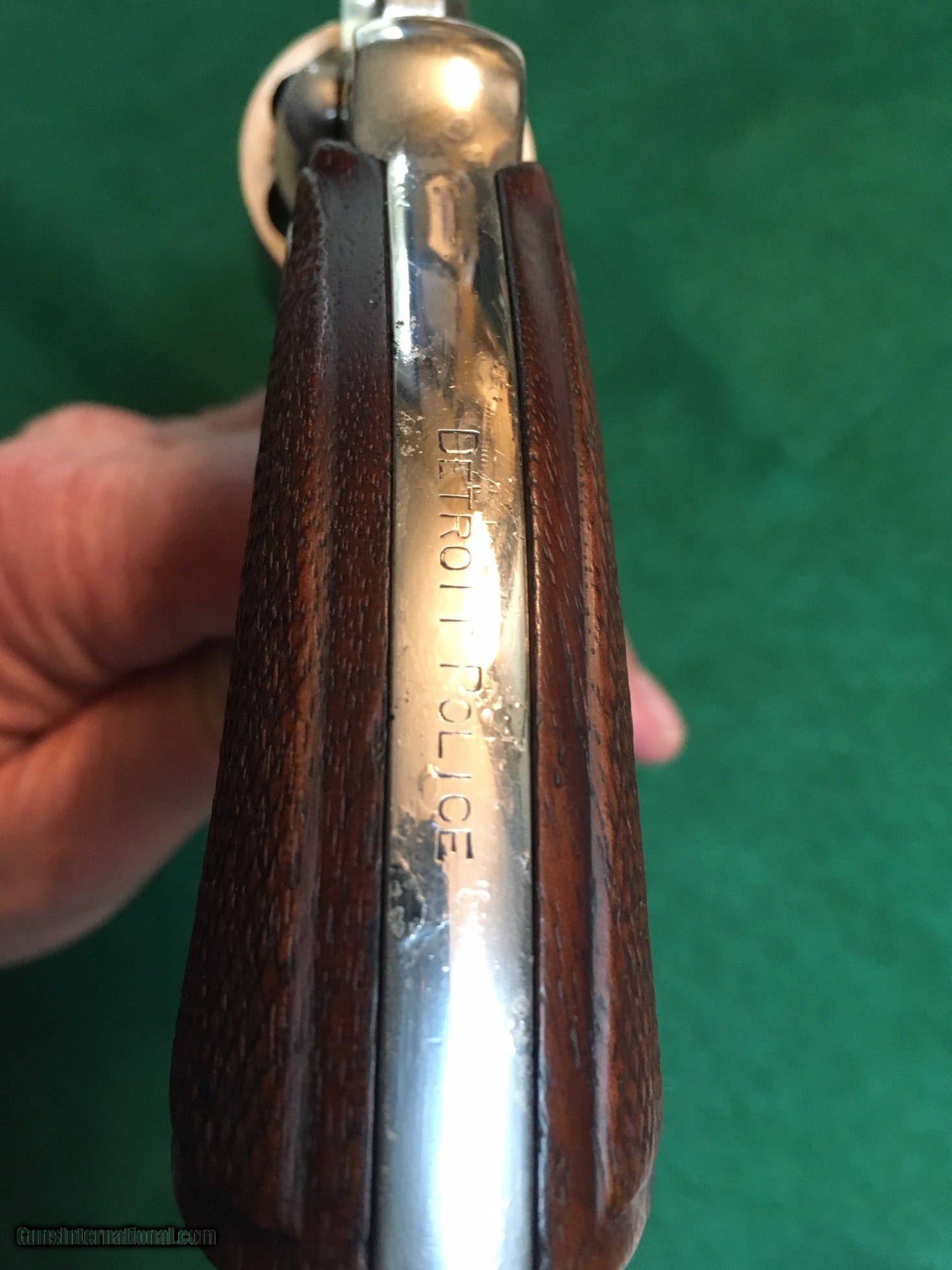 Description: This is a Colt very early 2'' revolver ,police positive shipped in 1927. Police Positive revolvers in 2 '' are scarce to find, only manufactured for a few years. Then the Detective special was born. So these 2' Police positives are hard to find. The Letter states it was shipped in blue, The ampersand in the crane indicates it was shipped back to colt and had some repair or refinishing done to it. I feel the nickel was done by colt as its so smoothe and still retains all the finish to this day. Detroit Police dept almost always had their colts in nickel ,I have had many Nic.colts marked Detroit Police . Its in great condition ,mint bore,mint cylinder and appears not to have been shot much.Mechanically perfect. Grips are nice with the usual wear for a cop's gun. Numbered on the butt and backstrap as it should be.It has the large grip unlike the early small one.Top strap is the for runner of the Detective special, trigger is Police Positive Smooth. Barrel marking is correct and rare and no patent dates on the right is correct. Comes with Badge, holster, photo of detroit police motorcycle group of the proper vintage and Factory letter. have a beautiful set of M.O.P's for a aditional 250,00 that fit perfect. Call with any questions anytime, Tom 612 859 5673 SOLD SOLD Curio/Relic: Yes |