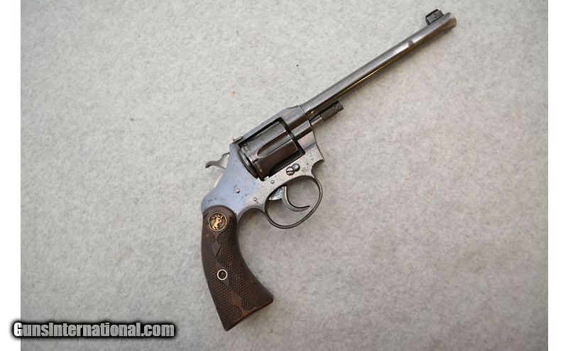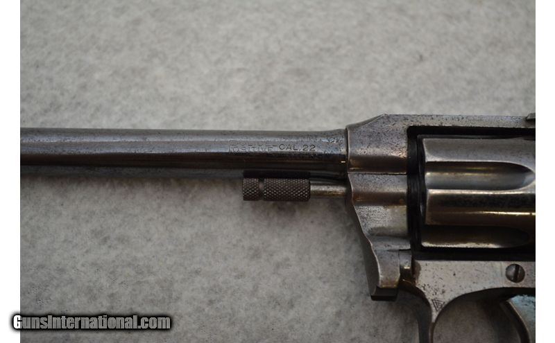 Description: Good shape with some cosmetic issues. The metal finish has freckling basically all over it and the bluing has thinned near the muzzle. The finish on the edges of the trigger guard also have thinned out. Grips show ages with light wear from use and a few handling marks. Lockup from double action is a little loose but as soon as the hammer starts to drop it locks up rock solid. A tiny bit of play in the cylinder with the hammer back but this also locks up solid when the hammer drops. Sources indicate 1911 as the year of manufacture. .22 CAL SOLD Curio/Relic: Yes Barrels: 6in Weight: 1lb 8oz Item Location: Green Bay |