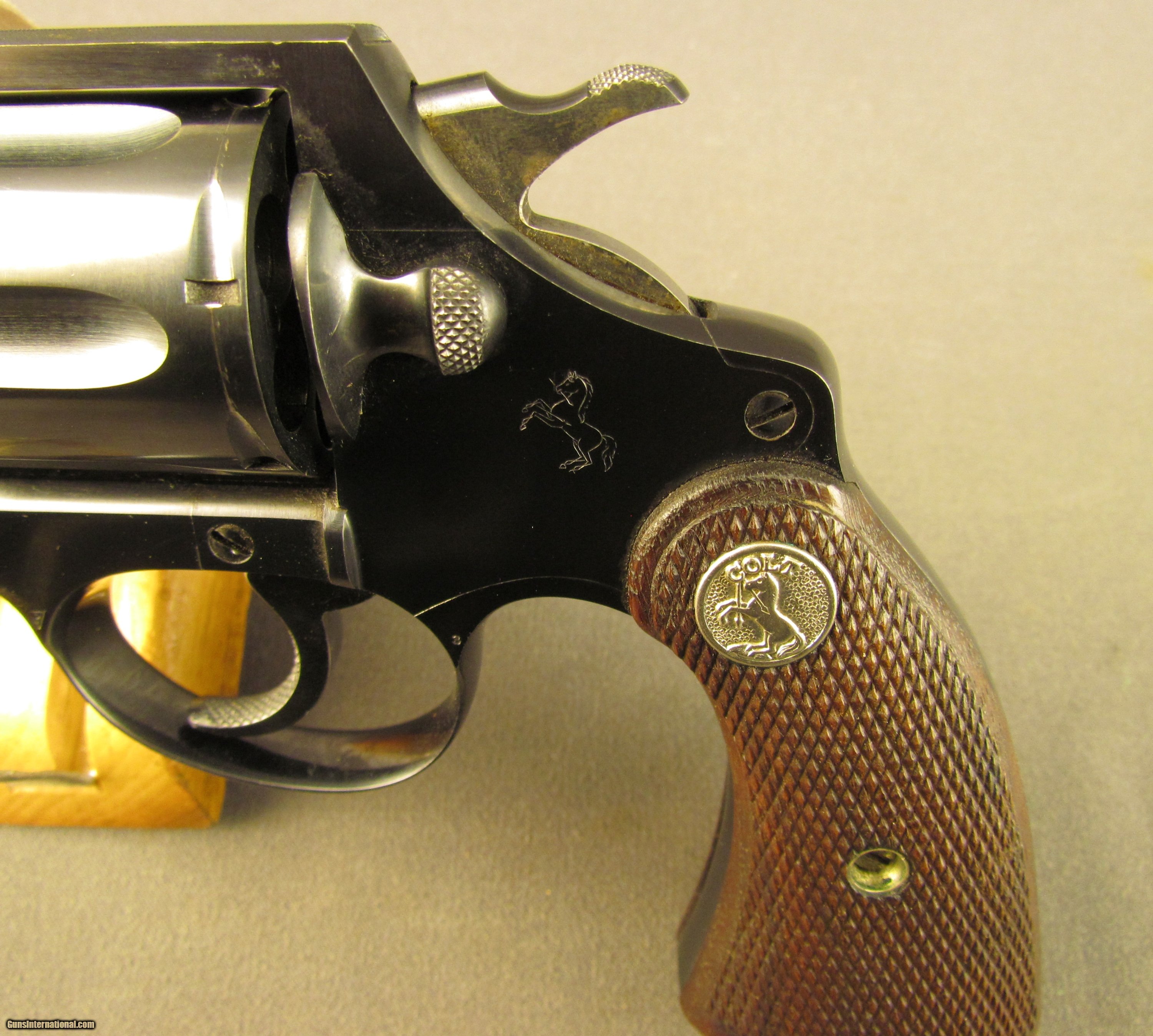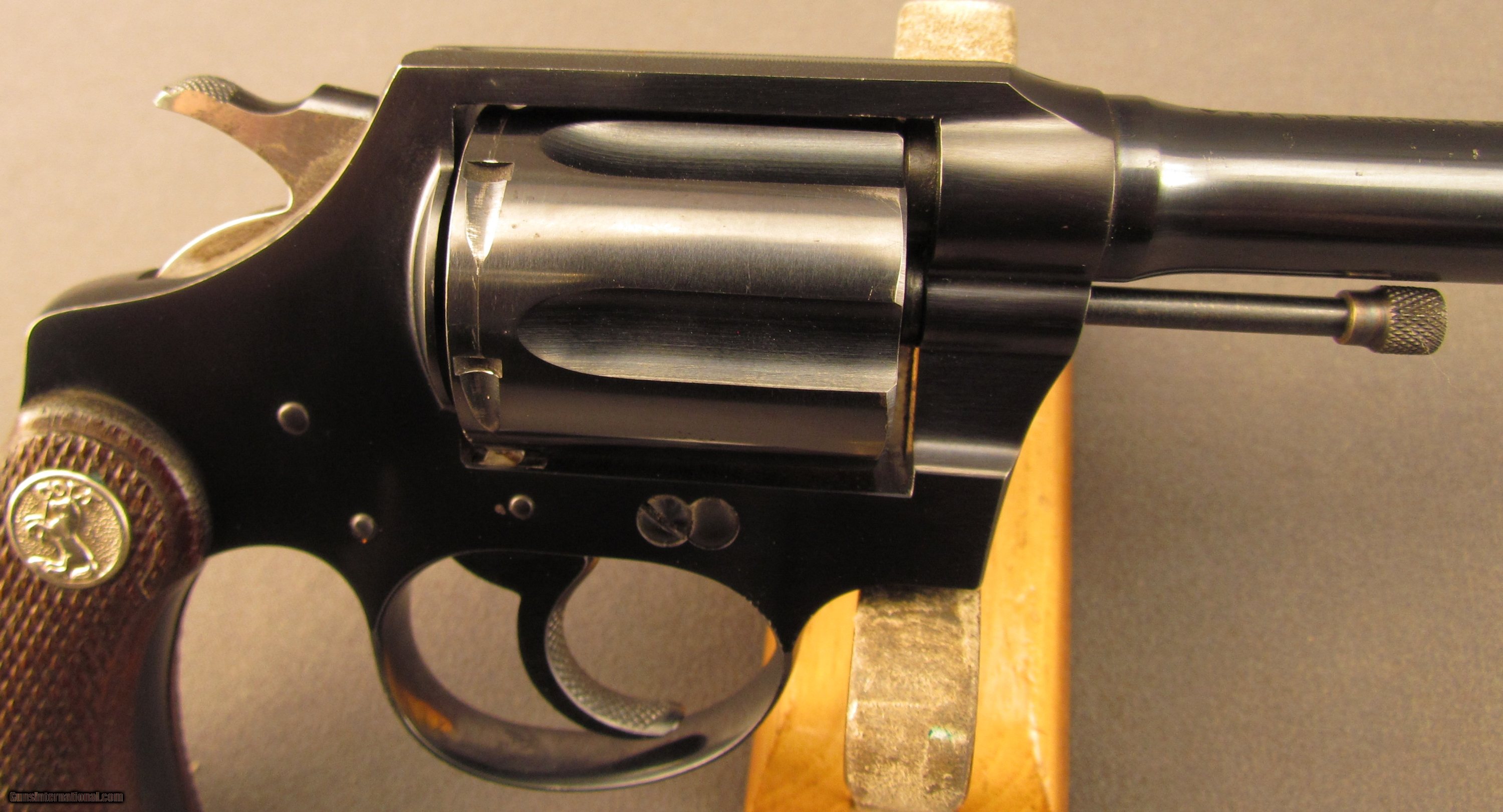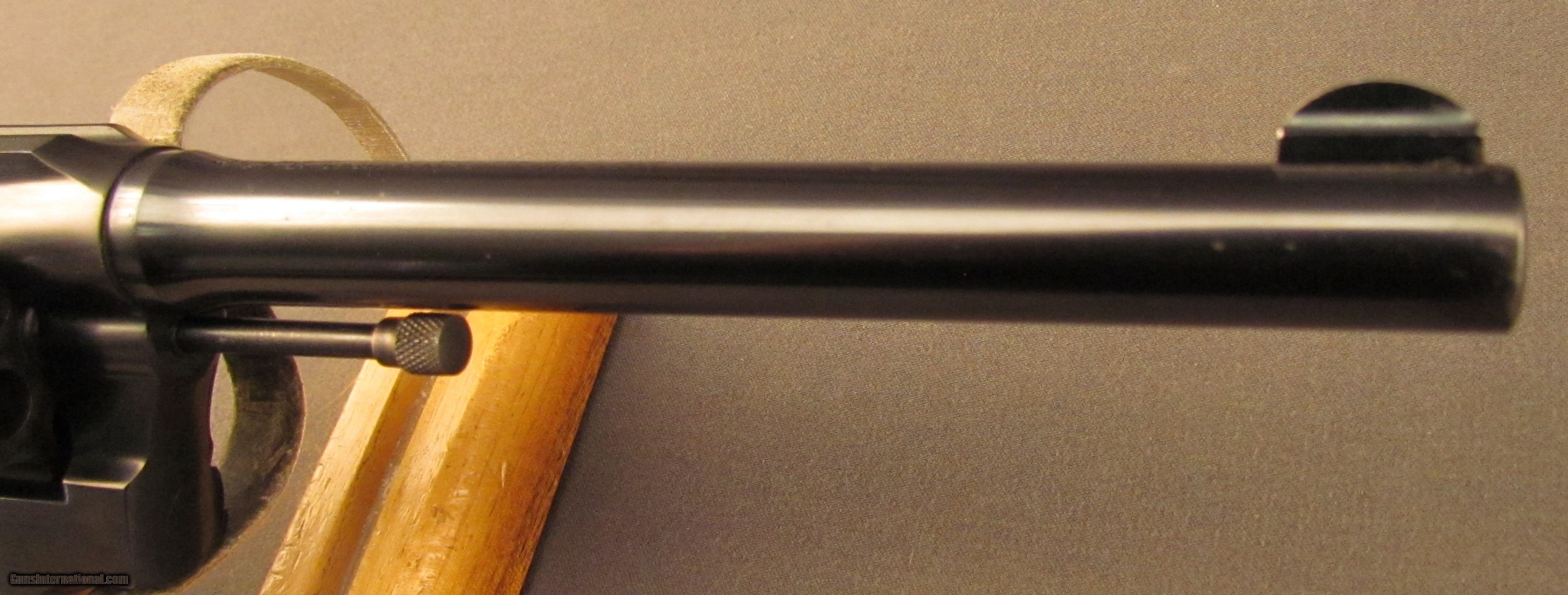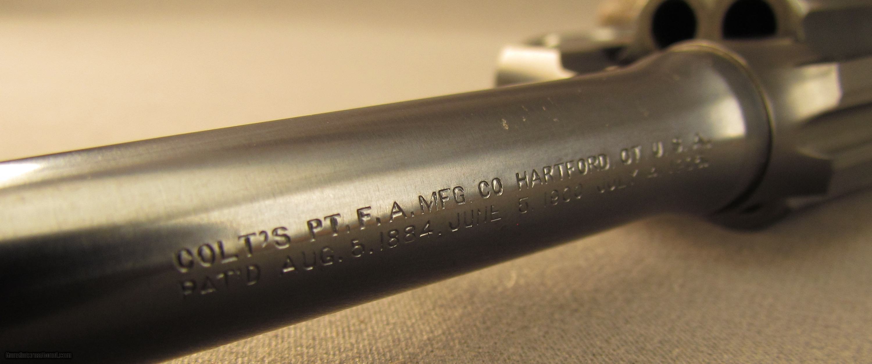 Description: Serial # 401007, .32-20, 6” barrel with an excellent, bright bore. This is a handsome 2nd Issue revolver, made in 1931, with an earlier, 1st Issue barrel (1905 patent date) that retains about 98% original brilliant Colt blue throughout. The barrel was used until 1926, but may have been pulled from the bin at the factory as a left over when this gun was built. There is some mild silvering along the high edges, a few minor impact marks on the top of the barrel, and a light turn-ring on the cylinder. Some further minor freckling is present within the cylinder flutes, and along the gripstraps. The checkered walnut Colt medallion grips are in excellent shape with only a a few negligible marks along the butt, and very little flattening of the points. The action is tight and functions flawlessly. This is a truly nice revolver, chambered in a great and useful caliber. FFL or C&R SOLD Curio/Relic: Yes Manufacturer: Colt Model: Police Positive Caliber Info: .32-20 Gauge Info: .32-20 |