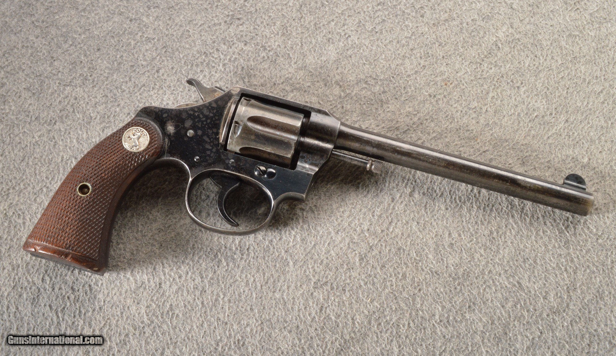 Description: This Colt Police Positive is a 6-shot revolver chambered in 32 Cal with a 6" barrel and blued surfaces. This revolver has the Colt hard wood grips with colt medallions at their tops. None Curio/Relic: Yes Chambers: 6 shot revolver. Metal Condition: The surfaces show various stages of finish wear with light scattered corrosion freckles. Wood Condition: The wood Colt grips shows dings around there bottom edges. Bore Condition: Bright bore with strong rifling. Barrels: 6" barrel. Triggers: SA/DA. Sights: Fixed. Item Location: Owatonna, MN Price: $399.99 Contact Seller |