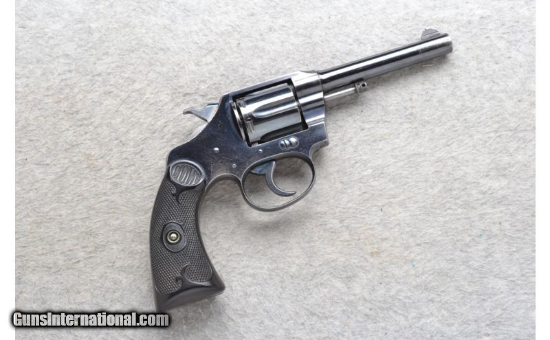 Description: SOLD Manufacturer: S/N 72370 Caliber Info: .32 Colt Chambers: 6 shot blued fluted cylinder. Metal Condition: Fair. Has freckling. Handling marks and light wear. Wood Condition: Grips are good with light wear. Bore Condition: Excellent. Barrels: 4 inch blued. Triggers: Single Action / Double Action. Stock: Checkered hard dark brown plasic with COLT. Weight: 18 oz. Sights: Blade front. Integral notch rear. Item Location: Richfield, WI |